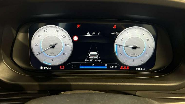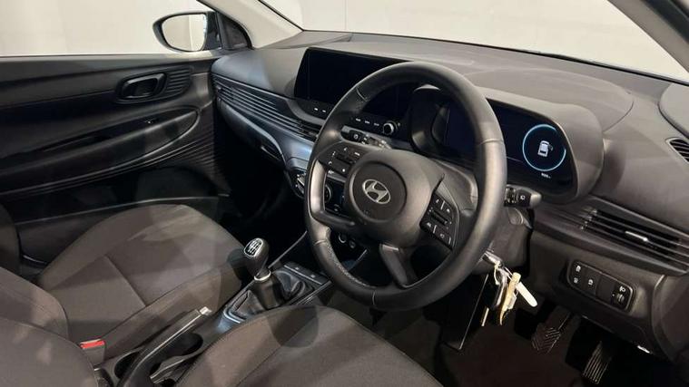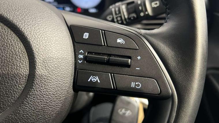 10.25" digital supervision cluster, 2nd Gen eCall, 8" Touchscreen with DAB, Apple car play/Android Auto, Cruise control + speed limiter, Forward collision assist with car, pedestrian and cycle detection, Intelligent speed limit warning, Lane follow assist, Lane keep assist, PAS, Rear parking sensor, Rear view camera with dynamic guidelines, USB C port front, 3rd brake light, Dusk sensor, Electric adjustable heated door mirrors, Front grille mesh pattern design, High beam assist, LED daytime running lights, LED Headlights, LED taillights, Rain sensor, Rear side wing doors, Rear wiper, Repositioned flat metal hyundai emblem, 3 seat bench in 2nd row, Adjustable head restraints, Air conditioning, Cloth upholstery, Floor mats, Leather steering wheel, Single front passenger seat, 3x3 point rear seatbelts, ABS with front and rear diagonally split, Autonomous emergency braking, Child locks on rear doors, Front ventilated disc brakes, Rear solid disc brakes, Tyre pressure monitoring system, 16" alloy wheels, Tyre repair kit,