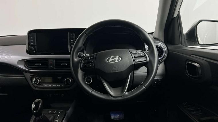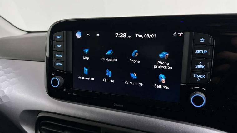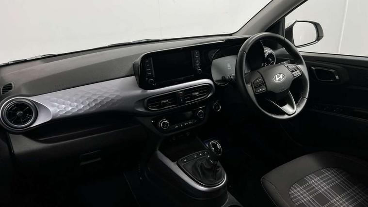 Apple car play/Android Auto, Bluelink mobile remote connectivity, Bluetooth connectivity with voice recognition, Cruise control, Driver attention alert system, eCall emergency call system, Forward Collision-Avoidance Assist (FCA) - Pedestrian/Cyclist, Front USB-C charging and USB-A data, Full-width 4.2" LCD instrument cluster, Intelligent speed limit assist, Lane departure warning system with lane keep assist - LKAS, Lane follow assist, PAS, Rear parking sensors, Rear view camera with guidelines, Roadside assistance, Start/Stop function, Tailgate, Trip computer, Wireless charging pad, 2 front/2 rear speakers, Rear USB-C device charger, Steering wheel audio, phone and cruise controls, 1 speed non intermittent rear windscreen wiper, Black finish on B pillars, Body colour door handles, Body coloured bumpers, Body coloured door mirrors, Electric folding door mirrors, Electric front windows, Electric rear windows, Electrically adjustable and heated door mirrors, Flat metal emblem, Front fog lights, Front grille in glossy black, Front intermittent wipers, Halogen bi-function headlights, Headlights inner with Black Blade design, Heated rear window, High beam assist, Indicator light on door mirrors, LED DRLs diamond mesh design, Privacy glass - Rear windows and tailgate, Rear roof spoiler with integrated LED brake light, Rear side wing doors, 12v power outlet - front, 3 seat bench in 2nd row, 60/40 split folding flat to floor rear seats, Air conditioning, Auto light control, Bottle holders in front/rear doors + front centre console, Cabin and luggage compartment interior lighting, Cloth upholstery, Driver + passenger vanity mirrors, Driver's seat height adjustment, Driver/passenger sunvisors with ticket holders, Floor mats, Front door pockets, Front Head Restraints - Vertical and Horizontal Adjustment, Front LED blue mood lighting, Glove compartment, Heated front seats, Heated steering wheel, Height adjustable steering column, Isofix child seat preparation, Leather multifunction steering wheel, Rear door pockets, Single front passenger seat, Vertical adjustment rear head restraints, 3x3 point rear seatbelts, Airbags - front, front side and curtain airbags, Anti-lock brake system (ABS), Autonomous emergency braking (AEB) with forward collision warning system, Brake assist function, Childproof rear door locks, Electronic stability control, Front and rear seatbelt reminder, Front seatbelt pretensioners, Hill start assist control (HAC), Passenger airbag deactivate switch, Traction control, Tyre pressure monitoring system, Immobiliser, Perimeter alarm, Rear occupant alert, Remote central locking, Second remote key, Smart key with motion sensor, Speed sensitive auto door locking, 16" alloy wheels, Tyre repair kit,