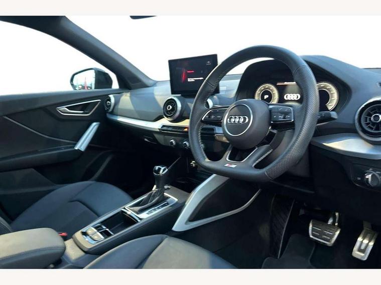 3D map display, Audi connect navigation and infotainment includes innovative services, Audi connect remote and control connects your vehicle to your smartphone, Audi drive select: S tronic - power steering assistance + engine + gearshift (modes: comfort, auto, dynamic, efficiency, individual), Audi smartphone interface - Apple carplay/Android Auto, USB connect, 2xSDXC card readers, voice control for navi, telephone, music and 3rd party apps, Audi virtual cockpit, Automatic start/stop system with recuperation, Bluetooth interface includes bluetooth audio streaming, Cruise control, Distraction and Fatigue warning, E-call, Jukebox hard drive memory for music (10GB), Lane departure warning, MMI navigation plus with 8.8" touchscreen, Natural voice recognition, Power operated tailgate, Progressive steering, Rear parking sensors, Sport suspension, 6 passive loudspeakers, DAB Digital radio, USB type C port, Audi beam, Auto dimming rear view mirror, Black window trims, Bumper in full body colour paint finish, Electrically adjustable, folding, auto dimming and heated door mirrors with integrated LED side indicators, Front windscreen with grey tinted sunband, LED daytime running lights, LED headlights with dipped beam, high beam, position lights, indicators, LED rear lights, LED third brake light, Privacy glass - dark tinted rear and rear side windows from B-pillar backwards, Rear side wing doors, Rear wiper, Variable front intermittent wipers, Wheel arch trims in manhattan grey, 12v socket in front, 3 seat bench in 2nd row, 3 spoke flat bottomed multi-function leather sport steering wheel with gear shift paddles, 4-way electric lumbar support for front seats including manual seat height adjustment for both front seats, 60/40 split folding rear seat bench, Black carpets, Black cloth headlining, Front and rear head restraints, Front centre armrest, Front sport seats, Front/rear floor mats, Height/reach adjust steering wheel, Illuminated door sill trims with S logo, ISOFIX child seat mounting in front passenger and rear outer seats, Manual air conditioning, Single front passenger seat, Stainless steel pedals, Black styling pack - Q2, 3x3 point rear seatbelts, 6 airbags - Front, curtain and front side airbags, Electromechanical parking brake, Electronic stabilisation control including ABS, ASR and EDL, Front passenger airbag deactivation, Hill hold assist, Pre-sense front with pedestrian recognition, Seatbelt monitoring, Tyre pressure warning light with visual and acoustic warning, Warning triangle and first aid kit, Anti theft alarm, Anti theft wheel bolts, Electronically operated child locks, Remote central door locking, Aluminium interior element, Black dashboard, Gloss black centre console, Matt brushed aluminium trim inlays, Tool kit,