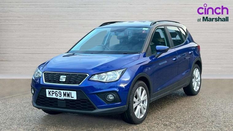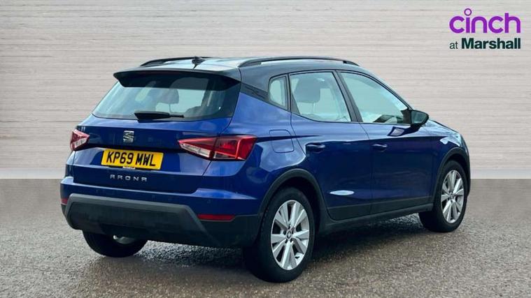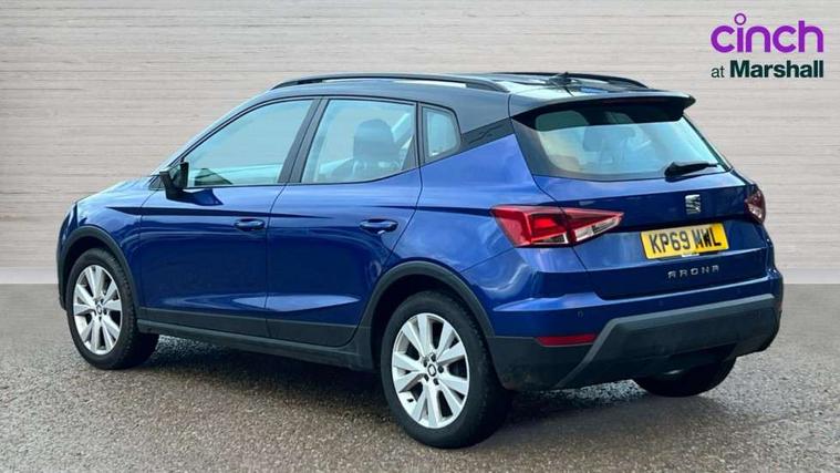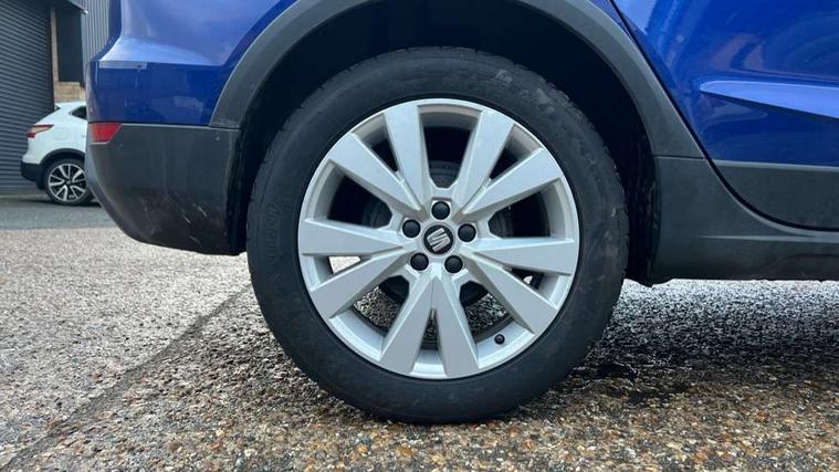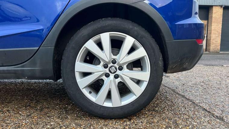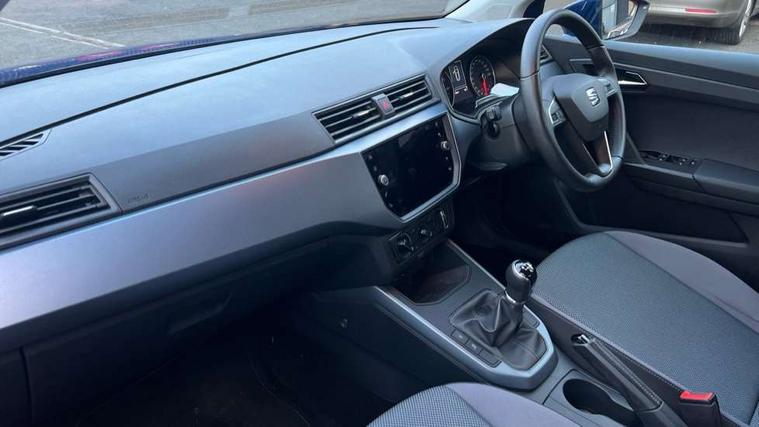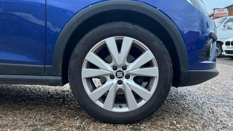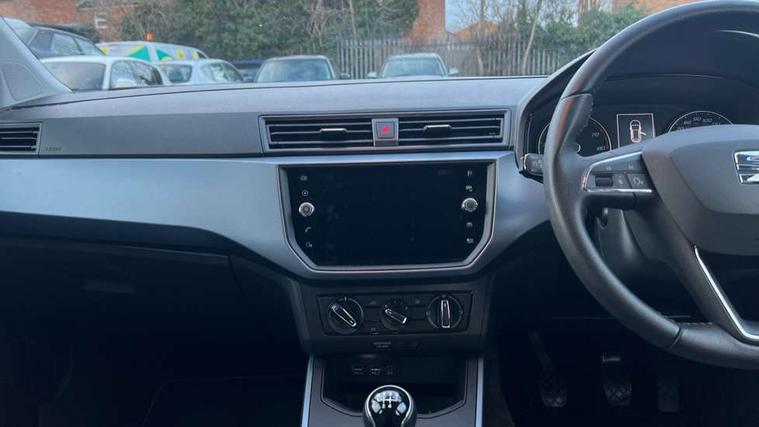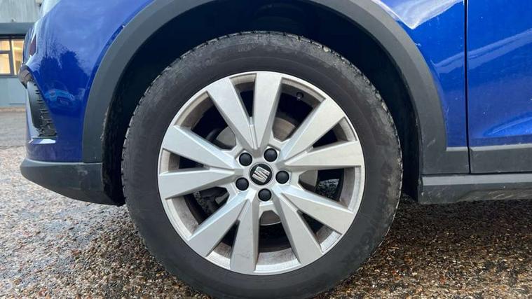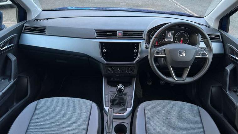 'Lights On' Reminder warning buzzer, Cruise control, Digital clock, Electric speed sensitive power steering, Full Link Smartphone Integration with Mirror Link, Apple Car Play, Google Android Auto with USB Type C cable for Apple and Android compatibility, Low fuel warning light, Outside temperature display, Rear parking sensor, RPM counter, Trip computer, Comfort suspension, 6 speakers, Bluetooth interface for hands free and audio streaming, DAB digital radio and AM/FM radio, Steering wheel mounted audio controls, Anti theft roof antenna, Automatic activation of hazard warning lights, Automatic headlights, Black roof rails, Black window trims, Body coloured bumpers, Body coloured door handle inserts, Body coloured door mirrors, Chrome front grille frame, Dimming rear view mirror, Electric adjustable door mirrors, Electric front/rear windows with one touch/auto up/down, Electric headlight adjustment, Front fog lights with cornering function and rear fog light, Hidden exhaust pipe, LED daytime running lights, LED rear tail lights and licence plate lights, Rear window wash/wipe, Visible VIN plate, Windshield wiper with intermittent control and potentiometer, 2 cupholders, 60/40 split folding rear seat, Air conditioning, Cloth upholstery, Double boot floor, Driver sunvisor with covered mirror + card holder, Dust/pollen filter, Front courtesy light with front reading lights, Gear shift indicator, Grey interior roof, Height adjustable front seats, Height/reach adjustable steering column, Illuminated boot, Instrument lighting with brightness control, Interior footwell lighting, ISOFIX points in outer rear seats with top tether anchorage points, Leather steering wheel/gear knob/handbrake, Multi-colour ambient interior lighting, Passenger sunvisor with vanity mirror, Two front and three rear height adjustable headrests, Connectivity pack plus - Arona, Interior chrome pack - Arona, 3 point seatbelts on all rear seats, ABS, Active front headrests, Child locks on rear doors, Driver and front passenger airbags with front passenger airbag de activation, front side and curtain airbags, Electronic stability control, Emergency Brake Assist (EBA) and front assist, Front and rear seatbelt reminder, Hill hold control, Multi-Collision braking, Tiredness recognition system, Traction control, Tyre pressure monitoring system, 2 folding remote keys with window open/close function, Electronic engine immobiliser, Locking wheel bolts, Remote central locking + deadlocks, Interior chrome line trim, Plastic grey dashboard, 17" Dynamic alloy wheels,