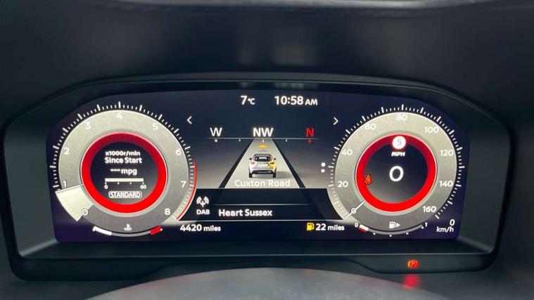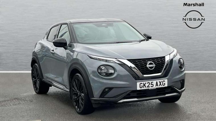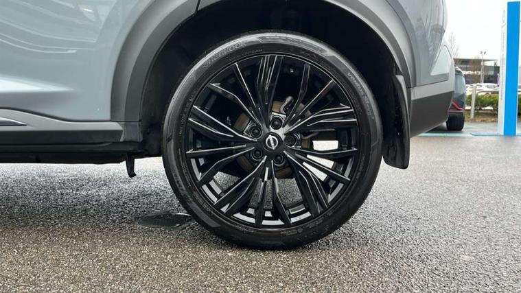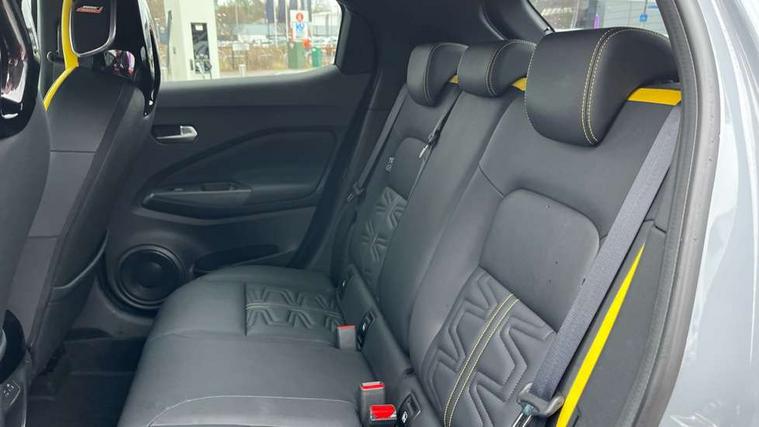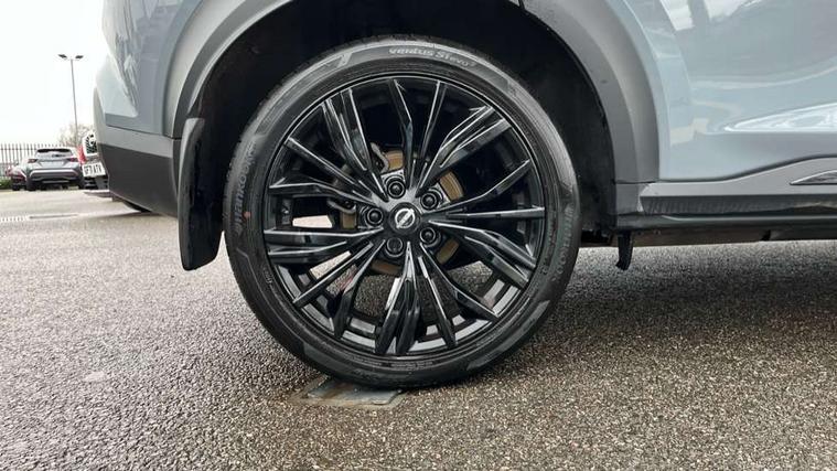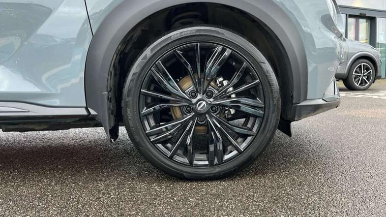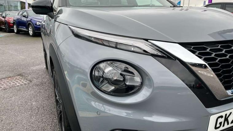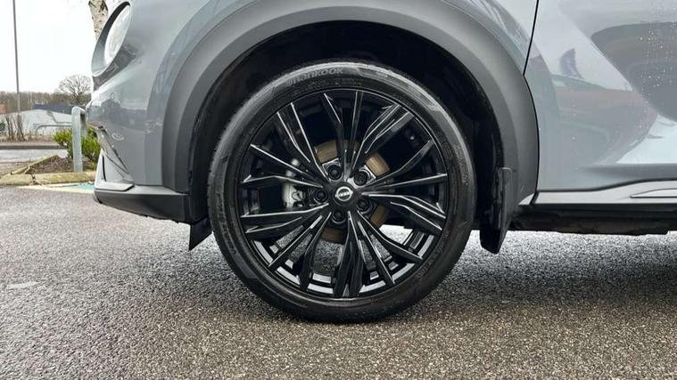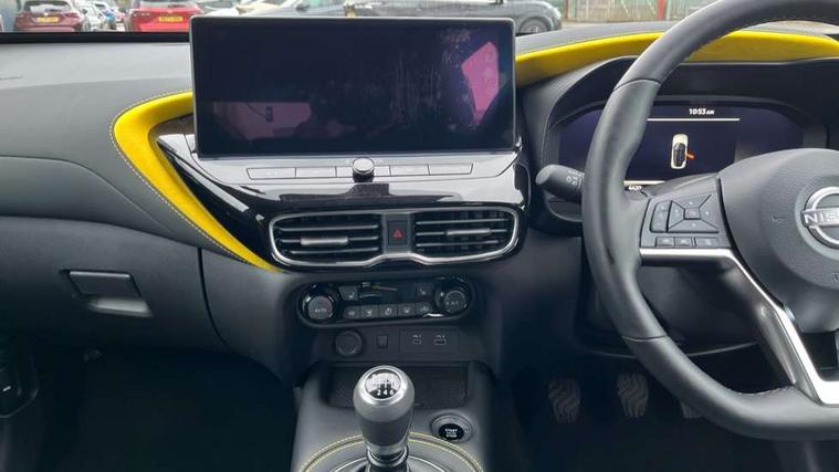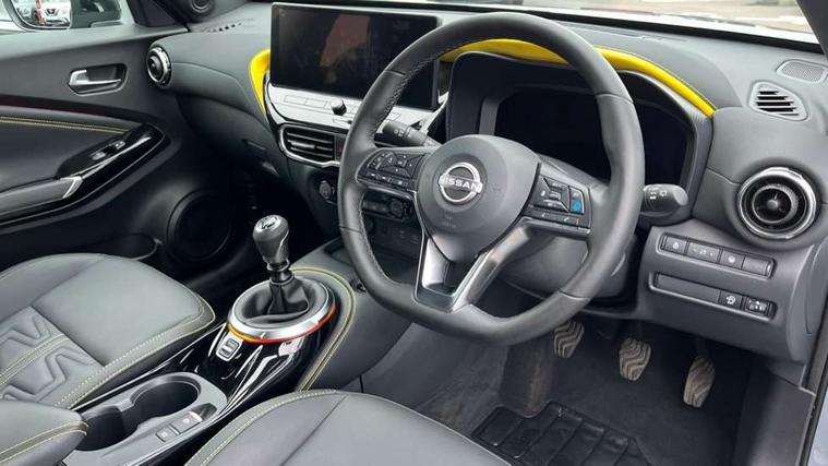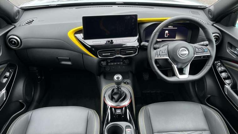 12.3" full colour TFT screen combimeter, Drive modes select (Eco, normal and sport), Emergency and breakdown call, Front parking sensor, Idle start/stop system, Intelligent driver alert system, Intelligent lane intervention, Lane departure warning system, Nissan connect 12.3" touch screen entertainment system, Nissan connect nav with TomTom traffic, Nissan connect services, Outside temperature sensor, Power Steering, Rear parking sensor, Stop/start button, Traffic sign recognition, Trip computer, Voice recognition, WiFi connectivity, Wireless Apple CarPlay and Google Android auto, Wireless Smartphone charger, 10 Bose speakers 6 speakers and 2 headrest speakers for driver/passenger seats, 2 X Rear console USB port, Bluetooth system, USB, Aux-in and 12V socket, Bose personal sound stage control, DAB Digital radio, Auto dimming frameless rear view mirror, Automatic hazard signal with emergency stop signal, Body colour door handles, Electrically adjustable door mirrors with integrated indicators, Follow me home headlights, Front and rear electric window with one touch driver window, Heated and auto folding door mirrors, High beam assist, LED 3rd brake light, LED daytime running lights, LED front fog lights, LED headlamps, LED rear fog lamp, LED rear lamps, One touch passenger window, Rain sensor windscreen wipers, Rear privacy glass, Rear side wing doors, Rear wiper, Roof spoiler, Shark fin roof antenna in solid Black, Three blink turn signal, 3 height adjustable rear headrests, 3 seat bench in 2nd row, 60/40 split folding rear seat, Automatic climate control, Card holder on driver sunvisor, Door ambient lighting, Driver seat back pocket, Driver side rear coat hanger, Driver/passenger sunvisors and vanity mirrors, Front and rear cabin lights, Front armrest, Front door pockets with bottle holders, Front head restraints, Front/rear passenger grab handles, Gear console ambient circle lighting, Height adjustable driver's seat, Internal chrome door handles, Leather gearshift knob, Luggage board, Luggage space lighting, Monoform sporty seats, Multifunction steering wheel, Passenger seat back pocket, Rear door bottle holders, Single front passenger seat, Smooth synthetic leather steering wheel, Synthetic leather kneepad, Telescopic steering wheel adjustment, Two cupholders in front centre console, Two rear isofix child seat anchorage points with top tether, Welcome light and console tray ambient lighting, Advanced safety shield pack - Juke Manual, Gloss black exterior personalisation pack - Juke, Heat pack with height adjustable passenger seats - Juke, Interior personalisation pack - Juke, ABS with EBD and brake assist, Active ride control, Active Trace Control, Driver and passenger airbags, Driver and passenger side airbags, Electric handbrake with auto hold function, Electronic Stability Programme (ESP), Front and rear curtain airbags, Height adjustable seatbelts, Hill start assist, Intelligent emergency braking with pedestrian and cyclist recognition, Rear door child safety locks, Seatbelt reminder for driver/front passenger and rear seats, Three 3 point rear seatbelts, Traction control, Tyre pressure monitoring system, VDC Dynamic Vehicle Control, Alarm, Immobiliser, Intelligent key and start push button with walk away lock and approach unlock functions, Remote central locking, 19" Akari Black alloy wheels, Tyre puncture repair kit,
