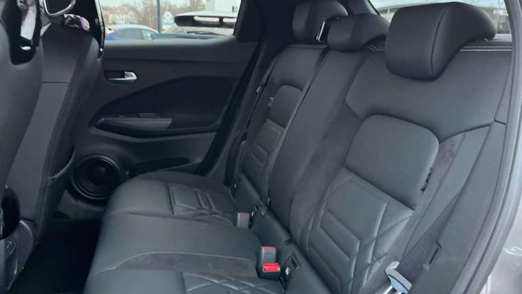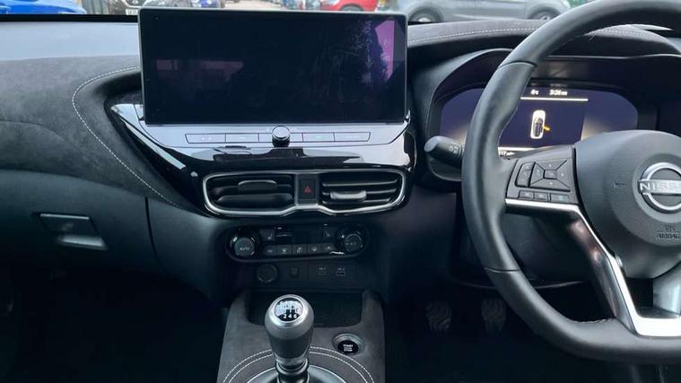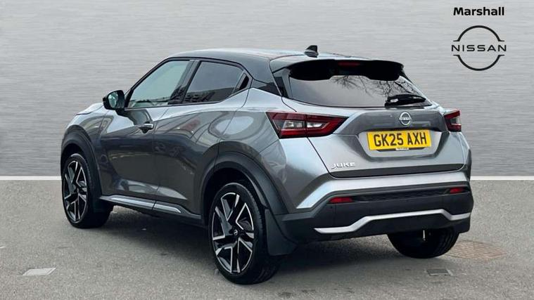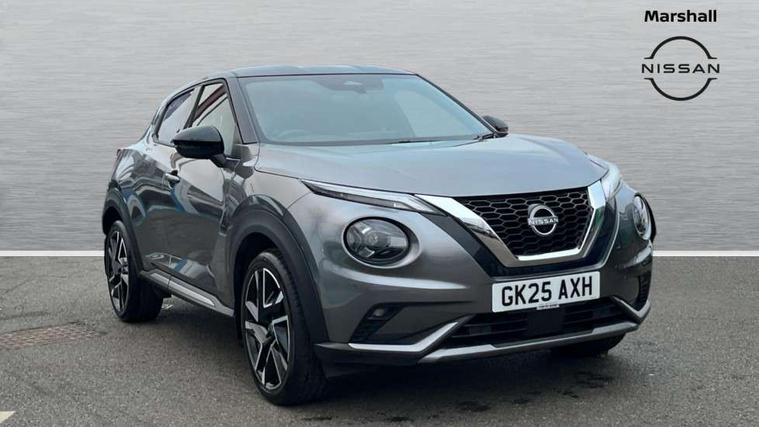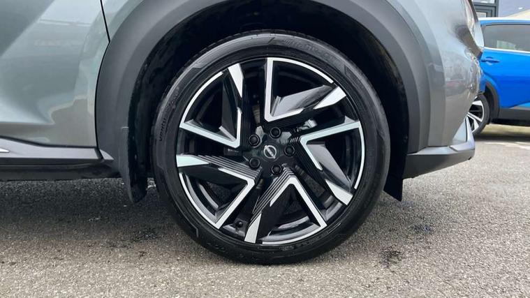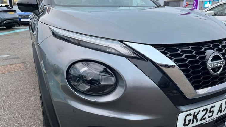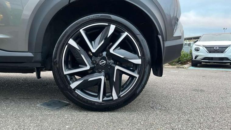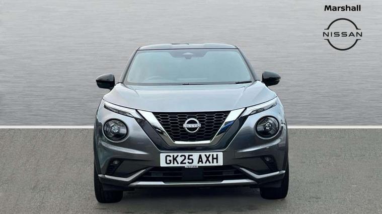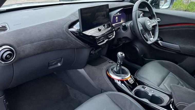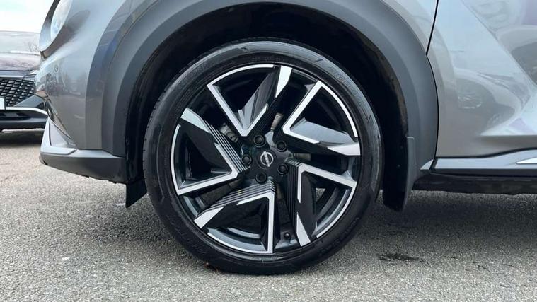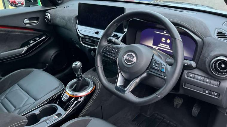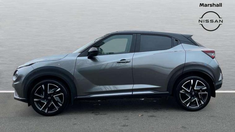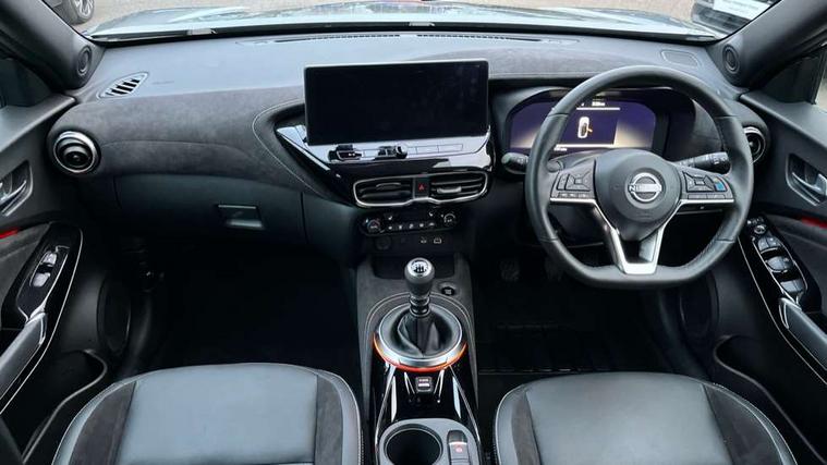 12.3" full colour TFT screen combimeter, Drive modes select (Eco, normal and sport), Emergency and breakdown call, Front parking sensor, Idle start/stop system, Intelligent driver alert system, Intelligent lane intervention, Lane departure warning system, Nissan connect 12.3" touch screen entertainment system, Nissan connect nav with TomTom traffic, Nissan connect services, Outside temperature sensor, Power Steering, Rear parking sensor, Stop/start button, Traffic sign recognition, Trip computer, Voice recognition, WiFi connectivity, Wireless Apple CarPlay and Google Android auto, Wireless Smartphone charger, 10 Bose speakers 6 speakers and 2 headrest speakers for driver/passenger seats, 2 X Rear console USB port, Bluetooth system, USB, Aux-in and 12V socket, Bose personal sound stage control, DAB Digital radio, Auto dimming frameless rear view mirror, Automatic hazard signal with emergency stop signal, Body colour door handles, Electrically adjustable door mirrors with integrated indicators, Follow me home headlights, Front and rear electric window with one touch driver window, Heated and auto folding door mirrors, High beam assist, LED 3rd brake light, LED daytime running lights, LED front fog lights, LED headlamps, LED rear fog lamp, LED rear lamps, One touch passenger window, Rain sensor windscreen wipers, Rear privacy glass, Rear side wing doors, Rear wiper, Roof spoiler, Shark fin roof antenna in solid Black, Three blink turn signal, 3 height adjustable rear headrests, 3 seat bench in 2nd row, 60/40 split folding rear seat, Automatic climate control, Card holder on driver sunvisor, Door ambient lighting, Driver seat back pocket, Driver side rear coat hanger, Driver/passenger sunvisors and vanity mirrors, Front and rear cabin lights, Front armrest, Front door pockets with bottle holders, Front head restraints, Front/rear passenger grab handles, Gear console ambient circle lighting, Height adjustable driver's seat, Internal chrome door handles, Leather gearshift knob, Luggage board, Luggage space lighting, Monoform sporty seats, Multifunction steering wheel, Passenger seat back pocket, Rear door bottle holders, Single front passenger seat, Smooth synthetic leather steering wheel, Synthetic leather kneepad, Telescopic steering wheel adjustment, Two cupholders in front centre console, Two rear isofix child seat anchorage points with top tether, Welcome light and console tray ambient lighting, Advanced safety shield pack - Juke Manual, Heat pack with height adjustable passenger seats - Juke, Interior personalisation pack - Juke, Satin grey exterior personalisation pack - Juke, ABS with EBD and brake assist, Active ride control, Active Trace Control, Driver and passenger airbags, Driver and passenger side airbags, Electric handbrake with auto hold function, Electronic Stability Programme (ESP), Front and rear curtain airbags, Height adjustable seatbelts, Hill start assist, Intelligent emergency braking with pedestrian and cyclist recognition, Rear door child safety locks, Seatbelt reminder for driver/front passenger and rear seats, Three 3 point rear seatbelts, Traction control, Tyre pressure monitoring system, VDC Dynamic Vehicle Control, Alarm, Immobiliser, Intelligent key and start push button with walk away lock and approach unlock functions, Remote central locking, 19" Alloy wheels with deep 3D effect, Tyre puncture repair kit,