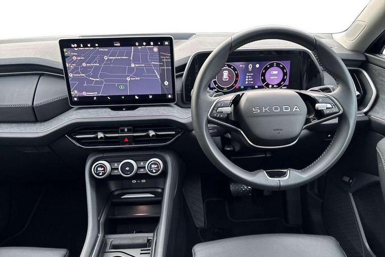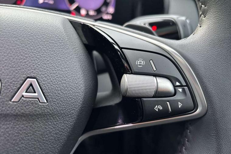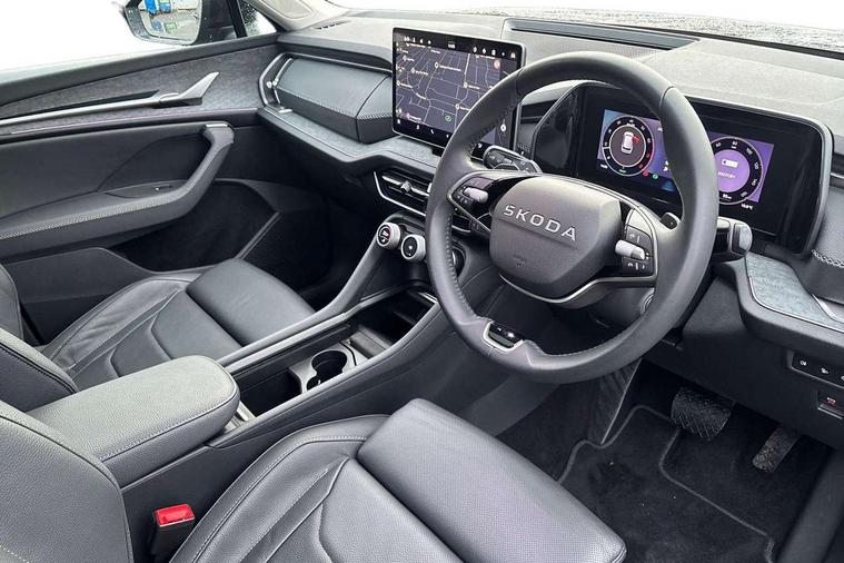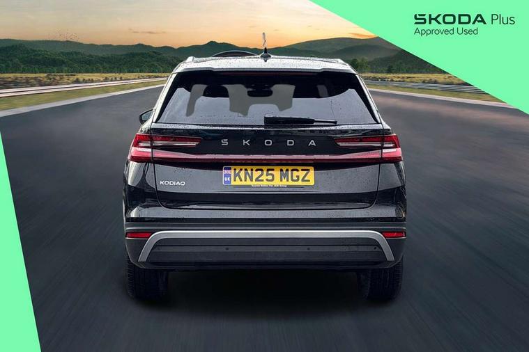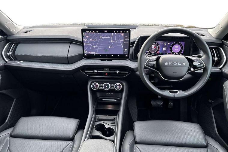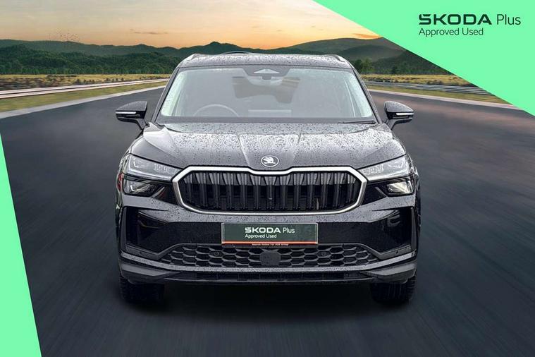13" satellite navigation touchscreen display, Blind spot detection with door exit warning, Bluetooth system, ChatGPT functionality, Driver alert - Fatigue and drowsiness monitor, Dry display cleaner, Emergency call, Front and rear parking sensors, Front cross traffic assist, Lane assist, PAS, Rear traffic assist, Tailgate unlocking from outside, Traffic sign recognition, USB C Port x 2 in front centre console, Virtual Cockpit - 10.25" digital display, Voice control system, Wireless charging for two smartphones (15W) with cooling function, Wireless SmartLink for Apple CarPlay and Android Auto, Stop/start function, 2x USB-C in the rear, DAB Digital radio, Aero front windscreen wipers with intermittent function, Auto dimming rear view mirror, AWL (all weather lighting) and all weather light with cornering function, Black wheel arch surrounds, Body colour bumpers, Body colour door mirrors and handles, Cornering light and poor weather light, Electric folding /adjustable/separted heated/folding door mirrors, auto dimming with boarding sports and memory function, Electric front and rear windows, Exterior black decorative trims, Heat insulating glass in windshield, Heated rear window, Ice scraper in fuel tank cap, Invisible tailpipe, LED daytime running lights, LED third brake light in rear spoiler, Light assistant with automatic headlight control and coming home feature, Logo projection in door mirrors, Privacy glass, Rear roof spoiler, Rear side wing doors, Rear window wiper, Red decorative strip between rear LED lights, Safety reflectors on front and rear doors, Unique dark chrome design logo on alloy wheels, Window control switches with black trim, Windscreen wipers with rain sensor, Without engine designation, 1.5l bottle holder points in all door, 1x centre rear reading light, 2 seat bench in 3rd row, 3 configurable smart dials with 32mm coloured display, 3 seat bench in 2nd row, 4 foldable roof handles with rear coat hooks, Ambient interior lighting - Dashboard, front-door stowage compartments, front and rear door panels and footwell lighting, Automatic gear selector on steering column, Chrome interior door handles, Driver/front passenger reading lights, Fabric headlining, Fixed bench 40:60:40 split folding backrests, Front and rear floor mats, Front centre armrest with jumbo box storage compartment, cup holder and 12V socket, Height adjustable front headrests, Isofix child seat fittings in outer middle row rear seats and front passenger with top tether, Manually adjustable steering column, Pollen filter, Rear centre armrest with cupholders, Rear seat boot backrest release, Single front passenger seat, Skoda lettering on steering wheel, Storage pocket including mobile phone pockets on the backs of the front seats, Sunvisors with illuminated vanity mirrors, Three rear height adjustable headrests, Ticket holder on A Pillar, Tri zone climate control, Umbrella in door panel x1 made from sustainable materials, Upper and lower glovebox with card holder and coin compartment, USB C port by rear view mirror for charging only (15W), Exterior styling pack - Kodiaq, Auto door release and activation of warning lights in the event of an accident, Driver and front passenger airbag with knee airbag and front passenger airbag deactivation, Electric child locks, Electronic parking brake, ESC (incl. ABS+EMD+MSR+ASR+EDL+HBA+DSR+RBS+ESBS+MCB+TSA+XDS), Front assist with braking reaction to vehicles, pedestrians and cyclists, Front disc brakes, Fuel cut off safety device, Height adjustable front 3 point seatbelts + pretensioners, Hill hold assist, Junction assist with automatic emergency braking, Rear disc brakes, Safety vest holder in door, Seat belt reminder for all seats, Three point rear seat belts, Two tone horn, Tyre pressure monitor, Anti-theft wheel bolts, Immobiliser, Remote central locking with 2 keys,