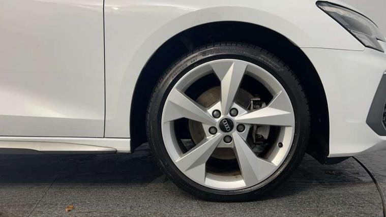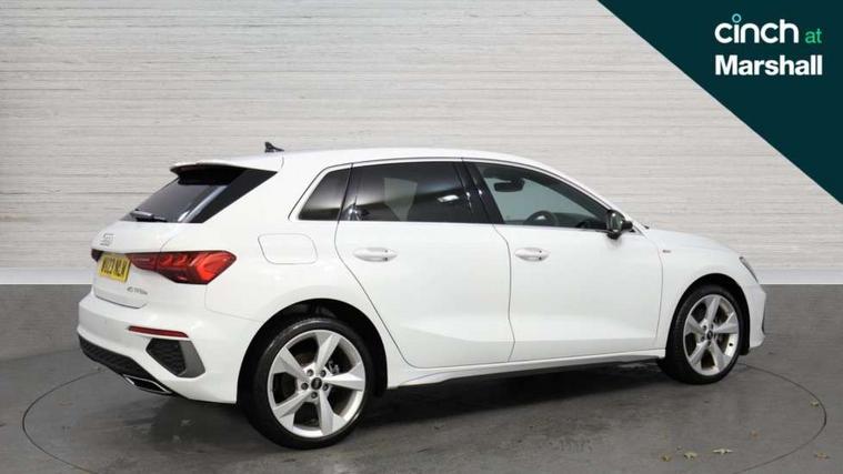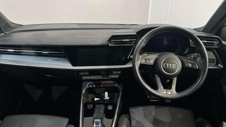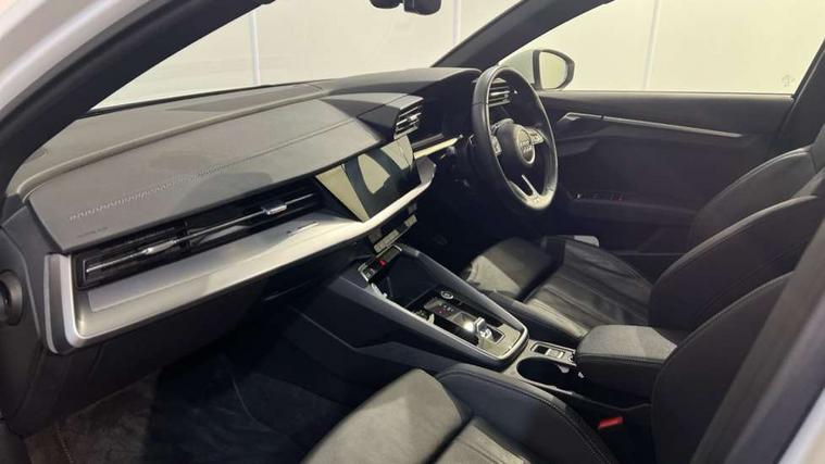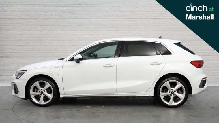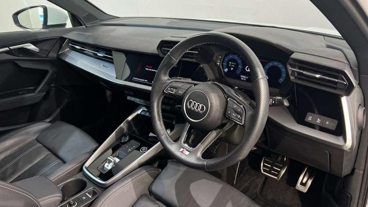 Audi drive select (Auto, Comfort, Dynamic, Efficiency and Individual), Audi smartphone interface, Audi Virtual Cockpit - 10.25" digital and colour instrument cluster, Automatic start/stop system with recuperation, Bluetooth interface, Collision avoidance assistant, e-Call (emergency call), Electromechanical power speed sensitive steering, Lane departure warning system, MMI Navigation Plus with high resolution 10.1" colour touch screen display, Service indicator, Trip computer, Voice control system with natural language interaction, 3 pin 10 amp domestic charging cable, 3.6 kw On-board charger, Standard suspension, Type 2 mode 3 32 amp charging cable, Type 2 socket for AC charging, 2xUSB-C connection with data and charging functions, 6 passive loudspeakers, DAB Digital radio, 3rd brake light, Acoustic glass windscreen, Aluminium window trim, Auto dimming frameless rear view mirror, Body colour exterior mirrors, Electrically adjustable/heated/folding/auto dimming door mirrors with integrated LED indications + kerb view function for passenger side, Front electric windows, Illuminated aluminium inserts front door sills with S logo, LED daytime running lights, LED headlights with LED rear lights and dynamic rear indicators, Light and rain sensors, Privacy glass - dark tinted rear window, rear door and side windows, Rear electric windows, Rear side air outlets in grained matt black, Rear side wing doors, Rear wiper, S line bumpers, S roof spoiler, 12V socket and storage compartment in front centre console, 3 seat bench in 2nd row, 3 spoke leather multifunction steering wheel with paddle shift, 40/20/40 split folding rear seat bench with cupholder, Black cloth headlining, Dual zone electronic climate control, Front and rear centre armrest in leather, Front and rear headrests, Front/rear floor mats, Height and reach adjustable steering wheel, Illuminated vanity mirror, Interior lighting - glove compartment light and right hand side, Luggage compartment floor covering, Manual boot compartment lid, Manually adjustable front seats, Seat side bolsters, Single front passenger seat, Stainless steel pedals and front footrest in black, Twin leather upholstery with front sports seats S embossed logo, Aluminium interior elements pack - A3 Sportback, LED interior lighting pack - A3 Sportback, S line styling pack - A3 Sportback, 3x3 point rear seat belts, Audi pre sense front, Driver and front passenger airbag with passenger airbag deactivation, Electronic Stabilisation Control (ESC) including ABS, ASR and EDL, First aid kit with warning triangle and 2 safety vests, Front side airbags with head airbags and interaction airbag, Pre-sense front with pedestrian and cyclist detection, Seatbelt monitoring, Tyre pressure loss indicator, Anti theft alarm, Anti-theft wheel bolts, Electronically operated child lock, Immobiliser, Remote control central locking, Accent surfaces in the dashboard and centre console in platinum grey silk effect paint finish, Dark spectrum aluminium inlays, Tool kit, Tyre repair kit,