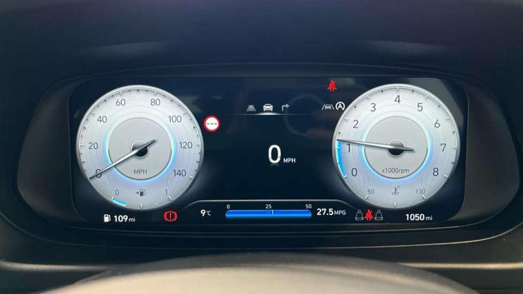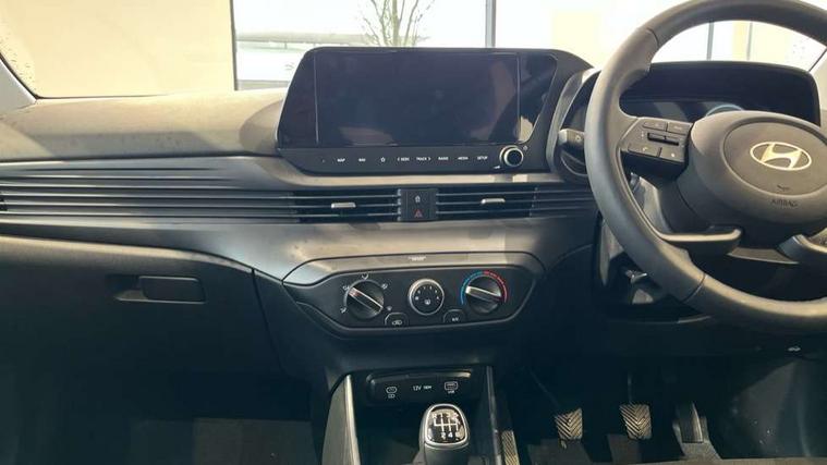 10.25" touchscreen + navigation, 2nd Gen eCall, 8" Touchscreen DAB Radio with android auto and apple carplay, Cruise control + speed limiter, Forward collision assist with car, pedestrian and cycle detection, Intelligent speed assist, Intelligent speed limit warning, Lane follow assist, Lane keep assist, PAS, Rear parking sensor, Rear view camera with dynamic guidelines, USB C port front, Automatic headlights with dusk sensor, Electric adjustable heated door mirrors, Front grille mesh pattern design, High beam assist, LED 3rd brake light, LED daytime running lights, LED Headlights, LED taillights, Rain sensor, Rear side wing doors, Rear wiper, Repositioned flat metal hyundai emblem, Trailer wiring, 3 seat bench in 2nd row, Adjustable head restraints, Air conditioning, Cloth upholstery, Floor mats, Leather steering wheel, Single front passenger seat, 3x3 point rear seatbelts, ABS with front and rear diagonally split, Autonomous emergency braking, Child locks on rear doors, Front ventilated disc brakes, Rear solid disc brakes, Tyre pressure monitoring system, 16" alloy wheels, Tyre repair kit,