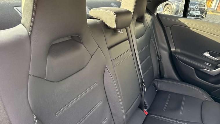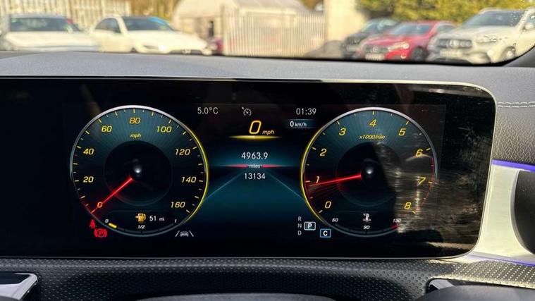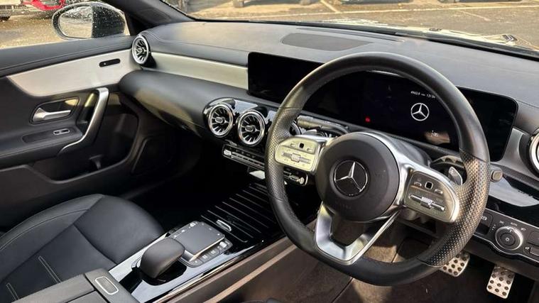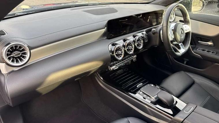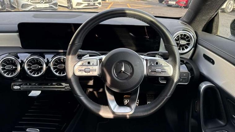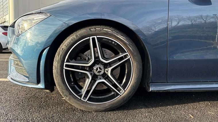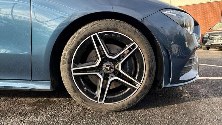 10.25 inch Instrument display with digital cockpit, 10.25 inch touchscreen central media display, Active lane keeping assist, Attention assist - Monitors steering behaviour and long journey fatigue, Bluetooth connection, Car wash mode, Cruise control with limiter, Direct steer system with speed sensitive power steering, DYNAMIC SELECT with a choice of driving modes (ECO, Comfort, Sport and Individual), ECO start/stop function, Fluid level warning indicator for fuel, oil, coolant and washer fluid, Hard-disk navigation, Hey Mercedes Voice activation, Lamp failure indicator, Mercedes me connect including emergency call system, accident recovery, breakdown and maintenance management, Mercedes me remote services, Outside temperature gauge, Owners manual and service booklet in English, Pre-installation of private car share, Preinstallation for Mercedes Benz link, Radio aerial integrated into front and rear windshields, Service indicator (ASSYST), Smartphone integration with Apple CarPlay and Android auto, Speed limit assist, Trip computer in multifunction display with current consumption indicator, Lowered comfort suspension, Rear axle multi-link, DAB digital radio tuner, MBUX multimedia system, Mid-range sound system, USB (type C) ports (2) in stowage compartment and 1 in front of centre console, Adaptive brake lights, AMG body styling with AMG front apron and rear apron and visible exhaust tailpipe in chrome trim elements, AMG bodystyling side skirts, Body colour bumpers, Body colour door handles, Chrome beltline strips, Diamond radiator grille pins in chrome, Electric windows, Electrically adjustable and heated door mirrors with integrated LED indicators, Exhaust system with 2 Visible tailpipe trim elements and rear apron with trim in chrome, Headlamp assist automatic headlamp activation, Heated glass rear windscreen + timer control, High level LED third brake light, Interior mirror with black reading lamps and frameless, LED high performance headlamps with integrated LED daytime running lights, LED tail lamp, Privacy glass with dark tinting on rear side windows and rear window, Rain sensing windscreen wipers with two sensitivity settings, Rear boot, Rear fog lamp, Rear side wing doors, Variable front intermittent wipers, Window line trim strip in chrome, 3 seat bench in 2nd row, 3 spoke flattened bottom nappa leather multifunction steering wheel with perforated leather in grip area, 40:20:40 split folding rear seat backrests, Air conditioning - Two zone thermotronic luxury automatic climate control with display, Air vents with surround in silver chrome, Artico man-made leather upholstery, Automatic child seat recognition sensor, Black roof lining, Brushed stainless steel sports pedals with rubber studs, Floor mats with stitched AMG lettering, Front centre armrest with stowage, Galvanished gear shift paddles on steering wheel, Heated front seats, Illuminated front door sills with changeable cover, Illuminated glove compartment stowage, Interior lighting - 64 colour Ambient lighting, Luggage net on driver/front passenger seat backrest, Manually adjustable front seats, Manually height and reach adjustable steering column, Rear armrest with two integral cup holders for drinks, Rear head restraints, Single front passenger seat, Sport seats with fixed head restraints, Stowage compartment in centre console with retractable cover, Sunvisors with illuminated vanity mirrors, Touchpad on center console, Twin front cupholders, Two outer rear seat isofix and top tether child seat fixing points, Keyless go comfort pack - CLA, Light and sight pack - CLA, Mirror pack - CLA, Night package - CLA, Parking package - CLA, Seat comfort pack - CLA, Active bonnet pedestrain safety measure which detects an impact and raises bonnet by 65mm, Active brake assist includes forward collision warning system with autonomous braking, Adaptive brake assist with hold function and hill start assist, Anti lock braking system (ABS) with brake assist, Black seat belts, Bonnet with power domes, Brake pad wear warning indicator, Childproof locks manually operated for rear doors and electrically operated for rear power windows, Crash responsive emergency lighting, Driver and front passenger head and sidebags, Driver and front passenger windowbags, Drivers knee airbag, Dual stage driver and front passenger airbags, Electric parking brake, Electronic stability programme with acceleration skid control, ESP curve dynamic assist, Front and rear seatbelt reminder, Front passenger seat occupancy sensor, Three point rear seat belts, Tyre pressure monitoring system, Warning triangle and first aid kit, Guard 360 degree guard vehicle protection system with immobiliser and interior protection, Remote central locking and crash sensor with emergency opening function, Light aluminium with longitudinal grain interior trim, 18" AMG 5 twin spoke light alloy wheels painted in black with high sheen finish, Summer tyres, Tirefit tyre sealant kit,
