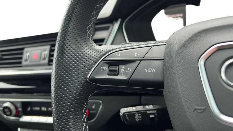 Audi connect safety and service (e-call), Audi connect with Amazon Alexa Integration, Audi drive select, Audi smartphone interface, Audi virtual cockpit, Automatic start-stop system with coasting functionality and efficiency programme, Bluetooth interface, Electromechanical power steering, Email, calendar and text messages displayed via MMI, Head up Display, MMI Navigation plus with MMI touch includes 10.1" high resolution colour MMI display, 3D map, Park assist system, Power operated tailgate, Voice control system, 54 litre fuel tank, Adaptive sport suspension with damping control, 2 USB charging ports, DAB digital radio reception, Audi beam uses LEDs to project the audi logo in front and Vorsprung in rear, Audi matrix LED headlights with LED rear lights + dynamic front and rear indicators, Auto dimming rear view mirror, Black Audi rings and black badging (model name in black badging, no engine badging), Black audi rings decal above rear sills, Body colour door handles, Body colour front spoiler lip, Body colour side sill trim, Electrically folding auto dimming/adjustable/heated door mirrors with memory function, LED side indicators and kerb view function for passenger side, Front and rear bumpers with side skirts, Front wing badges, Grained matt black side air inlets with matt aluminium silver inlay, High beam assistant, High gloss black B pillar trims and triangular rear door trim, LED daytime running lights, LED third brake light, Matt aluminium silver tailpipe trim, Panoramic glass sunroof, Privacy glass, Rain and light sensors, Rear diffuser in matt titanium black with trim strip in matt aluminium silver, Rear side wing doors, Rear wiper, RS4 rear spoiler in body colour, S Line roof edge spoiler, Variable intermittent front wash/wipe, Windscreen with acoustic glazing, 3 spoke high multi-function sports leather steering wheel grips in perforated leather with S badging including paddle shift, 40/20/40 split folding 3 rear seat bench in 3 parts with rear centre armrest, Black cloth headlining, Black perforated leather gearknob, Contrast stitching on seats, steering wheel and gear lever gaiter, Deluxe 3 zone electronic climate control, Door sill trims with aluminium inlay, Electric load area cover, Electrically adjustable front seats with memory function for driver's side, Fine Nappa leather upholstery with front sports seats S embossed logo, Front and rear head restraints, Front centre armrest, Heated front and outer rear seats, Illuminated door sill trims with S logo, ISOFIX child seat mounting and top tether, Pneumatically adjustable lumbar support with massage function, Single front passenger seat, Stainless steel pedals and foot rest, Tool kit, Black styling pack - A4 Avant, Comfort and sound pack - A4, Driver assistance pack - A4/S4, Extended leather pack - A4/S4, Multi coloured extended LED interior lighting pack - A4, Parking assistance advanced pack - A4 Vorsprung, 3 rear seatbelts, 6 airbags - Driver, front passenger, curtain and side windows, Electronic Stabilisation Control (ESC) including ABS, ASR and EDL, Hill hold assist, Multi collision brake assist, Pop-up bonnet for pedestrian protection, Pre sense city, Rear door child safety locks, Seatbelt monitoring, Warning triangle and first aid kit, Anti theft alarm, Anti theft wheel bolts, Central locking, Keyless Go, 19" 5 V spoke star design alloy wheel in matt titanium look, Tyre repair kit,