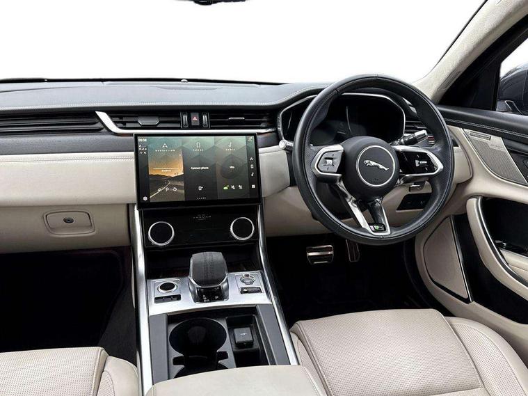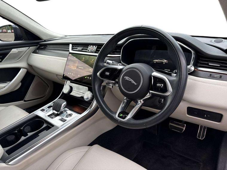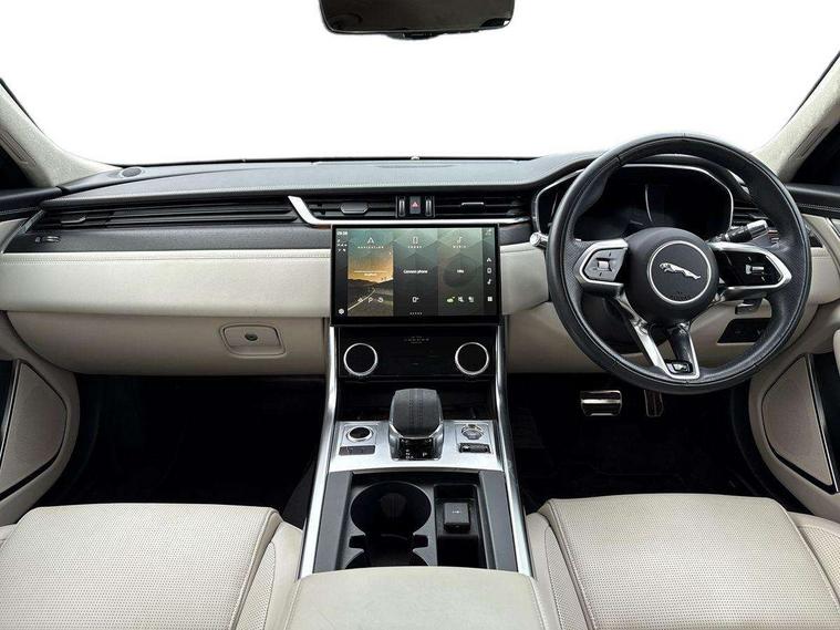 Adaptive cruise control, Android Auto, Apple car play, Blind spot assist, Bluetooth connectivity, Clear exit monitor, Driver condition monitor, Electric power assisted steering, Emergency call service, Front and rear parking aid, Front animated directional indicators, Interactive driver display digital with 12" TFT display, Lane keep assist includes oncoming vehicle detection and edge detection, Outside temperature gauge, Pivi pro connected navigation system with 11.4" touch screen, Power tailgate/boot lid, Push button starter, Rear collision monitor, Rear traffic monitor with parking emergency braking (Autobrake), Service interval indicator, Speed proportional steering, Traffic sign recognition with adaptive speed limiter, Trip computer, DAB Radio (Digital Audio Broadcasting), Remote app, USB and auxiliary socket, Acoustic windscreen, Automatic headlights, Black lower front bumper hoops, Body colour door handles, Body colour door mirrors, Electric heated/power fold memory door mirrors with approach lights and auto dimming driver side, Electric windows with one touch open/close and anti trap, Front bumper's lower chin and rear lower bumper is finished in gloss black, Heat insulated glass, Heated front windscreen, Heated washer jets, Illuminated metal tread plates with Jaguar script, Jaguar script and leaper, LED tail lights, P300 AWD badge, R Dynamic badge, R-Dynamic exterior body styling including gloss black and detailing, Rain sensor windscreen wipers, Rear boot, Rear side wing doors, Third brake light, Trailer stability assist, XF badge, 2nd row air vents, 3 rear seat head restraints, 3 seat bench in 2nd row, Bright metal foot pedals, Centre armrest console, Electrically adjustable steering column, Front armrest, Front door and rear door storage space, Interior front door handles with separate locking switches, ISOFIX on outer rear seats, Overhead stowage for sunglasses, Passive front head restraints, Perforated Windsor leather upholstery with sports seat, Premium cabin lighting, Premium carpet mats, R-Dynamic branded leather steering wheel, Rear armrest with twin cupholders, Single front passenger seat, Sunvisors with illuminated vanity mirrors, Twin front cupholders, Online pack with data plan - XF, 355mm front brakes and 325mm rear brakes, ABS+EBA, All surface progress control (ASPC), Brake pad warning light, DSC - Dynamic Stability Control, Electronic parking brake, Emergency brake assist, Front airbags with passenger seat occupant detector, Front side airbags, Full length side window curtain airbag, Hill launch assist, Pedestrian contact sensing, Power operated child locks, Seatbelt warning, Three 3 point rear seatbelts, Torque vectoring brake, Traction control, Tyre pressure monitoring system, Immobiliser, Keyless entry, Locking wheel nuts, Perimeter alarm, Remote central locking with deadlocks and drive away locking,