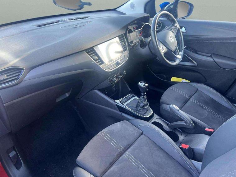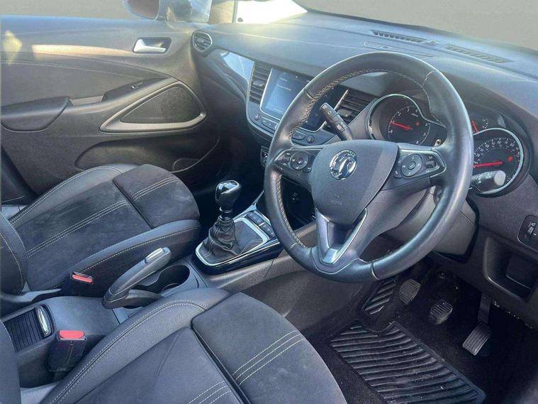 3.5" colour instrument display, Advanced Park Assist, Audible lights on warning, Cruise control + speed limiter, Digital clock with automatic RDS time adjustment, Driver drowsiness alert system, E-call, Forward collision warning, Front camera system, Instrumentation - Speedometer, rev counter, low fuel gauge warning light + water temperature gauge warning light, shift up/down indicate light, Lane departure warning with lane keep assist, Multi function trip computer, Multimedia sat nav pro with 8" colour touchscreen, AM/FM, Bluetooth streaming, Bluetooth mobile phone portal, apple CarPlay/Android Auto + 6 speakers, Outside temperature display with ice warning, Panoramic rear view camera, Refridgerant low indicator, Service interval indicator, Side blind spot alert, Smartphone projection, Speed sensitive power steering, Speed sign recognition, Start/stop system, Vauxhall connect, Vehicle microphone, Front wheel drive, 2 x USB connections, DAB Digital radio, Steering wheel mounted audio/phone/cruise controls, 2 speed wipers/wash wipe/intermittent wipe, Automatic anti dazzle rear view mirror, Automatic headlamp levelling system, Automatic high beam control with cornering light, Automatic lighting control, Black door mirror caps, Black griffin logo, vizor frame, rear lettering and skid plates, Body colour door handles, Body colour front and rear bumpers, Chrome effect upper window moulding, Collapsible windscreen wipers, Dark tinted rear side windows + tailgate window, Electrically adjustable, heated and power folding door mirrors, Electrically operated front and rear windows with safety auto reverse and one touch up/down facility, Flexible roof mounted aerial, Hazard warning lights, Headlamps for left side traffic, Heated rear window, Integrated tailgate spoiler, Intermittent rear wash/wipe, LED 3rd brake light, LED daytime running lights, LED front fog lights, LED Headlights, LED side repeat indicators, LED tail lights, Rain sensitive windscreen wipers, Rear fog lights, Rear side wing doors, Reversing light, Side window demist vents, Silver roof rails, Solar heat absorbing windscreen and windows, Upper and lower bumper design, Welcome lighting, Windscreen demist vents, 12v power outlet - front, 12V power outlets on rear seat, 3 seat bench in 2nd row, 3 spoke leather covered steering wheel, Air recirculation facility, Alcantara suede/vinyl upholstery, Ambient lighting, Anti submarining ramps in front seats, Cabin particulate filter - removes dust, airborne particles and pollen, Centre console storage box with sliding lid, Centre console with two cup holders and open storage box, Chrome effect digital instrument cluster surround, Driver's vanity mirror with flip up cover, Dual zone electronic climate control, Ergonomic active driver’s and front passenger’s seat with AGR approved 8 way adjustable, seat cushion extension, 4 way electrical lumbar adjustment, Fade up/fade down on interior lighting, Four adjustable facia vents, Front and rear central courtesy light, Front centre armrest for drivers seat, Front door pockets with 1.5 litre bottle holder, Front map reading lights, Fully carpeted luggage area, Glovebox with lid, Height adjustable front/rear head restraints, Illuminated load area, Isofix system on outer rear seats, Jet black fabric side bolsters, Luggage compartment cover, Multi-speed fan with Illuminated control, Passenger assist handles, Passenger's illuminated vanity mirror with flip up cover, Reach + rake adjustable steering column, Rear dome lamp, Rear door pockets with 0.5 litre bottle holder, Rear floor ventilation ducts, Satin chrome effect bezel on steering wheel, Single front passenger seat, Storage pockets on front seat backs, Versatility pack - Crossland, Winter pack - Crossland, 3x3 point rear seatbelts, ABS, Automatic emergency braking with pedestrian detection, Child locks on rear doors, CSC - Cornering stability control, Deactivate switch for side impact airbags, Deformation zones front and rear, Driver and front passenger airbags, Dual seatbelt pretensioners on front seats, EBD - Electronic brakeforce distribution, Energy absorbing steering column, Engine drag torque control, ESP + traction control, Front side impact airbag, Full size curtain airbags, Hill start assist, Hydraulic Brake Assist (HBA), Hydraulic brake boost, Inertia reel lap and diagonal seatbelts for all seats, Passenger airbag deactivate switch, Rear seat belt pretensioners, Reinforced passenger safety cell, Seatbelt load limiter, Side impact protection beams, Smart seatbelt reminder for front and rear seats, Tyre pressure monitoring system, 2 remote folding keys, Electronically protected audio equipment, Engine immobiliser, Keyless entry and start, Locking wheel bolts, Remote control central locking, Remote control security alarm system, Visible vehicle identification number, Black facia with dark grey trim inserts, Cluster black with chrome rings, Silver trim inserts on front doors, 17" Five twin spoke diamond cut bi colour alloy wheels,