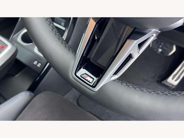 Attentiveness assist, Automatic start/stop function, BMW Live Cockpit Plus with 10.25" instrument cluster and 10.7" display, BMW Operating system 9 with BMW Maps, real-time traffic information, in-car experiences, remote services and smartphone integration, BMW Teleservices, Brake pad wear indicator, Condition based service, Connected eDrive Services, Drive off assistant, Electrically opening/closing tailgate with opening/closing with remote control and contactless opening and closing, iDrive controller, Language version English, My Modes, Parking Assistant with Reversing Assistant, active PDC, Lateral Parking Aid, Rear View Camera and Park Distance Control, Personal Profile - automatic lock when driving away selectable, Servotronic PAS, Tyre puncture warning system, Widescreen display, EU6 emissions management, Larger Fuel Tank, M Adaptive suspension, Performance Control, Petrol Particulate Filter, Steptronic transmission with double clutch and gear shift paddles, BMW Personal eSim, DAB Digital radio, Badge on engine compartment lid and tailgate, Body colour door mirrors, Dynamic brake lights, Electric adjustable heated door mirrors, Electric windows - front and rear, with open/close fingertip control, anti-trap facility and comfort closing, Folding door handles integrated flush with surface, Follow me home headlights, Front and rear bumper panel with M specific design, in body colour with inserts in black high gloss, Front door exit lights, Heated rear window, High gloss shadowline, Invisible exhaust tailpipe, Key with M identification, LED 3rd brake light integrated in rear spoiler, LED daytime running lights, LED number plate light, M identification on the sides, M roof rails high gloss shadow line, M specific radiator grille in satinated aluminium, Matt black roof strips, Model inscription on right tailgate, Rain sensor including auto headlights activation, Rear side wing doors, Rear wiper, Sill cover in body colour, Trailer stabilisation logic, Windscreen washer nozzle for rear view camera, Windscreen wipers front with heated washer nozzles, 12V - Power sockets with front centre console and luggage compartment, 2 bag hooks in luggage compartment, 2 cup holders in front, 2 x USB Type C ports for charging in front centre console + 1 x USB Type C ports for charging in rear centre console, 3 rear headrests, 3 seat bench in 2nd row, 3 upper retaining strap clips integrated into rear panels of seat backrests, 4 grab handles, 40:20:40 split folding rear seats, Ambient interior lighting, Anthracite headlining, Anthracite Velour front and rear floormats, Bottle trays in all doors, Child seat ISOFIX attachment for two outer rear seats and front passenger seat with anchorage points, Clothes hook rear, Driver and front passenger heated seats, Dual zone automatic air conditioning, Front and rear door pockets, Front and rear footwell lighting, Front centre console storage compartment, Front/rear adjustable head restraints, Glove compartment, Interior door handle recess light on all doors, Light on right in luggage compartment, M sport leather steering wheel, Manual steering column height and depth adjustment, Middle centre console storage compartment, One piece parcel shelf opens together with tailgate and removable, Rear armrest in door trim panel, Single front passenger seat, Sport leather multifunction steering wheel with thumbrests and operation of instrument display, audio, telephone and driver assistance, Storage compartment net in left side trim panel, Storage compartment with folding cover under centre console armrest cushion, Storage tray in right side trim panel, Tilt adjustment incl. cargo function of 2nd row of seats, Vanity mirror lights, ABS/EBD, Automatic hold function, Automatic Stability Control (ASC), BMW emergency call, Braking readiness, Cornering brake control (CBC), Crash Sensor - activates hazard/interior lighting + unlocks doors, Driver/Front Passenger airbags, Driver/front passenger side airbags, Dry braking, Dynamic brake control, Dynamic stability control + (DSC+), Electromechanical parking brake, Energy recovery system, First aid kit, Front and rear brake discs, Front and rear head airbags, Front passenger airbag deactivation, Integrated brake system, PC iBrake PostCrash approach control warning with light braking function, Rear door child safety locks, Three point seat belts in all seats, Tyre pressure monitor, Warning triangle, Alarm system with tilt sensor, monitoring doors, bonnet interior and tailgate, Closing system with central locking, Locking wheel bolts, Luxury instrument panel, Tyre repair kit plus,
