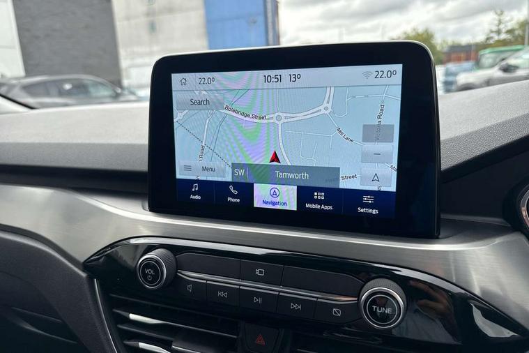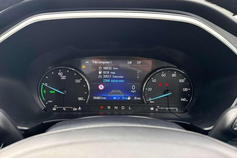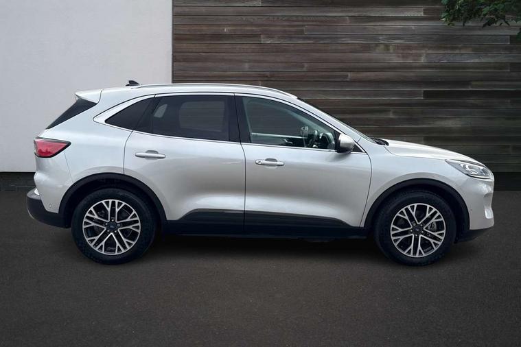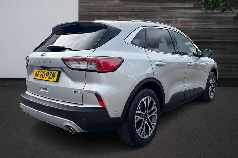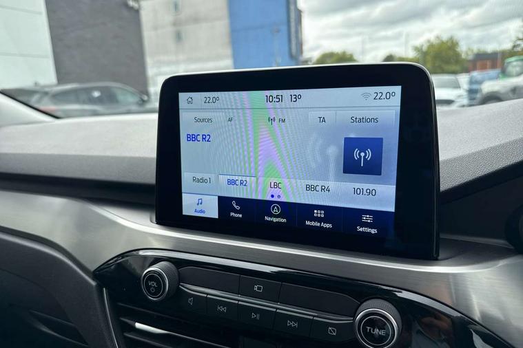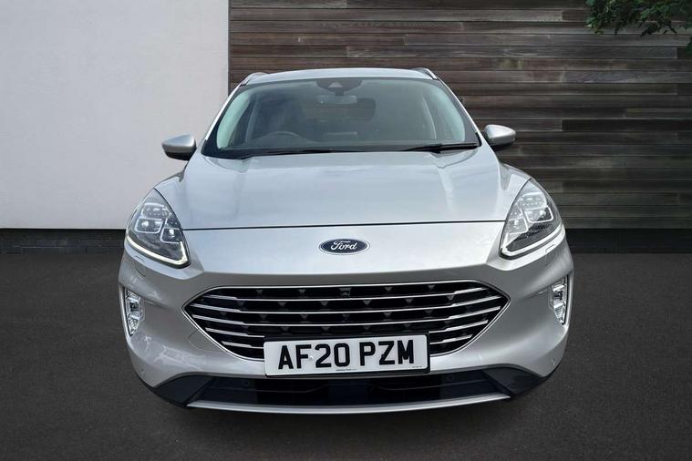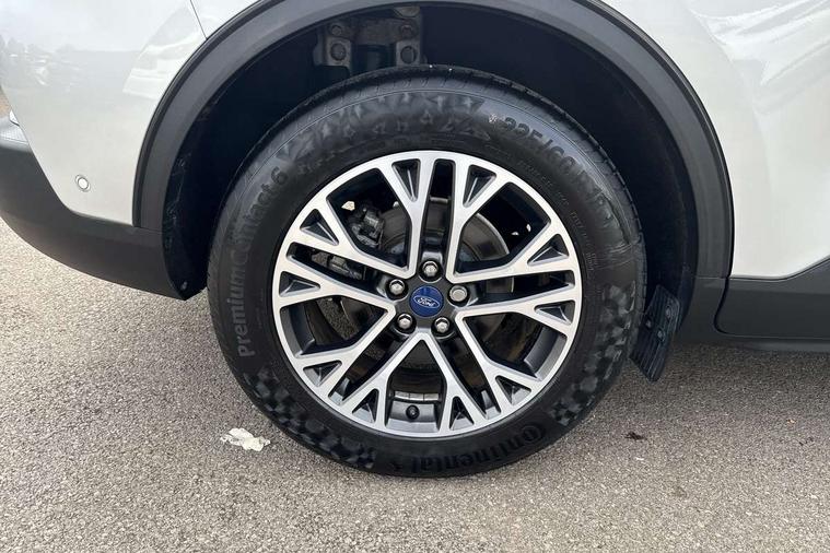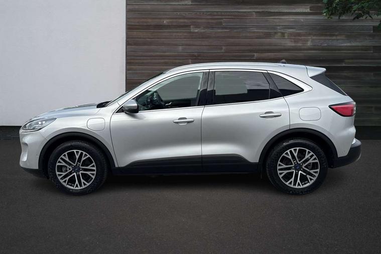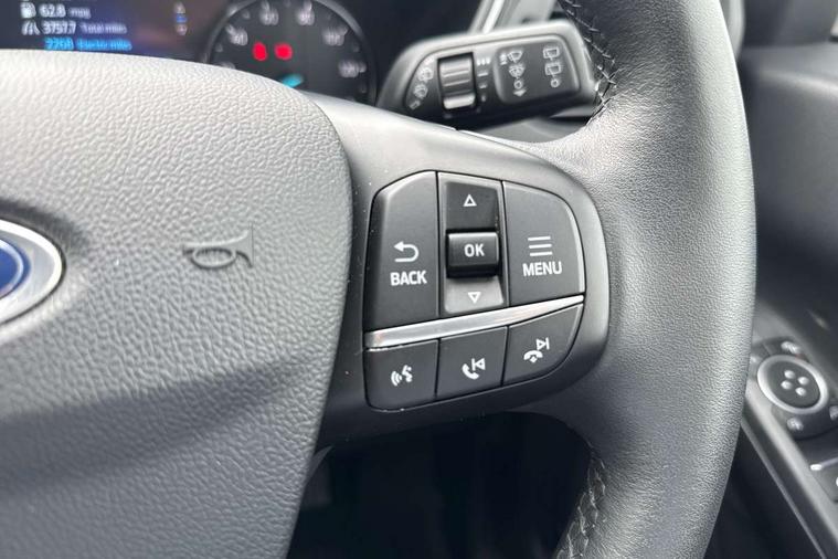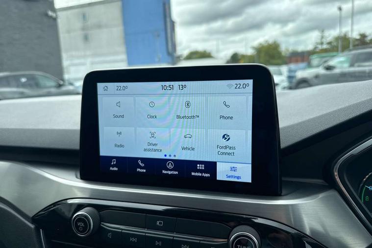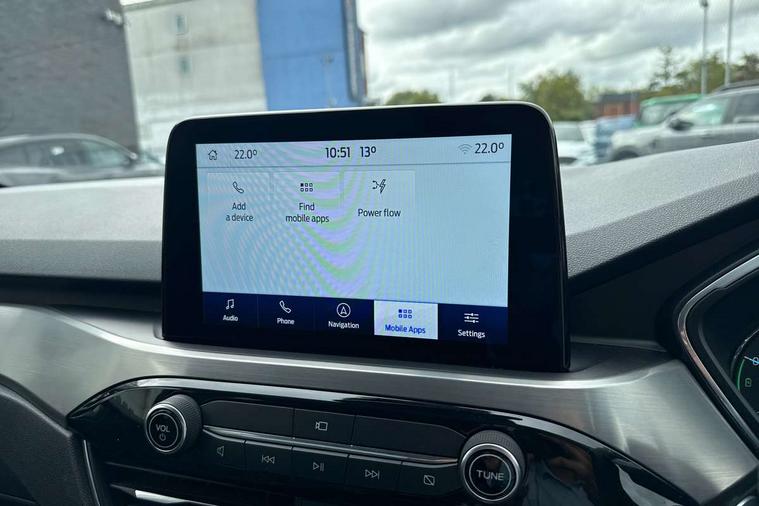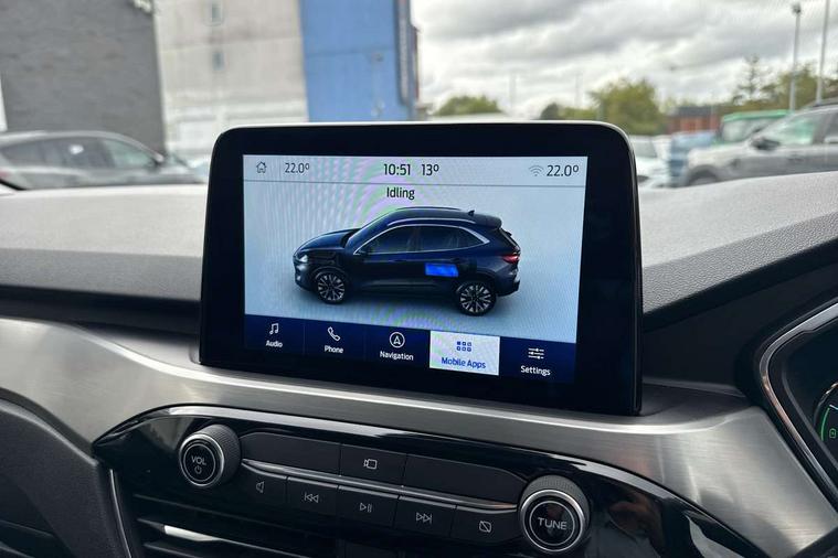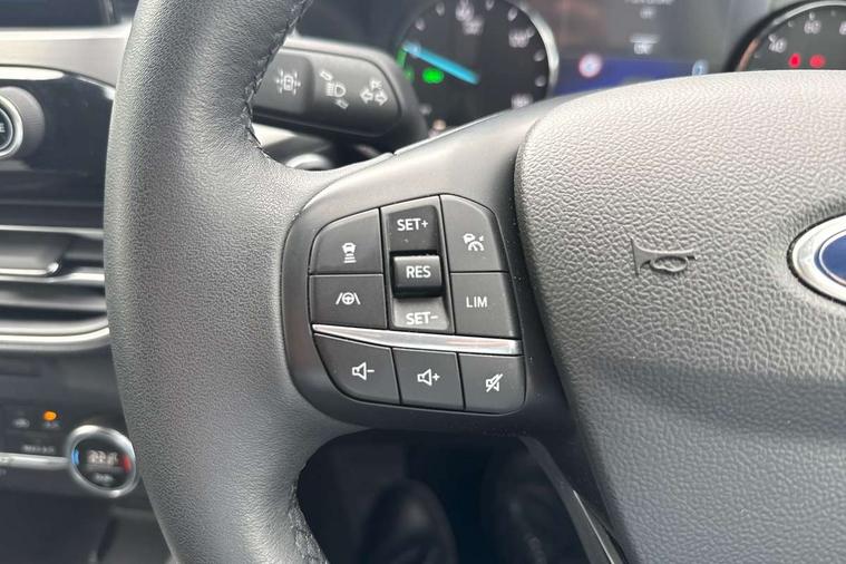 Adaptive cruise control (ACC) with traffic sign recognition, BLIS (Blind spot information system), Driver impairment monitor, Eco coaching, Enhanced parking assist system, Ford easy fuel, Front and rear parking sensors, Front and rear view camera, Intelligent speed assist, Lane keeping aid with lane departure warning, Mobile phone wireless charging pad, Power assist steering, Selectable drive modes, SYNC 3 with navigation, DAB audio, 3-Pin Home charge cable (230V/16A Domestic socket), Auto dimming rear view mirror, Auto headlamps with high and low beam, Auto wipers, Door edge guards, Front LED fog lamps, Front scuff plates, Full LED headlamps, Headlamp washer jets, LED daytime running lights, LED rear lights, Power folding heated door mirrors with puddle lights, Power front/rear windows with global close, Privacy glass, Quickclear heated windscreen, Rear spoiler, Silver roof rails, Twin exhausts, 230V power convertor in second row, 2nd row sliding seats, 4 way manually adjustable passenger seat with height, reach, tilt, backrest and headrest, Ambient lighting, Centre console with electronic parking brake, Dual electronic automatic temperature control, Front and rear floor mats, Front and rear head restraints, Leather steering wheel and gear knob, Salerno partial leather upholstery, Sports seats, B&O with small instrument cluster pack - Kuga PHEV, 3x3 point rear seatbelts, Airbags - front driver/passenger, front and rear curtain, Drivers knee airbag, Electronic stability control (ESC) and ABS, Ford MyKey Gen 2 safety system, Hill launch assist, Post collision braking, Powered child proof rear door locks with global closing, Pre collision assist with autonomous emergency braking, Tyre pressure monitoring system, Engine immobiliser, Keyless entry, Keyless start with 'Ford Power' starter button, Locking wheel nuts, Remote powered central double locking doors, Thatcham category 1 alarm,