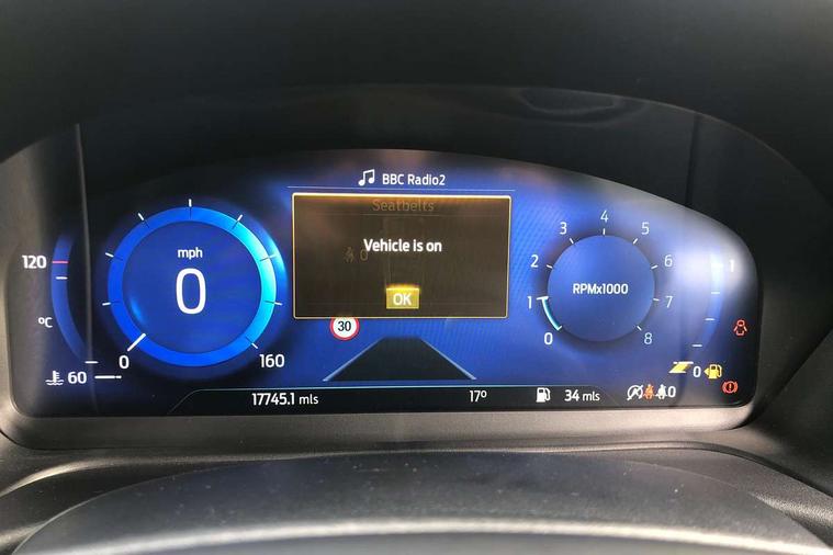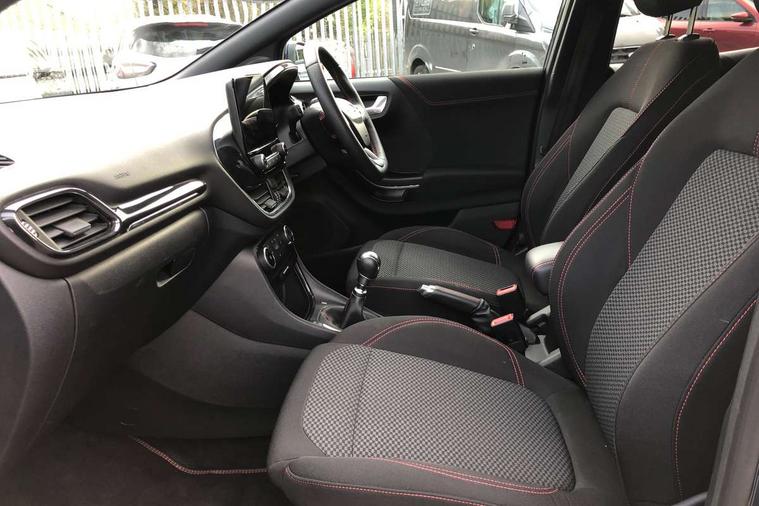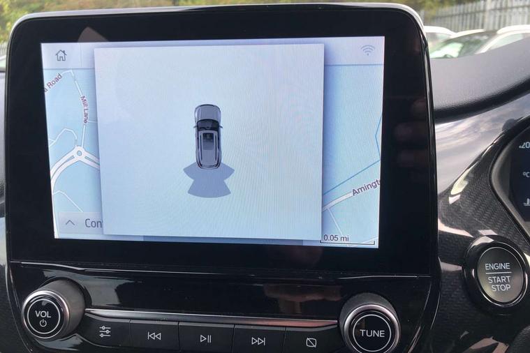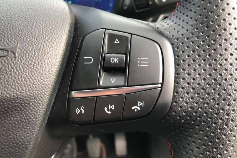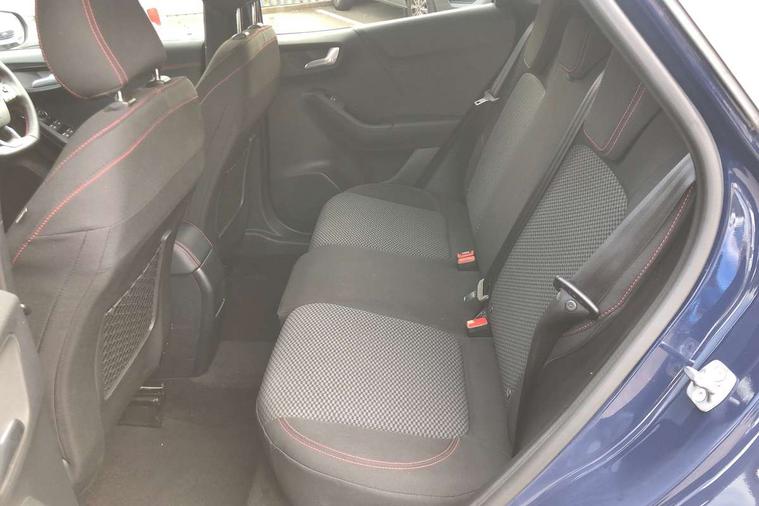 Driver impairment monitor, Emergency call service, Ford easy fuel, Full digital 12.3" instrument cluster, Lane keeping aid with lane departure warning, Power assist steering, Power start button, Rear parking sensor, Selectable drive modes(Normal, sport, Eco, trail, slippery), Speed sign recognition, Sport suspension, Automatic headlights with auto high beam, Automatic rain sensing wipers, LED rear lamps, Power foldable heated door mirrors with puddle lamps, Projector headlamps with LED day time running lights and front fog lamps, Quickclear heated windscreen, Rear side wing doors, Rear wiper, ST-Line body styling kit with unique grille and large body colour rear spoiler, Third brake light, 3 seat bench in 2nd row, Centre console with armrest and stowage, Ford megabox extended bootspace, Front and rear head restraints, Front floor mats, Manual 2 way passenger seat adjustment, Manual 4 way driver seat adjust with lumbar adjustment, Single front passenger seat, ST- Line cloth trim with red stitching, ST-Line flat bottomed sensico leather steering wheel with leather handbrake and aluminium gear knob, Ford SYNC 3 navigation pack - Puma, 3 rear seatbelts, Child safety lock, Electronic stability control (ESC) and hill start assist, Pedestrian/cyclist detection & post-collision braking, Pre collision assist system, Tyre pressure monitoring system (TPMS), Thatcham alarm,