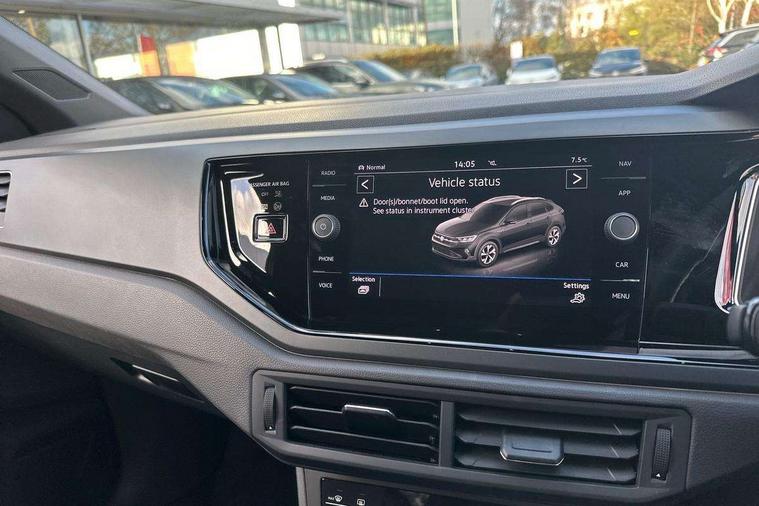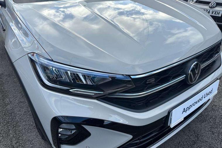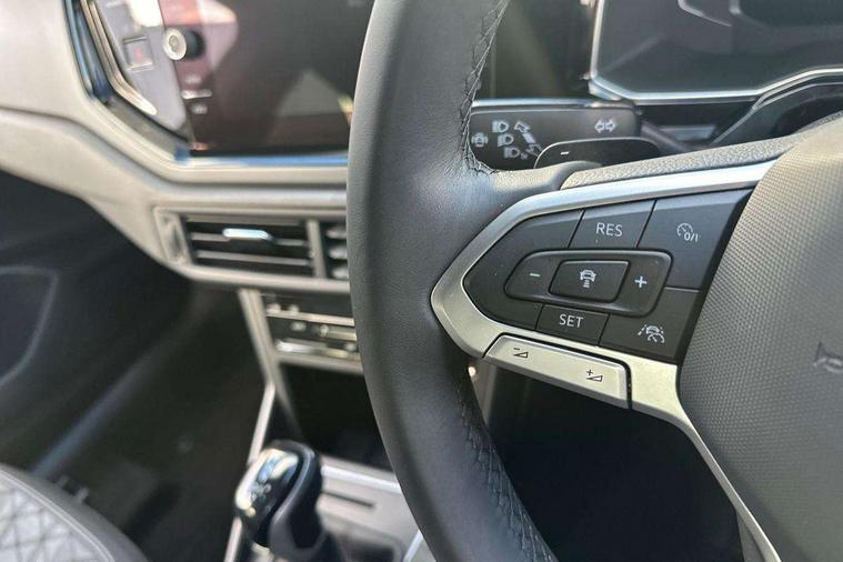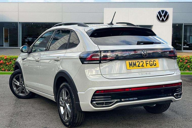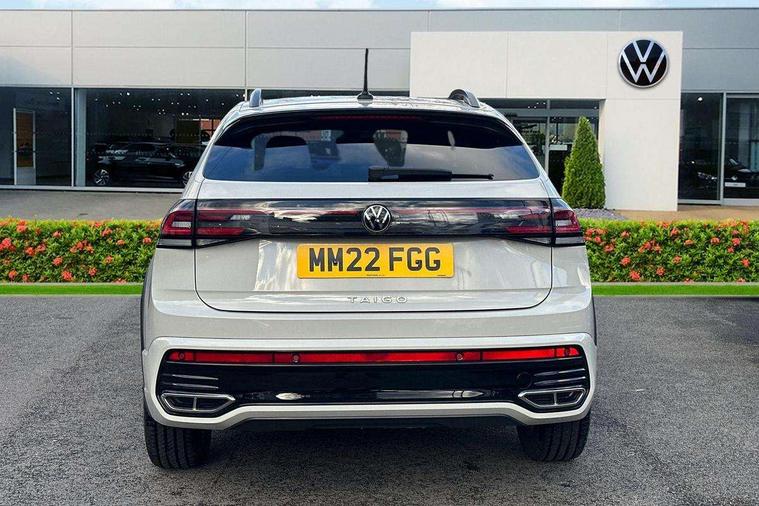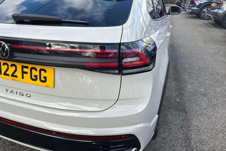 Adaptive cruise control, App-Connect including App-Connect Wireless, Digital cockpit pro - 10.25" high resolution TFT dash display screen with customizable menus and information, Driver alert system, Driving profile selection, e-Call (emergency call), Power Steering, Travel assist including emergency assist, Washer fluid level indicator, Wireless Charging including Bluetooth, Start-stop system with battery regeneration (recuperation - energy recovery during braking), XDS electronic differential lock for improved traction and handling, Digital radio reception (DAB+), Diversity antenna for FM reception, WeConnect plus, Ambient lighting with logo projection, Aspherical driver's exterior mirror, Auto headlights, Body coloured bumpers, Body coloured exterior mirror housings and door handles, Bumpers in R-Line style, Electric windows, External USB type C socket and charging sockets, Front fog lamps with cornering function, Front scuff plates with R-Line logo, Headlight range control, LED headlamps, LED rear combination lamp, LED third brake light, Left convex exterior mirror, Power folding adjustable/heated exterior mirrors and front passenger exterior mirror lowering function, Rear fog light on one side, reversing light on both sides, Rear side wing doors, Rear wash/wipe with intermittent wipe setting, 12V socket in centre console, 2 front reading lights, 3 rear head restraints, 3 seat bench in 2nd row, Air care climatronic air conditoning system with active combination filter and 2-zone temperature control, Black carpets, Black roof lining, Child seat anchor for child seat system i-Size, 2x top tether and child seat anchor in front on front passenger side, Chrome bezel for instrument cluster, vents, door handles + gear shift, Driver and front passenger seat height adjustment, Front + rear carpet mats, Front centre armrest, Front footwell illumination, Front sports comfort seats, Height and reach adjustable steering wheel, Interior ambient lighting and surround lighting, Karoso artvelours cloth upholstery, Leather trimmed gear knob, Leather wrapped multifunction steering wheel, Luggage compartment floor, Luggage compartment light, Lumbar support for driver's and front passengers seat, Seat covers in grey + titanium black, Single front passenger seat, Split folding backrest with centre armrest and unsplit rear seat bench, Stainless steel pedals, Storage compartment under front seats, Sun visors with illuminated vanity mirrors, Chrome Package - Taigo, Drivers assistance pack - Taigo, Light and Sight pack including High beam assist - Taigo, 2 x 3-point seatbelts/outer rear seats with ECE label, 3-point seat belts in front with pretensioner and height adjustment, 3-point seatbelt for centre rear seat, Driver and front passenger airbags with front passenger airbag de-activation, front side and curtain airbags, Driver and front passenger safety-optimised head restraints, Electronic stability control, Extended and predictive pedestrian/ cyclist protection, Front and rear disc brakes, Front curtain and side airbags with center airbag, Hill start assist, Manual rear child locks, Single tone horn, Tyre pressure loss indicator, Anti-theft alarm system with interior monitoring, backup horn, and towing protection, Anti-theft wheel bolts, Grey anodised matte decorative inserts in dash and front door panels, Low rolling resistance tyres,