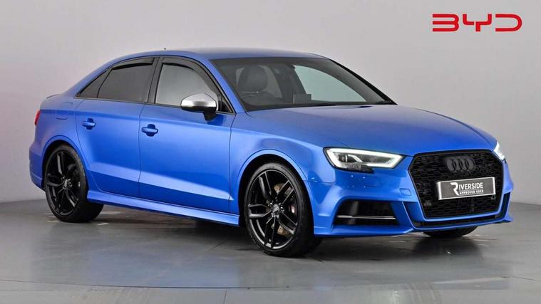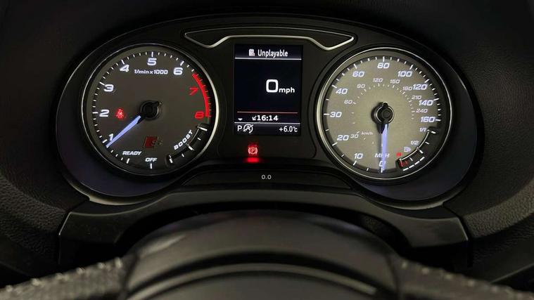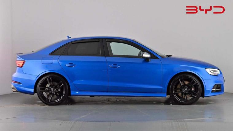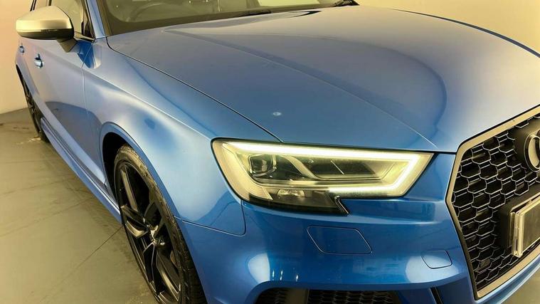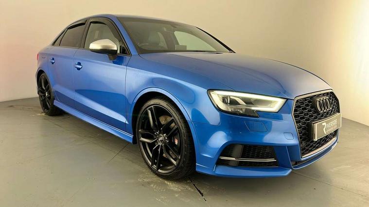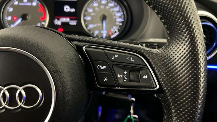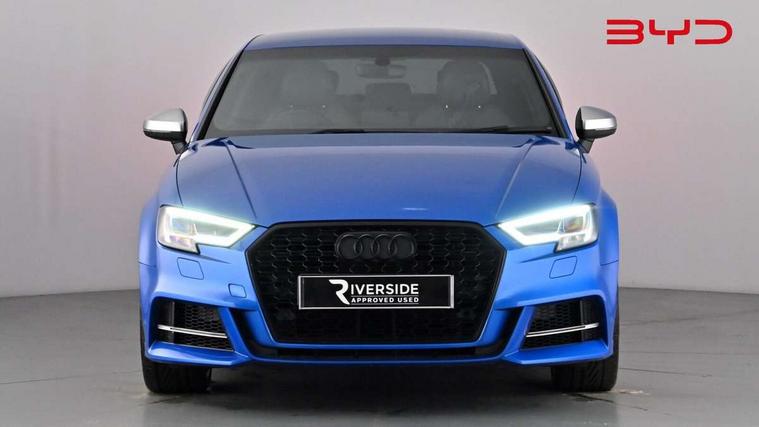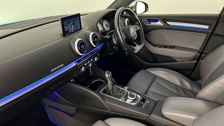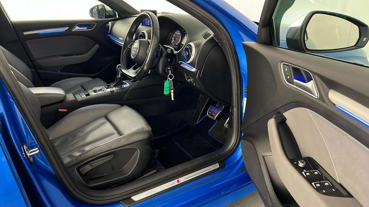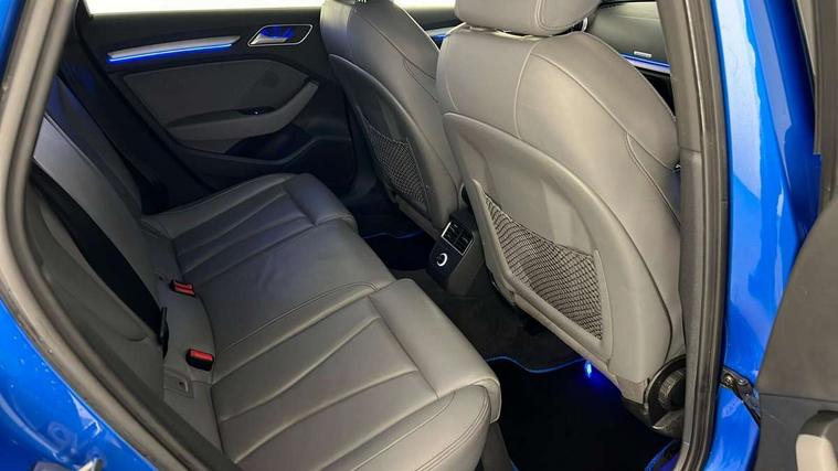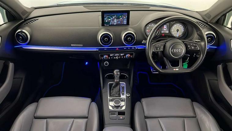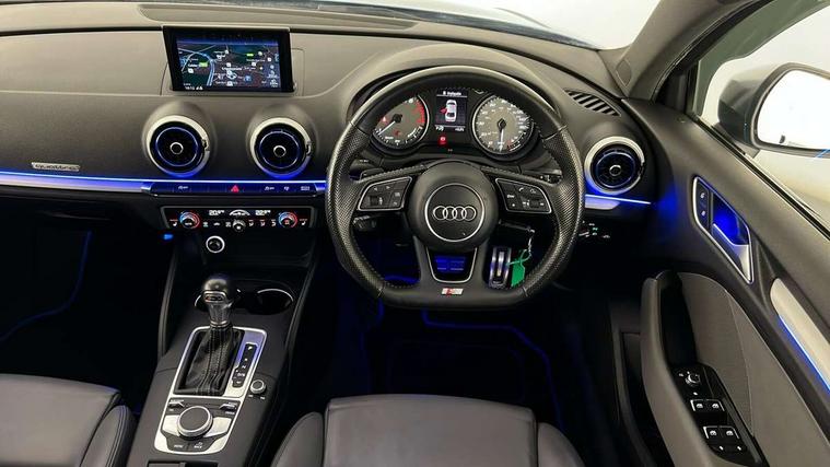 Audi connect, Audi smartphone interface, Bluetooth interface, Colour driver's information system display, Progressive power assisted steering, Service interval indicator, Voice control system, Audi magnetic ride, S sports suspension, 2 USB ports, Audi music interface, Aux-in socket, DAB Digital radio, Aluminium door mirror housings, Aluminium side window trim, Automatic lights and wipers, Body colour bumpers, Body colour roof spoiler, Electric operated/heated door mirrors, Front and rear electric windows, Headlight washers, Heated rear window, Heated windscreen washer jets, LED daytime running lights, Platinum grey radiator grille, S body styling, Twin oval exhaust tailpipes with chrome finish, 3 adjustable rear headrests, 3 spoke flat bottom multi-function leather steering wheel including paddle shift, 4 lashing points to secure luggage, Adjustable front armrest, Driver/passenger sunvisors, Dual zone electronic climate control, Front and rear interior lights with delay, Front/rear floor mats, Heated front seats, Height/depth adjustable steering column, Illuminated door sills, Illuminated glovebox, ISOFIX child seat preparation+airbag deactivation, Jack and tool kit, Stainless steel pedals, Storage compartment in centre console, Storage compartments in doors, Storage under driver's seat, LED interior light pack - A3/RS3, Light and rain sensor pack - A3 Saloon, Storage and luggage pack - A3/RS3, 3 point seatbelts on all seats, ABS/EBD, ASR, Curtain airbags, Driver and passenger side airbags, Driver/Front Passenger airbags, Drivers knee airbag, EDL, Electromechanical parking brake, ESC - Electronic Stability Control + traction control, Front passenger airbag deactivation, Seatbelt warning, Warning triangle and first aid kit, Anti theft alarm, Anti-theft wheel bolts, Immobiliser, Remote control central locking, Aluminium air vent surrounds, Aluminium trim elements,