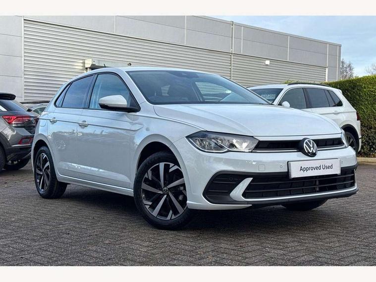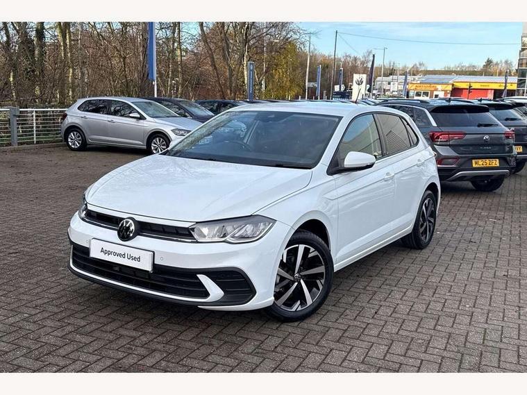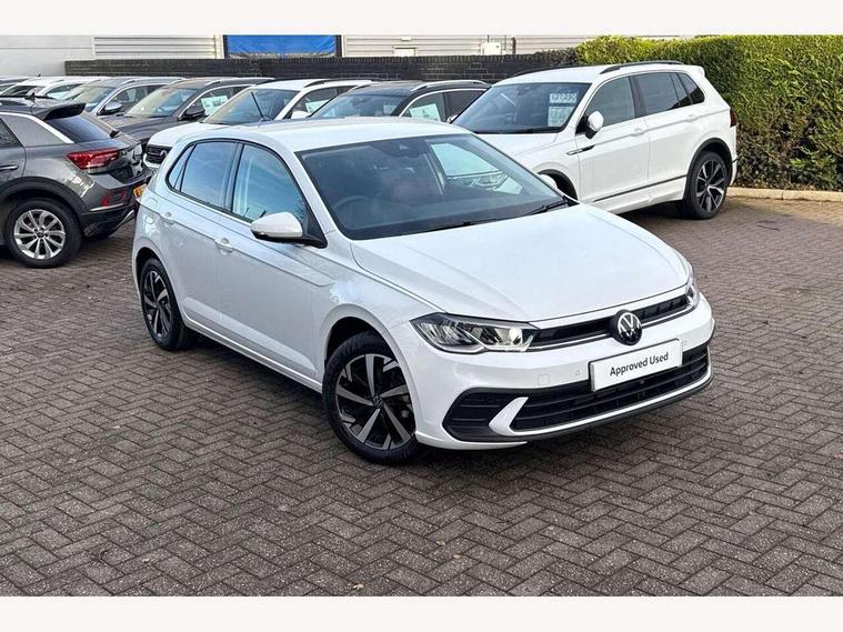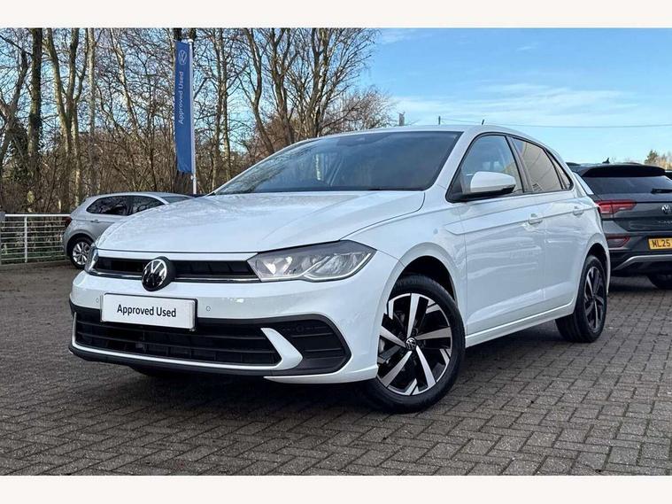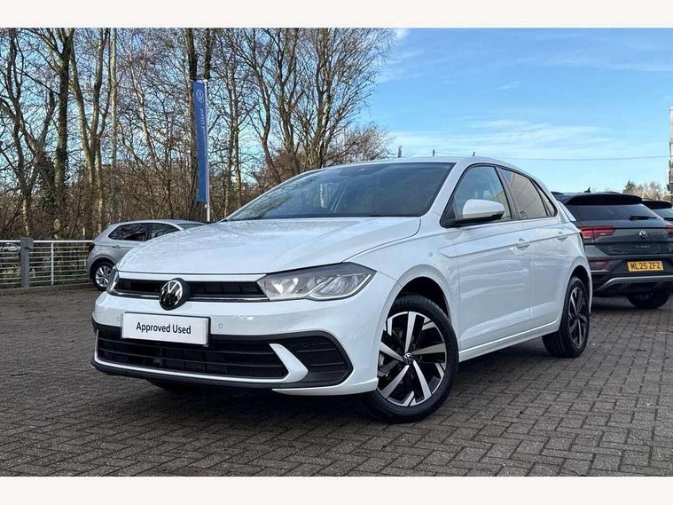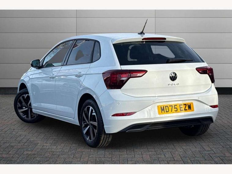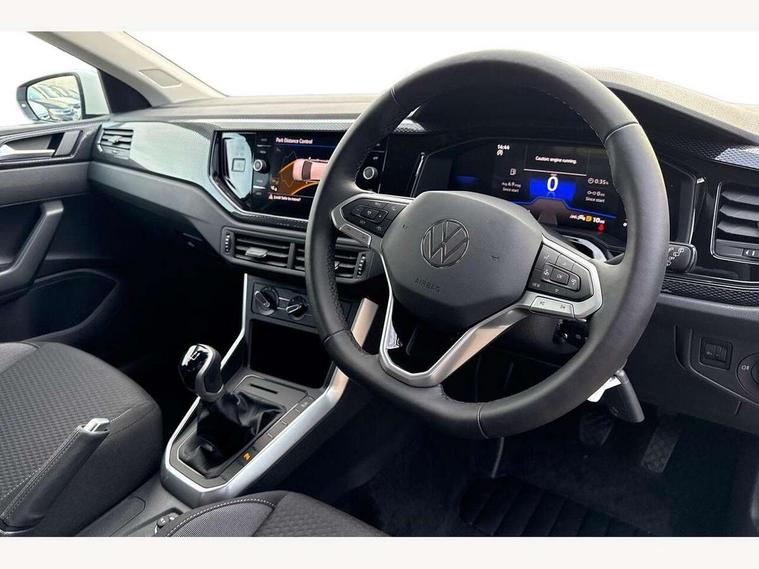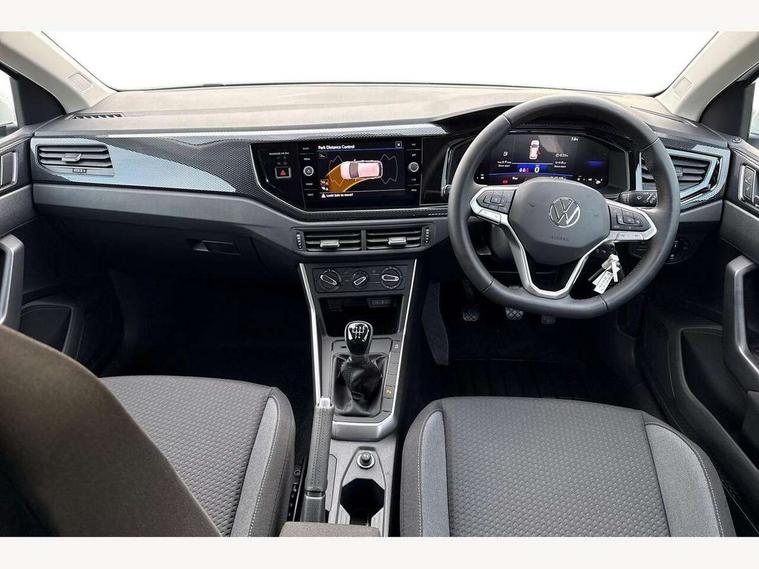 Adaptive cruise control without follow-to-stop and speed limiter, Advanced driver attention and drowsiness monitor, Bluetooth mobile phone interface, Dynamic road sign display, Emergency call service, Mobile phone preparation with inductive charging function, Multifunction front facing camera for distance control, Power assisted speed sensitive steering, Preparation for navigation system with media and internet package, Preparation for We connect and We connect plus, Rear view camera, Speedo and rev counter, electronic odometer, trip, service interval display and exterior temperature gauge, Standard rear axle, Travel Assist - Lane keeping system and traffic jam assist, Travel assist including emergency assist, Trip computer, Warning signal and warning light for front and rear seatbelts not fastened, Washer fluid level indicator, Wireless app connect, Front wheel drive, Rear shock absorpion, Start-stop system with battery regeneration (recuperation - energy recovery during braking), DAB Digital radio, Diversity antenna for FM reception, Automatic dimming interior rear view mirror, Automatic headlight control with LED separate daytime running lights with coming/leaving home function, Body colour bumpers with chrome inserts, Body colour door handles, Body colour door mirrors, Electric front windows, Engine badge deletion, Headlight range adjustment, Heat insulating and laminated safety glass windshield, LED Headlights, LED rear combination lamps, Power folding adjustable/heated exterior mirrors and front passenger exterior mirror lowering function, Rain sensor, Rear electric windows, Rear fog light, Rear side wing doors, Rear tinted glass from B-pillar backwards approx 65% tinted, Rear windscreen washer and wiper with interval delay, Third brake light, 12V power socket in centre console, 2 front and 2 rear reading lights with switch off delay and dimmer, 2 USB-C ports in the front, 2 USB-C charging sockets on the center console in the rear, 3 rear head restraints, 60/40 split folding rear seat and rear seat bench not split, Carpet mats, front and rear, Ceramique roof lining, Chrome plated radiator grille inserts, air vent surrounds and light switch surrounds, Door and side trim panel, Driver and front passenger seat height adjustment, Driver/passenger sunvisors with illuminated vanity mirrors, Front centre armrest, Front seat backrest storage pockets, Front standard seats, Handbrake lever handle in leather, Hartley/Thomas cloth upholstery, Headliner in recycled material, Isofix child seat preparation easy-fit (for two outer rear seats, and front passenger seat) compatible with I-size, Leather trimmed gear knob, Luggage compartment cover, Luggage compartment lighting, Removable luggage compartment floor, Single front passenger seat, Standard climatic zones, Standard pedal cluster, Three spoke leather wrapped multifunction steering wheel, Light and vision pack - Polo, 3 point height adj front seatbelts + pretensioners, 3 point seat belt for centre rear seat, 3 point seatbelts, outer rear with ECE lable, ABS, Driver and front passenger airbag with front passenger airbag deactivation, Drivers and front passengers safety optimised head restraints, ESC (Electronic stability control) + EDL (Electronic Differntial lock) and ASR (Traction control), Extended and predictive pedestrian/ cyclist protection, Front assist with autonomous emergency braking (for Adaptive Cruise Control ACC up to 130 mph), Front curtain and side airbags with center airbag, Front disc brakes, Hill hold control, Manual child lock in rear doors, Rear drum brakes, Single tone horn, Tyre pressure loss indicator, Alarm with interior protection, Anti-theft alarm system with interior monitoring, backup horn, and towing protection, Anti-theft wheel bolts, Electronic engine immobiliser, Lava stone black gloss/matt decorative inserts in dash and front door panels, 16" Torsby alloy wheels, Low rolling resistance tyres,