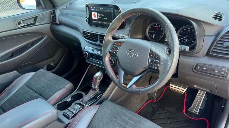 8" touchscreen satellite navigation including traffic messaging channel, map care and live services, Apple car play/Android Auto, Bluetooth system, Cruise control + speed limiter, Digital clock, Drive mode selector, Driver alert system, Emergency stop signalling system, Front and rear parking sensors, Lane keep assist, PAS, Rev counter, Reversing camera, Roll over sensor, Speed limit information, Tailgate open warning light, Trip computer, Trip odometer, Water temperature gauge, Windscreen washer fluid sensor and warning indicator, 2 front and 2 rear speakers with 2 tweeters, DAB Digital radio, Steering wheel mounted audio/phone controls, USB and aux connection in front, Adjustable intermittent front windscreen wipers with aero wiper blade, Automatic defog system, Automatic headlights with dusk sensor, Automatic windscreen wipers with rain sensor, Black door mirrors with integrated indicators, Black outside mirror covers, Black roof rails, Body colour bumpers, Body colour door handles, Electric adjust/heated/folding mirrors, Electric front/rear windows with drivers one touch/anti-trap, Follow me home headlights, Front fog lights, Grey bodyside mouldings, Halogen projector headlights, Integrated front spoiler, Integrated rear spoiler, LED brake lights, LED daytime running lights, LED rear lights, N Line Badging, N Line Exclusive Front & Rear body colour Bumpers, N Line grille, Positioning Lights - LED, Privacy glass - Rear windows and tailgate, Rear skid plate - Grey, Rear wash/wipe with intermittent wipe setting, Static cornering light, Tinted glass with windscreen shade band, Trailer stability assist, Twin exhaust pipes, 12V power outlets in front console and luggage compartment, 60/40 split folding rear seat, Adjustable head restraints, Chrome interior door handles, Cupholders in centre and rear console, Door courtesy lights, Driver and passenger front seat pockets, Driver and passenger sunvisors with illuminated LED vanity mirrors, Driver's seat electric lumbar support, Driver's seat height adjustment, Dual zone climate control, Front and rear door pockets, Front armrest with storage box, Front door pocket bottle holders, Heated front seats, Height/reach adjustable steering column, Illuminated/air conditioned glove compartment, ISOFIX child seat anchorage points attached on outer rear seats, Logo on seat backrests, Luggage area underfloor compartment, Luggage compartment lighting, Luggage cover, Luggage hooks, Luggage net, Manual height adjustable front passenger seat, Map and reading lights, N Line branded gear stick, N Line branded leather steering wheel, N Line Leather/suede upholstery, Reclining rear seats, Red stitching on central pad, Red stitching on steering wheel, Retractable load cover, Sunglasses holder, 3x3 point rear seatbelts, Active bonnet, Anti-lock brake system (ABS), Autonomous emergency braking, Brake assist function, Childproof rear door locks, Downhill brake control, Driver and passenger airbags, Drivers knee airbag, Electronic parking brake, ESP, Front passenger airbag deactivation switch, Front seatbelt pretensioners, Front side airbags + full size curtain airbags, Height adjustable front seatbelts, Hill start assist control (HAC), Seatbelt warning, Traction control, Tyre pressure monitoring system with individual tyre pressure display - TPMS, Vehicle stability management, Deadlocks, Immobiliser, Locking wheel nuts, Perimeter alarm, Remote control central locking, Smart key with keyless entry and engine start/stop button, Speed sensitive auto door locking, 19" Alloy wheels, Temporary space saver steel spare wheel,