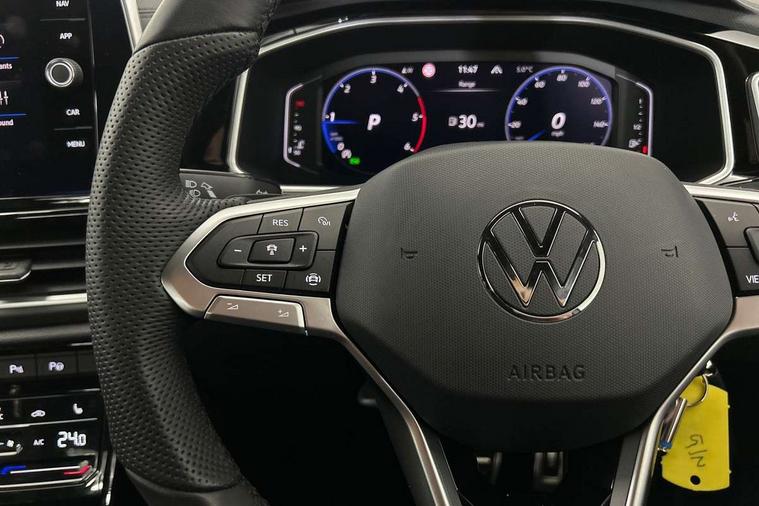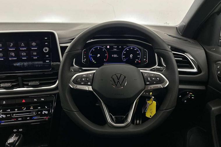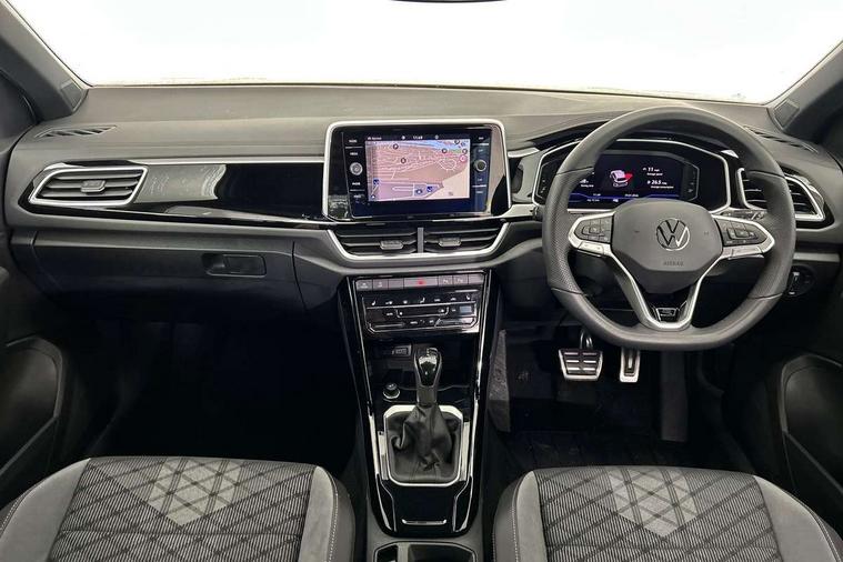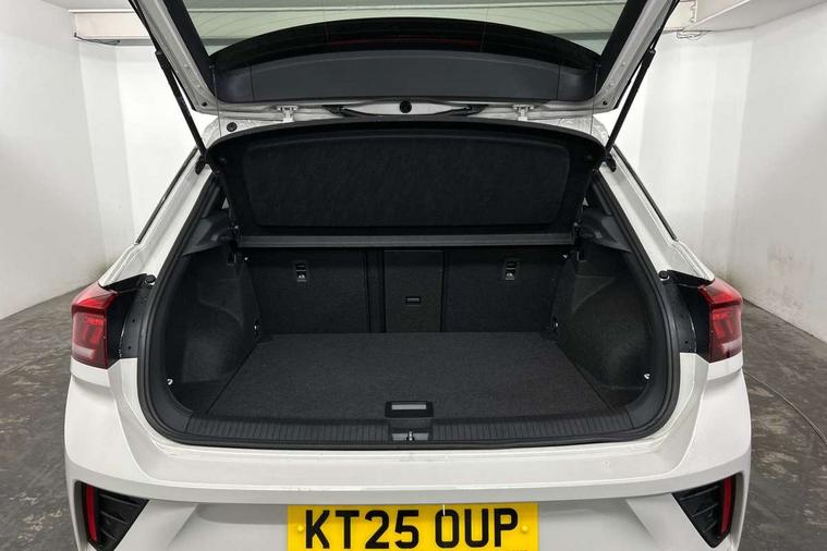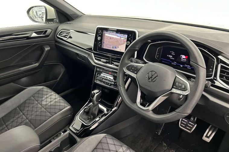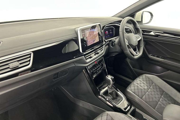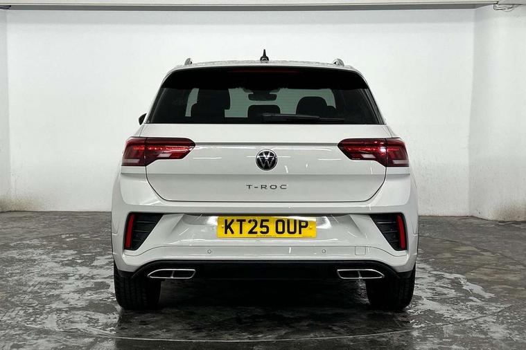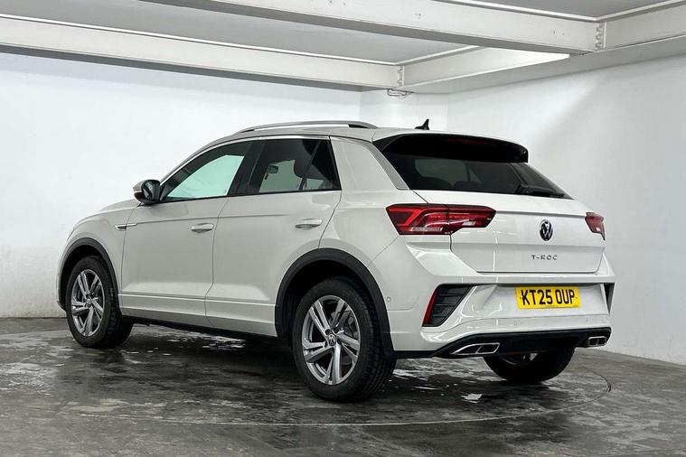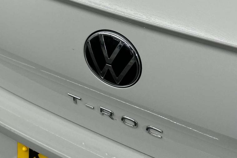 10.25" Digital cockpit pro, Advanced driver attention and drowsiness monitor, Dynamic road sign display, Emergency call service, Lane keeping system Lane Assist, Mobile phone interface, Modified key software - reduce switch off time for key status change to Long no motion, Online services, Park assist including front and rear parking sensors, Service interval indicator, Tailgate/trunk lid release from outside, Think blue trainer driver tips and journey analysis, Warning sound and light for front seatbelts unfastened, Wireless app connect, Battery regeneration during braking, Start/stop function with battery regeneration, DAB Digital radio, Diversity antenna for FM reception, Front and rear 6 speakers, Music playback - MP3, WMA and AAC files, Premium USB cable in choice of either Apple or Android smartphone compatibility, SD card slot, Simultaneous pairing of 2 compatible mobile devices, Title and cover art display, We Connect and We Connect Plus functionality, Auto dimming interior rear view mirror, Automatic hazard lights activation under emergency braking, Automatic headlight control with LED separate daytime running lights with coming/leaving home function, Body coloured exterior mirror housings and door handles, Electrically adjustable and heated door mirrors, Extended roof spoiler, Exterior mirrors aspherical on driver side, convex on front passenger side, External USB type C socket and charging sockets, Front windscreen wiper with intermittent wipe and 4 position delay, Heated rear window, LED 3rd brake light, LED rear combination lamps, LED rear number plate lights, Power windows with comfort operation and circuit breaker, Privacy glass for rear side windows and rear window, R-Line design body coloured bumpers, Rain sensor, Rear exhaust tailpipe, Rear fog light on one side and reversing lights on both sides, Rear side wing doors, Rear wash/wipe with intermittent wipe setting, Remote electrically foldable door mirrors, puddle lights and reverse activated passenger's door mirror, 12V power socket in centre console, 3 rear head restraints, 3 seat bench in 2nd row, 4 load lashing points in luggage compartment, Air care climatronic air conditoning system with active combination filter and 2-zone temperature control, Black roof lining, Chrome plated decorative trims, Chrome plated radiator grille inserts, air vent surrounds and light switch surrounds, Door and side trim panel with leatherette insert, Front + rear carpet mats, Front centre armrest, Front cupholders x 2, Front footwell illumination, Front reading light, Front scuff plates with R Line logo, Front seat back storage pockets, Glove compartment door with light, Instrument lighting, white adjustable panel illumination, Interior ambient lighting and surround lighting, Interior light delay, Isofix child seat preparation, Leather gearshift handle, Load-through provision with cup holder when folded down ('Unsplit rear seat bench, split folding backrest, with centre armrest), Luggage compartment lighting, Single front passenger seat, Stainless steel pedals, Storage compartment in left and right luggage area, Storage compartment in rear doors, Storage compartments in driver and front passenger doors, Sunvisors with illuminated vanity mirrors, Variable boot floor, height adjustable and removable, Driver assistance pack without proactive passenger protection - T-Roc, 3 point height adj front seatbelts + pretensioners, 3 point seatbelts in outer rear with ECE label, ABS, Child locks on rear doors, City emergency braking and pedestrian monitoring, Driver and front passenger airbag with front passenger airbag deactivation, Driver and front passenger safety-optimised head restraints, Drivers seatbelt reminder, Electronic parking brake, Electronic Stability Control (ESC) inc EDL (Electronic Differential Lock) and ASR (Traction Control), Front and rear passengers curtain airbag system including front side airbags, Hill start assist, Predictive pedestrian protection, Rear disc brakes, Two tone horn, Tyre pressure loss indicator, Volkswagen roadside assistance, Piano black decorative inserts in dashboard and front door trim panels, Trims for alloy wheels,