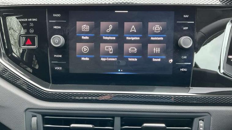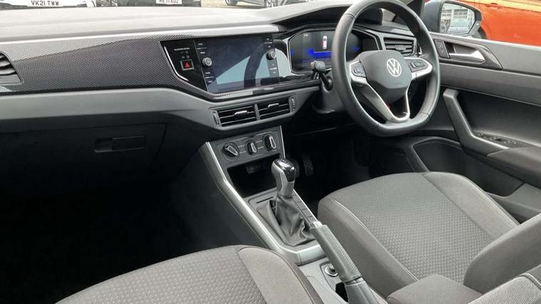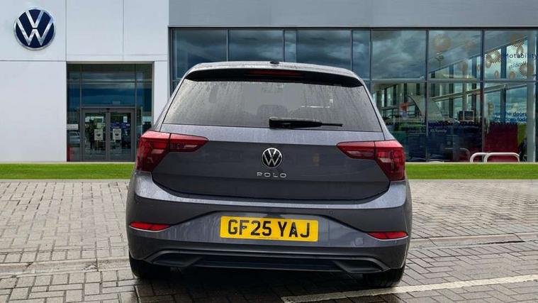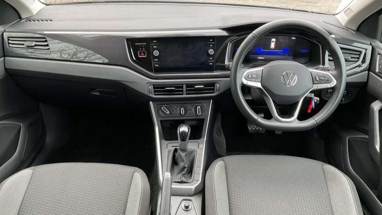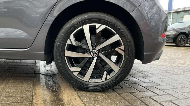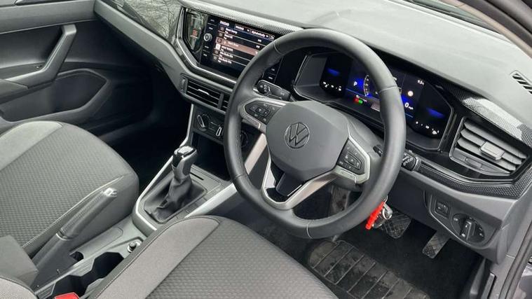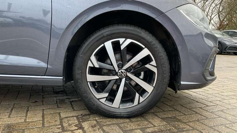 Advanced driver attention and drowsiness monitor, Bluetooth mobile phone interface, Dynamic road sign display, Emergency call service, Multifunction front facing camera for distance control, Park distance control, Power assisted speed sensitive steering, Predictive adaptive cruise control without follow-to-stop and speed limiter, Preparation for navigation system with media and internet package, Preparation for We connect and We connect plus, Rear view camera, Speedo and rev counter, electronic odometer, trip, service interval display and exterior temperature gauge, Standard rear axle, Travel Assist - Lane keeping system and traffic jam assist, Travel assist including emergency assist, Trip computer, Warning signal and warning light for front and rear seatbelts not fastened, Washer fluid level indicator, Wireless app connect, Front wheel drive, Rear shock absorpion, Start-stop system with battery regeneration (recuperation - energy recovery during braking), DAB Digital radio, Diversity antenna for FM reception, Front and rear 6 speakers, Automatic dimming interior rear view mirror, Automatic headlight control with LED separate daytime running lights with coming/leaving home function, Body colour bumpers with chrome inserts, Body colour door handles, Body colour door mirrors, Electric front windows, Engine badge deletion, Headlight range adjustment, Heat insulating and laminated safety glass windshield, LED Headlights, LED rear combination lamps, Power folding adjustable/heated exterior mirrors and front passenger exterior mirror lowering function, Rain sensor, Rear electric windows, Rear fog light, Rear side wing doors, Rear tinted glass from B-pillar backwards approx 65% tinted, Rear windscreen washer and wiper with interval delay, Third brake light, 12V power socket in centre console, 2 front and 2 rear reading lights with switch off delay and dimmer, 2 USB-C ports in the front, 2 USB-C charging sockets on the center console in the rear, 3 rear head restraints, 60/40 split folding rear seat and rear seat bench not split, Ceramique roof lining, Chrome plated radiator grille inserts, air vent surrounds and light switch surrounds, Door and side trim panel, Driver and front passenger seat height adjustment, Driver/passenger sunvisors with illuminated vanity mirrors, Front centre armrest, Front seat backrest storage pockets, Front standard seats, Handbrake lever handle in leather, Hartley/Thomas cloth upholstery, Headliner in recycled material, Isofix child seat preparation easy-fit (for two outer rear seats, and front passenger seat) compatible with I-size, Leather trimmed gear knob, Luggage compartment cover, Luggage compartment lighting, Removable luggage compartment floor, Single front passenger seat, Standard climatic zones, Standard pedal cluster, Three spoke leather wrapped multifunction steering wheel with shifting paddles, Light and vision pack - Polo, 3 point height adj front seatbelts + pretensioners, 3 point seat belt for centre rear seat, 3 point seatbelts, outer rear with ECE lable, ABS, Driver and front passenger airbag with front passenger airbag deactivation, Drivers and front passengers safety optimised head restraints, ESC (Electronic stability control) + EDL (Electronic Differntial lock) and ASR (Traction control), Extended and predictive pedestrian/ cyclist protection, Front assist with autonomous emergency braking (for Adaptive Cruise Control ACC up to 130 mph), Front curtain and side airbags with center airbag, Front disc brakes, Hill hold control, Manual child lock in rear doors, Rear drum brakes, Single tone horn, Tyre pressure loss indicator, Alarm with interior protection, Anti-theft alarm system with interior monitoring, backup horn, and towing protection, Anti-theft wheel bolts, Electronic engine immobiliser, Lava stone black gloss/matt decorative inserts in dash and front door panels, 16" Torsby alloy wheels, Low rolling resistance tyres,