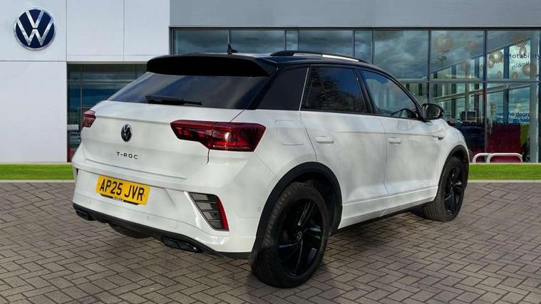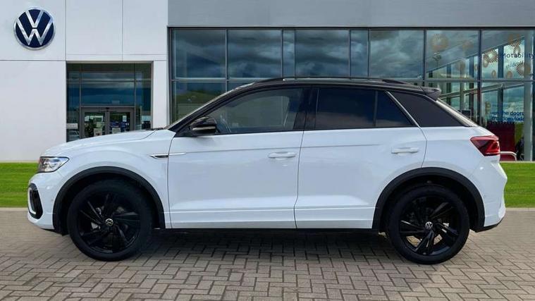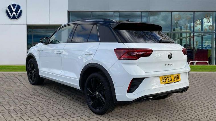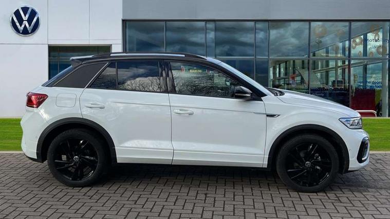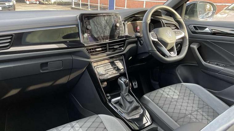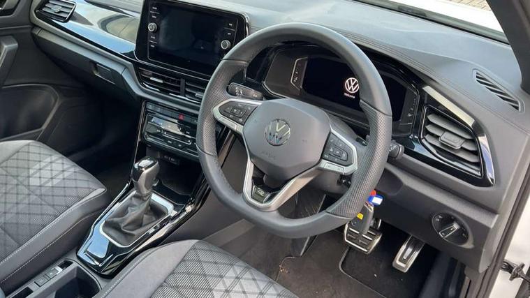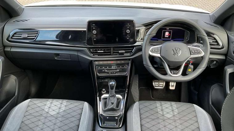 10.25" Digital cockpit pro, Advanced driver attention and drowsiness monitor, Emergency call service, Lane keeping system Lane Assist, Mobile phone interface, Modified key software - reduce switch off time for key status change to Long no motion, Online services, Park assist including front and rear parking sensors, Power assisted speed sensitive steering, Service interval indicator, Tailgate/trunk lid release from outside, Think blue trainer driver tips and journey analysis, Warning sound and light for front seatbelts unfastened, Wireless app connect, Battery regeneration during braking, Rear shock absorption chassis with increased ride height, Start/stop function with battery regeneration, DAB Digital radio, Diversity antenna for FM reception, Front and rear 6 speakers, Music playback - MP3, WMA and AAC files, Premium USB cable in choice of either Apple or Android smartphone compatibility, SD card slot, Simultaneous pairing of 2 compatible mobile devices, Title and cover art display, We Connect and We Connect Plus functionality, Auto dimming interior rear view mirror, Automatic hazard lights activation under emergency braking, Automatic headlight control with LED separate daytime running lights with coming/leaving home function, Dynamic cornering light, Electrically adjustable and heated door mirrors, Extended roof spoiler, Exterior mirrors aspherical on driver side, convex on front passenger side, External USB type C socket and charging sockets, Front windscreen wiper with intermittent wipe and 4 position delay, Heated rear window, Illuminated front grille, IQ LED matrix headlights, LED 3rd brake light, LED rear number plate lights, LED rear tail lights with dynamic turn signal, Light mode for poor weather, rain, fog or snow, Power windows with comfort operation and circuit breaker, R-Line design body coloured bumpers, Rain sensor, Rear exhaust tailpipe, Rear fog light on one side and reversing lights on both sides, Rear side wing doors, Rear wash/wipe with intermittent wipe setting, Remote electrically foldable door mirrors, puddle lights and reverse activated passenger's door mirror, 12V power socket in centre console, 3 rear head restraints, 3 seat bench in 2nd row, 4 load lashing points in luggage compartment, Air care climatronic air conditoning system with active combination filter and 2-zone temperature control, Artvelours cloth upholstery, Black roof lining, Chrome plated radiator grille inserts, air vent surrounds and light switch surrounds, Door and side trim panel with leatherette insert, Drawer under drivers seat, Driver seat height adjust, Driver's seat lumbar support, Front + rear carpet mats, Front centre armrest, Front comfort sports seats, Front cupholders x 2, Front footwell illumination, Front reading light, Front scuff plates with R Line logo, Front seat back storage pockets, Glove compartment door with light, Instrument lighting, white adjustable panel illumination, Interior ambient lighting and surround lighting, Interior light delay, Isofix child seat preparation, Leather gearshift handle, Leather wrapped multifunction steering wheel with paddle shift, Load-through provision with cup holder when folded down ('Unsplit rear seat bench, split folding backrest, with centre armrest), Luggage compartment lighting, Non-folding front passenger seat backrest, Passenger seat height adjuster, Passenger seat lumbar support, Single front passenger seat, Stainless steel pedals, Storage compartment in left and right luggage area, Storage compartment in rear doors, Storage compartments in driver and front passenger doors, Sunvisors with illuminated vanity mirrors, Variable boot floor, height adjustable and removable, Winter pack without heated windscreen washer jets - T-Roc, 3 point height adj front seatbelts + pretensioners, 3 point seatbelts in outer rear with ECE label, ABS, Child locks on rear doors, City emergency braking and pedestrian monitoring, Driver and front passenger airbag with front passenger airbag deactivation, Driver and front passenger safety-optimised head restraints, Drivers seatbelt reminder, Electronic parking brake, Electronic Stability Control (ESC) inc EDL (Electronic Differential Lock) and ASR (Traction Control), Front and rear passengers curtain airbag system including front side airbags, Front disc brakes, Hill start assist, Predictive pedestrian protection, Rear disc brakes, Two tone horn, Tyre pressure loss indicator, Volkswagen roadside assistance, Tool kit, Trims for alloy wheels, Tyre mobility kit including compressor and sealing foam,