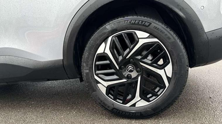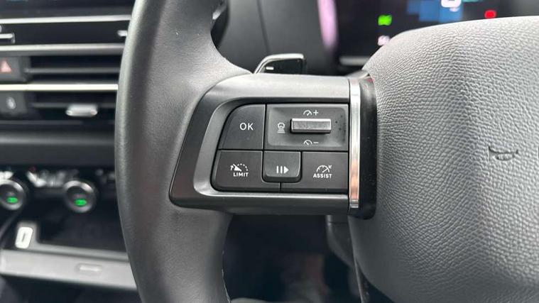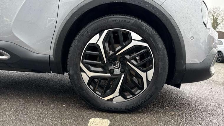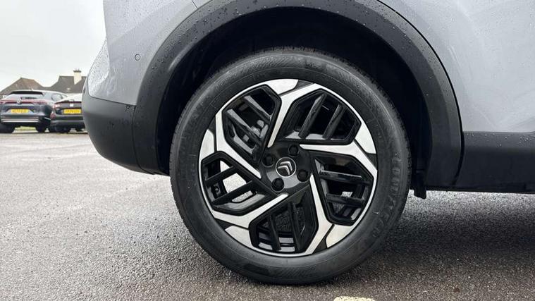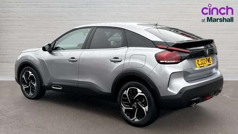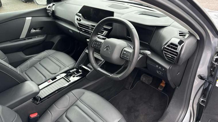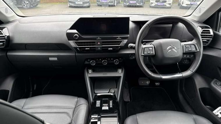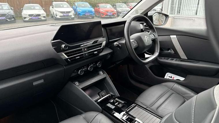 10" high resolution touchscreen user interface, controlling media, connectivity and vehicle settings, 5.5 inch backlit full TFT driver's instrument cluster with LED ambient lighting, Active blind spot detection, Apple car play and Android auto, Citroen connect box emergency and assistance system, Citroen connect nav with real time traffic and speedcam, Driver's head-up display, Electronic Power Steering (EPS), In-crash braking, Speed limiter, Tailgate, Voice commands, Wireless smartphone charging, Advanced comfort suspension - double hydraulic stops on front suspension and single on rear suspension, Auxiliary input socket, Bluetooth telephone and audio streaming, Citroen Hifi system with 1 speaker in dashboard centre, 4 woofers in doors, 2 tweeters in pillars and 1 subwoofer, DAB Digital radio, 3rd brake light, Body colour bumpers, Body colour door handles, Body colour painted external rear view mirrors, Body coloured door mirrors, Boot spoiler, Dark tinted rear windows and side windows with chrome detail, Electrically heated, folding and adjustable external rear view mirrors with courtesy lighting, Electrochrome interior rear-view mirror with automatic day-night switching, Front and rear electric windows, Gloss black rear skirt, Intelligent beam headlights, LED daytime running lights in V signature, LED front fog lamps with static cornering function, LED front headlamps, Rain sensing automatic front windscreen wipers, Rear side wing doors, Rear wiper, Roof aerial, Welcome and goodbye lighting, 12V power outlet, 1x USB Type-C socket & data connection, 1x USB Type-A socket at 1st row + 1x USB Type-A socket , 1x USB Type-C socket in 2nd row, 3 rear headrests, 3 seat bench in 2nd row, Boot light, Dashboard tray in front cabin, Deluxe leather steering wheel with two command blocks, Driver and passenger sunvisors with illuminated vanity mirrors, Dual zone automatic air conditioning, Electrically heated front seats, Fitted carpet mats, Front and rear LED interior lighting, Front head restraints, Height adjustable front passenger seat, Height and reach adjustable steering wheel, Map pockets in rear of front seats, Raised centre console with armrest and two cup holders, Rear central folding armrest with cupholders and ski hatch, Single front passenger seat, Split folding rear seats, Two position boot floor, High level acoustic insulation pack - C4/C4 X/e-C4 X, Hype black interior ambience with Siena leather and leather effect textile seats pack - C4 Shine plus/e-series, Safety plus pack with highway driver assist - C4/C4 X/e-C4 X, 3x3 point rear seatbelts, ABS, Driver and front passenger airbags, Electric parking brake, ESP, Front seatbelt pretensioners, Hill start assist, Manual child lock in second row, Manual deactivation of front passenger airbag, Post collision safety brake, Row 1 and 2 curtain airbags, Row 1 side thorax airbags, Seatbelt unfastened on the move warning, Tyre underinflation detection, Anti-theft alarm (volumetric protection), Immobiliser, Keyless entry and start, Remote locking with deadlocks, 18" Bi-tone diamond-cut aeroblade alloy wheels with anti-theft locking wheel nuts, Puncture repair kit with compressor,