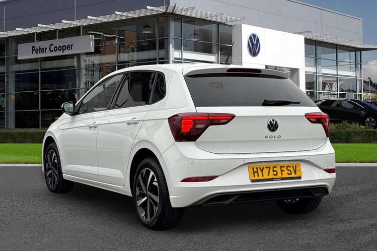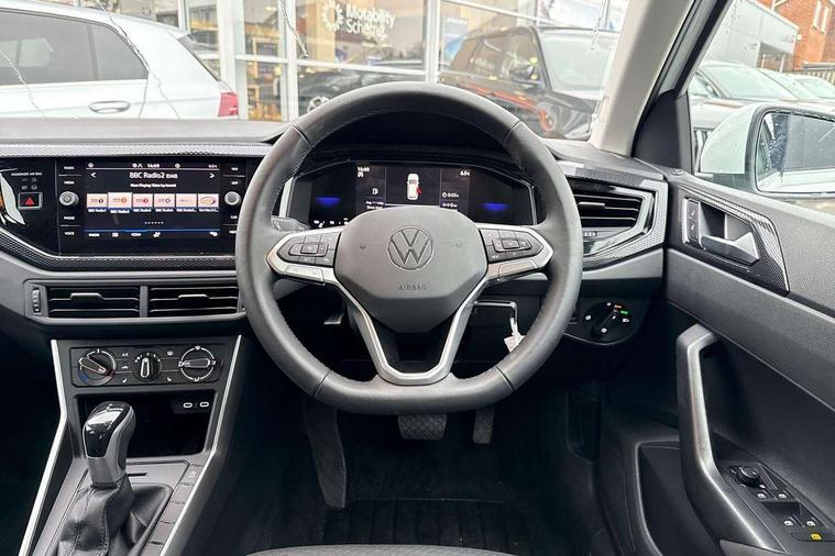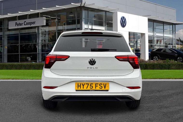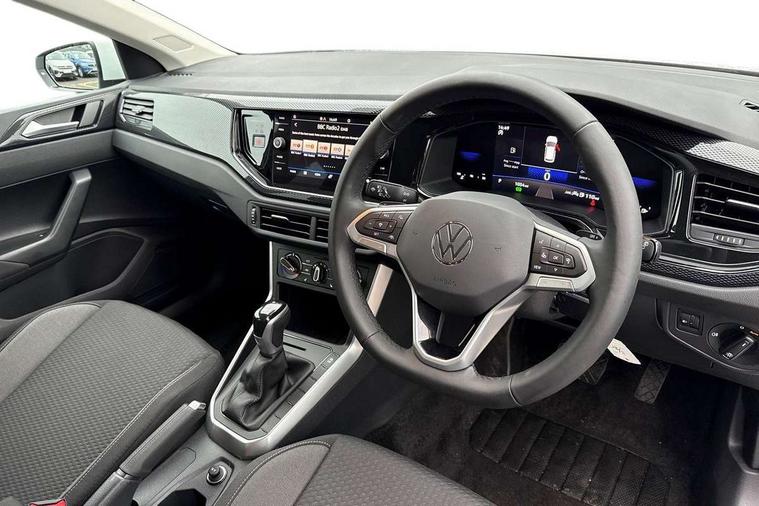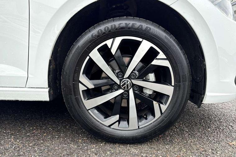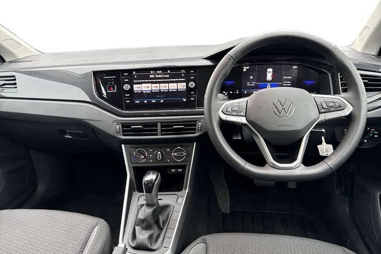Advanced driver attention and drowsiness monitor, Bluetooth mobile phone interface, Dynamic road sign display, Emergency call service, Mobile phone preparation with inductive charging function, Multifunction front facing camera for distance control, Power assisted speed sensitive steering, Predictive adaptive cruise control without follow-to-stop and speed limiter, Preparation for navigation system with media and internet package, Preparation for We connect and We connect plus, Rear view camera, Speedo and rev counter, electronic odometer, trip, service interval display and exterior temperature gauge, Standard rear axle, Travel Assist - Lane keeping system and traffic jam assist, Travel assist including emergency assist, Trip computer, Warning signal and warning light for front and rear seatbelts not fastened, Washer fluid level indicator, Wireless app connect, Front wheel drive, Rear shock absorpion, Start-stop system with battery regeneration (recuperation - energy recovery during braking), DAB Digital radio, Diversity antenna for FM reception, Automatic dimming interior rear view mirror, Automatic headlight control with LED separate daytime running lights with coming/leaving home function, Body colour bumpers with chrome inserts, Body colour door handles, Body colour door mirrors, Electric front windows, Engine badge deletion, Headlight range adjustment, Heat insulating and laminated safety glass windshield, LED Headlights, LED rear combination lamps, Power folding adjustable/heated exterior mirrors and front passenger exterior mirror lowering function, Rain sensor, Rear electric windows, Rear fog light, Rear side wing doors, Rear tinted glass from B-pillar backwards approx 65% tinted, Rear windscreen washer and wiper with interval delay, Third brake light, 12V power socket in centre console, 2 front and 2 rear reading lights with switch off delay and dimmer, 2 USB-C ports in the front, 2 USB-C charging sockets on the center console in the rear, 3 rear head restraints, 60/40 split folding rear seat and rear seat bench not split, Ceramique roof lining, Chrome plated radiator grille inserts, air vent surrounds and light switch surrounds, Door and side trim panel, Driver and front passenger seat height adjustment, Driver/passenger sunvisors with illuminated vanity mirrors, Front centre armrest, Front seat backrest storage pockets, Front standard seats, Handbrake lever handle in leather, Hartley/Thomas cloth upholstery, Headliner in recycled material, Isofix child seat preparation easy-fit (for two outer rear seats, and front passenger seat) compatible with I-size, Leather trimmed gear knob, Luggage compartment cover, Luggage compartment lighting, Removable luggage compartment floor, Single front passenger seat, Standard climatic zones, Standard pedal cluster, Three spoke leather wrapped multifunction steering wheel with shifting paddles, Light and vision pack - Polo, 3 point height adj front seatbelts + pretensioners, 3 point seat belt for centre rear seat, 3 point seatbelts, outer rear with ECE lable, ABS, Driver and front passenger airbag with front passenger airbag deactivation, Drivers and front passengers safety optimised head restraints, ESC (Electronic stability control) + EDL (Electronic Differntial lock) and ASR (Traction control), Extended and predictive pedestrian/ cyclist protection, Front assist with autonomous emergency braking (for Adaptive Cruise Control ACC up to 130 mph), Front curtain and side airbags with center airbag, Front disc brakes, Hill hold control, Manual child lock in rear doors, Rear drum brakes, Single tone horn, Tyre pressure loss indicator, Alarm with interior protection, Anti-theft alarm system with interior monitoring, backup horn, and towing protection, Anti-theft wheel bolts, Electronic engine immobiliser, Lava stone black gloss/matt decorative inserts in dash and front door panels, 16" Torsby alloy wheels, Low rolling resistance tyres,