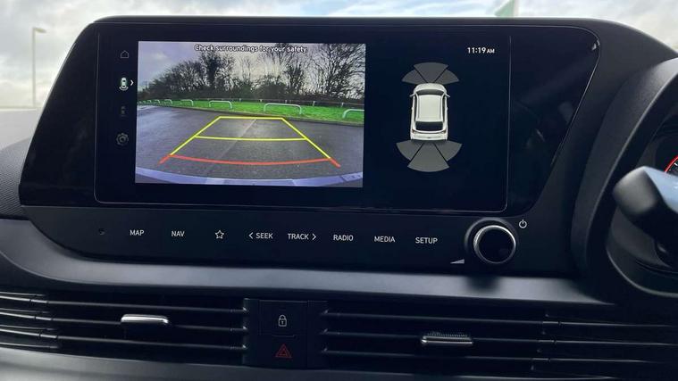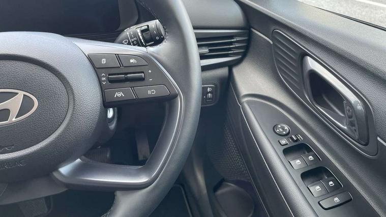 10.25" touchscreen + navigation, 2nd Gen eCall, 8" Touchscreen DAB Radio with android auto and apple carplay, Forward collision assist with car, pedestrian and cycle detection, Front parking sensor, Intelligent speed assist, Intelligent speed limit warning, Lane follow assist, Lane keep assist, MAP OTA updates, PAS, Rear parking sensor, Rear view camera with dynamic guidelines, USB C port front, USB C Port in rear, Automatic headlights with dusk sensor, Electric adjustable heated door mirrors, Electric folding door mirrors, Front grille mesh pattern design, High beam assist, LED 3rd brake light, LED daytime running lights, LED Headlights, LED taillights, Privacy glass - Rear windows and tailgate, Rain sensor, Rear side wing doors, Rear wiper, Repositioned flat metal hyundai emblem, Trailer wiring, 3 seat bench in 2nd row, Adjustable head restraints, Automatic air conditioning, Cloth upholstery, Floor mats, Heated front seats, Heated steering wheel, Leather steering wheel, Multi colour ambient lighting, Single front passenger seat, 3x3 point rear seatbelts, ABS with front and rear diagonally split, Autonomous emergency braking, Child locks on rear doors, Front ventilated disc brakes, Rear solid disc brakes, Tyre pressure monitoring system, 17" Alloy wheels, Tyre repair kit,