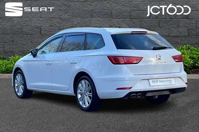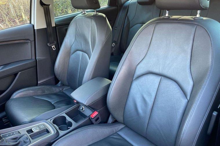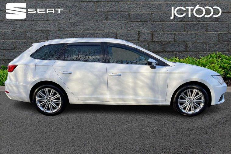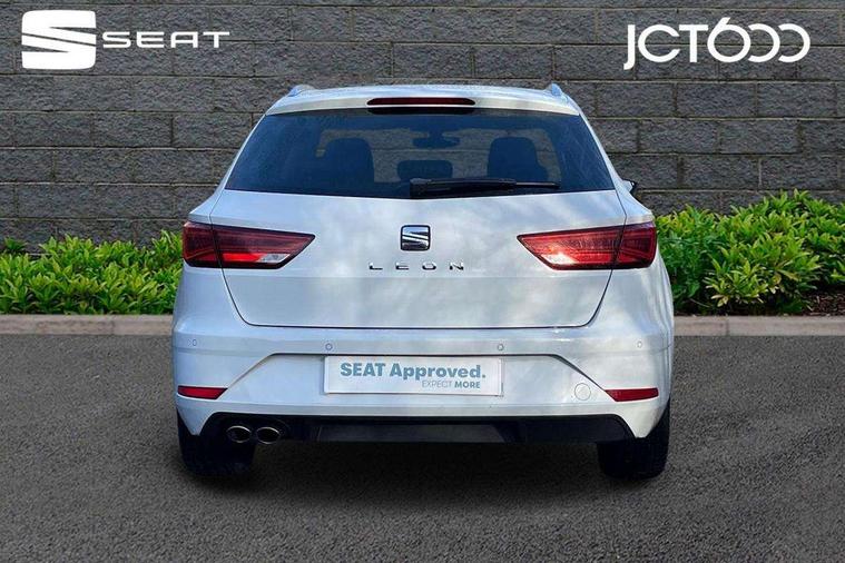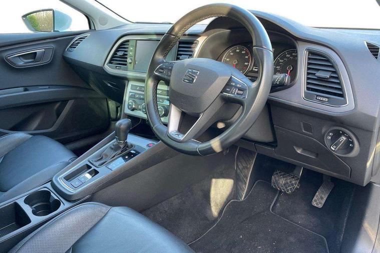 'Lights On' Reminder warning buzzer, 8" touch screen, Bluetooth Handsfree Phone Connection, Front parking sensors, Low fuel warning light, Outside temperature gauge, Rear parking sensors, Remote fuel flap release, SEAT logo boot release, Service interval indicator, Touch screen display, Trip computer, Voice control system, XDS electronic differential lock, 2 USB ports, 2x SD card slot, Auxiliary input socket, Bluetooth audio streaming, Connecting box + Keyless entry, DAB Digital radio, Radio/CD + MP3, Steering wheel mounted audio/phone controls, Aluminium front door sills, Body colour door handles, Body coloured bumpers, Body coloured door mirrors, Chrome window surround, Chromed centre radiator grille surround, Dark tinted rear windows, Electric adjustable/heated/folding door mirrors, Electric front/rear windows with one touch/auto up/down, Electric headlamp adjustment, High gloss black finish B and C pillars, LED indicators in door mirrors, Rear wash/wipe, Reverse activated kerb-view adjustment on passenger's door mirror, Twin exhaust pipes, 12v power point in centre console, 3 height adjustable rear headrests, 60/40 split folding rear seat, Active head restraints, Additional heating and ventilation outlet in rear of centre console, Ambient lighting, Boot net, Chrome loading sill, Driver seat lumbar adjustment, Driver/passenger sunvisors with illuminated vanity mirrors, Dual zone climate control, Dust/pollen filter, Front adjustable head restraints, Front armrest with storage box, Front cupholders x 2, Front seat and rear pockets, Front sports seats, Front/rear floor mats, Height/reach adjust steering wheel, Illuminated boot, Illuminated glovebox, Illuminated rear centre console, Instrument lighting with brightness control, Leather handbrake, Leather steering wheel and gear knob, LED reading lights, Luggage compartment cover, Luggage tie-down hooks, Passenger seat height adjuster, Passenger seat lumbar adjust, Rear top tether child seat ISOFIX attachment, Steering wheel gearshift paddles, Full LED headlight pack - Leon, 3 point seatbelts on all rear seats, ABS + traction control, Child proof door locks, Collision mitigation braking system, Curtain airbags, Driver/Front Passenger airbags, Drivers knee airbag, Electronic parking brake with auto hold, ESP+EBA, Front seatbelt pretensioners, Front Seatbelt warning, Front side airbags, Hill hold control, Passenger airbag deactivation system, Tyre pressure monitoring system, 2 folding remote keys with window open/close function, Engine immobiliser, Remote central locking + deadlocks, Volumetric alarm with back up horn, Chrome interior trim,