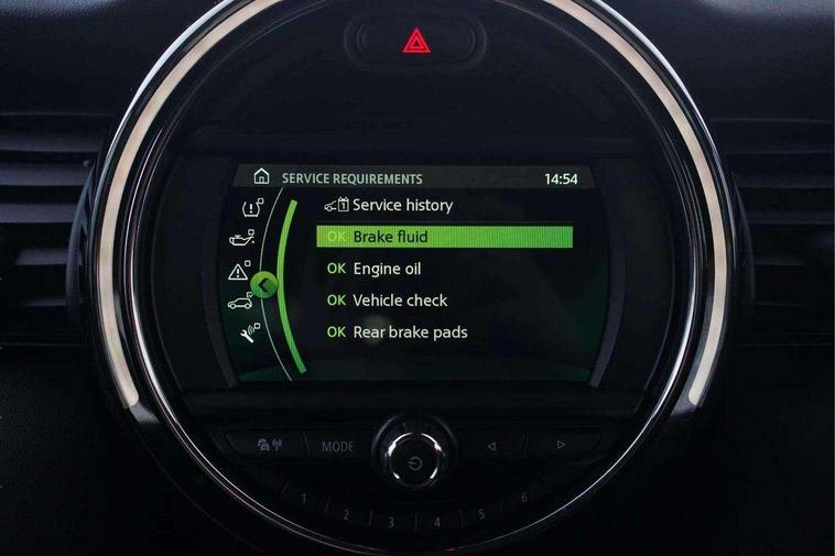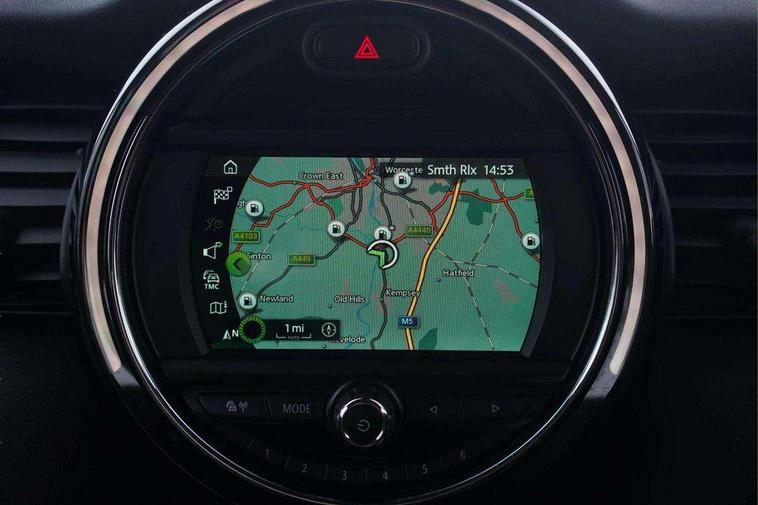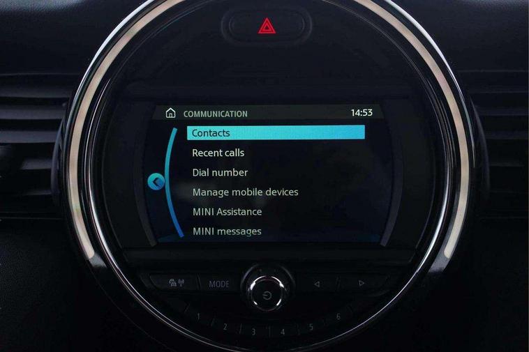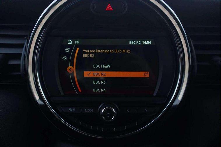 Compatible mobile phone bluetooth with audio streaming, Cruise control with brake assist, Instrument cluster, Mini E-call, MINI TeleServices, On board computer, Service interval indicator, 6.5" touchscreen with LED ring, FM tuner and DAB digital radio, Automatic headlight activation switch, Body colour fuel filler cap, Chrome border high gloss black slats radiator grille, Chrome line exterior, Dynamic brake lights, Electric front windows, Heated rear window, Heated windscreen washer jets, LED headlight with closed ring and daytime driving lights, Left exhaust tailpipe with chrome finisher, Metal door sill strips with MINI imprint, Model logo Cooper on right of tailgate, Rain sensor window wipers, Rear fog lights, Rear LED lights with union jack design, Rear window wiper, Side scuttle panel with integrated indicator, Sun/heat protection glass, White indicator lenses, 12V Accessory socket in centre console, 4 lashing eyes in luggage compartment, 60/40 split folding rear seat, Chrome interior highlights, Cupholders, Front and rear isofix with front passenger airbag deactivation, Glove compartment, Height and length steering column adjustment, Interior lighting with 12 basic colours selectable via toggle switch in roof, Leather gearshift lever and handbrake gaiters, Manual air conditioning, Mechanical seat adjustment, driver seat height adjust, forward/back and front seats backrest, Mini logo projection on floor from drivers exterior mirror, MINI Yours leather steering wheel with silver contrasting stitching with MINI Yours badge, Multifunction steering wheel, Satellite grey headlining, Storage compartments in doors, Sunvisors with vanity mirrors, 3 point seatbelts on all four seats, 6 Airbags - front, side, head and seat belt tensioners, Anti-lock braking system (ABS), DSC - Dynamic Stability Control, Front and rear disc brakes, Hill start assist, Single tone fanfare horn, Tyre pressure monitoring system, Alarm system with tilt sensor, monitoring doors, bonnet interior and tailgate, Electronic vehicle immobiliser, Start/stop toggle with keyless go, Chrome line interior, Tool kit,