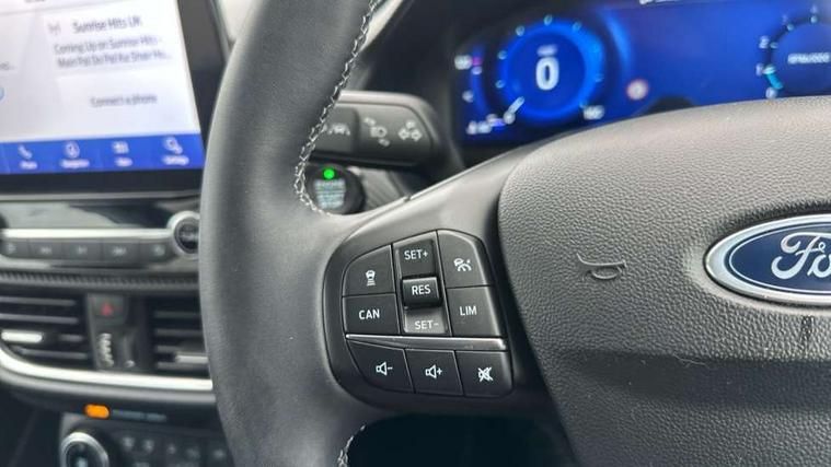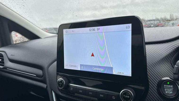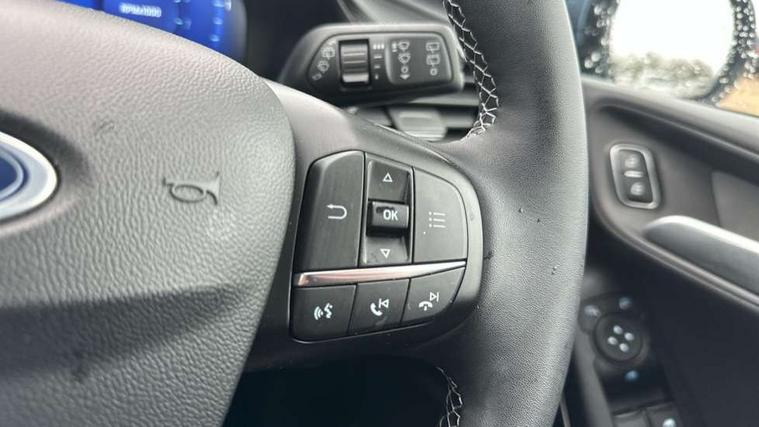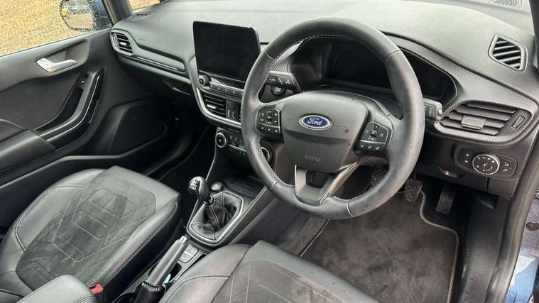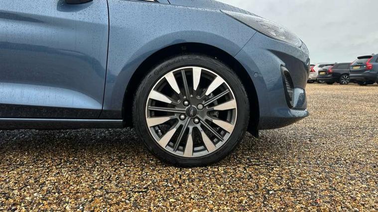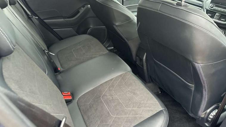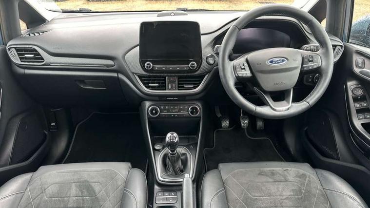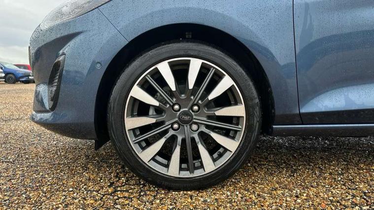 12.3" Full digital cluster, Driver alert system, Electric power steering, Ford easy fuel, Ford SYNC 3 Nav with DAB radio, 8" touch screen, voice control, emergency assist, Apple CarPlay/Android auto, 2x USB, 6 speaker, Ford pass connect, Rear parking distance sensors, Rear view camera, Selectable drive modes (Normal, Sport, Track), Speed sign recognition, Trip computer, Wrong way alert, Standard suspension, Auto high beam, Body colour bumpers, Body coloured electrically operated with side indicators, Electric front windows/one touch facility, Front titanium scuff plates, High gloss chrome surround with satin grille insert, LED Night signature to rear lights, LED third brake light, Quickclear heated windscreen, Rain sensing wipers and auto dimming rear view mirror, Rear privacy glass, Rear side wing doors, Rear wiper, 3 seat bench in 2nd row, 4 way manually adjustable passenger seat, Adjustable head restraints, Centre console with opening armrest, 2x cupholders, 12v and USB, Drivers and Passenger lumbar support, EATC - Electronic Auto Temperature control, Front floor mats in velour, Leather gaiter, LED ambient lighting (Ice blue), Manual 4-way driver seat adjust, Sensico partial premium leather upholstery with metal grey stitching, Sensico wrapped steering wheel, Single front passenger seat, NCAP Pack - Fiesta, Winter pack [GTBAB]- Fiesta, 3 point seatbelts on all rear seats, Electronic stability control with hill start assist, Manual child lock in rear doors, Tyre pressure monitoring system, Ford keyfree system with Keyless entry and keyless start, MyKey system, Remote central locking, Thatcham alarm with power door dead locks, 17" 10 spoke alloys with pearl grey machined finish,