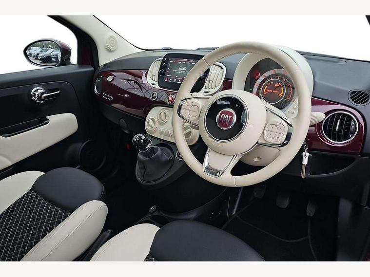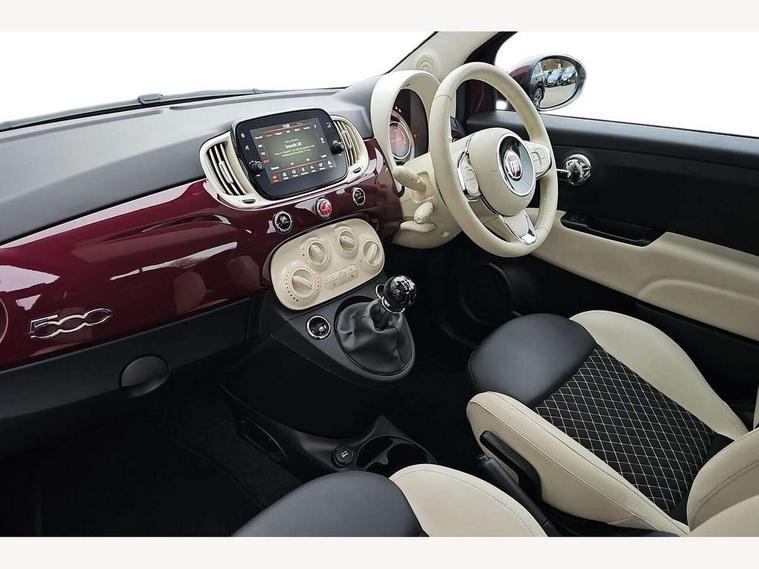 Apple car play/Android Auto, Cruise control, E-call, External temperature gauge, Power assist steering, Rear parking sensor, Speed limiter, Stop/start system, Trip computer, 4 speakers, 7" HD Touchscreen Radio, Bluetooth, USB and DAB, Rear speakers, 3rd brake light, Auto headlights, Body colour bumpers, Body coloured electrically adjustable door mirrors, Chrome plated exterior door handles, Dolcevita badge on fender, Dusk and rain sensors, Electric front windows, Fixed glass sunroof with sunblind, Front fog lights, Halogen headlamps, Heat insulated glass, Heated rear windows with wash wipe, LED daytime running lights, Rear side wing doors, Rear wiper, 1 passenger grab handle, 2 seat bench in second row, 50/50 split folding rear seats with height adjustable rear headrests, Air conditioning, Auxilliary 12V power socket, Chrome kit, Front headrests, Height adjustable drivers seat, Height adjustable steering wheel, Isofix child seat preparation, Single front passenger seat, Techno leather steering wheel with audio controls, 7 airbags - Driver, passenger, side, window and drivers knee airbags, ABS/EBD, ESC + ASR/MSR + HBA + Hill holder, Manual passenger airbag deactivation function, Traction control, Tyre pressure monitoring system, Automatic door locking, Immobiliser, Locking fuel filler cap, Remote central locking, 15" Alloy wheels,