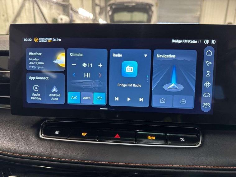 Driver attention alert, 12.3" colour touchscreen, 12.3" Virtual driver information display, 360 degree parking camera, Adaptive cruise control, Android Auto, Apple CarPlay, Blind spot detection, Bluetooth connectivity, Driver memory function, Emergency call service, Forward collision warning, Front parking sensors, Intelligent speed limit assist, iSmart, Lane change assist, Lane keep assist system (LAS) with Lane departure warning system (LDWS), Live services, PAS, Power tailgate, Rear cross traffic alert, Rear parking sensors, Satellite navigation system, Traffic jam assist, Trip computer, Wireless charging, 4 USB ports 2 front and 2 rear, 8 Speaker audio system, DAB audio, Auto dimming rear view mirror, Automatic headlights, Electric adjustable/heated/folding door mirrors with memory, Follow me home headlights, Front and rear aero wiper, Front and rear electric windows with one-touch up/down, Front fog lights, Intelligent high beam, LED 3rd brake light, LED daytime running lights, LED Headlights, LED rear lights, Rain sensing wipers, Rear privacy glass, Rear side wing doors, Silver roof rails, Vehicle to Load, 12V power sockets, 2nd row 60/40 split fold seat, 3 rear headrests, 3 seat bench in 2nd row, 3 stage heated front seats, 4 way electric adjustable passenger seat, 6 way electric adjustable drivers seat + lumbar support, Dual zone automatic air conditioning, Front and rear reading lights, Front centre sliding armrest with storage compartment, Front headrests, Height and reach adjustable steering wheel, ISOFIX restraints on outer rear seats x2, Multi function steering wheel, Single passenger seat, 3x3 point rear seatbelts, ABS/EBD, Active emergency braking with pedestrian/Bicycle detection, Anti rolling protection, Door open warning, Drivers seatbelt reminder, Dual front airbags, Electric parking brake with auto hold function, ESP, Front and rear passenger seat belt reminder, Front centre airbag, Front passenger airbag deactivation switch, Front seat belt height adjuster, Front seatbelts (3-point + pretensioner + load limiter), Front side airbags, Hill descent control, Hill launch assist, Manual rear child locks, Rear outer seatbelt pretensioner and load limiter, Side curtain airbags, Tyre pressure monitoring system, Alarm system and engine immobiliser, Keyless entry and push button start system, Remote central locking, Speed sensing door locks, 19" Blade diamond cut alloy wheels, Tyre repair kit,