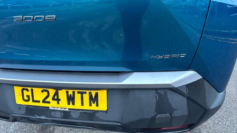 Bluetooth with two microphones (Connect up to 2 phones), Drive modes select (Eco, normal and sport) with configurable ambient lighting, Driver attention alert, Driver foot rest, Driver profile selection, E-call, Exterior temperature indicator with ice warning, Front passenger seat detection, Lane keep assist, Manual gear changes via steering mounted paddles, Multi function trip computer, Natural voice recognition, PEUGEOT i-Cockpit - 21" HD panoramic curved display incorporating instrument panel and touchscreen with 3colour themes, PEUGEOT i-connect advanced HD fully customisable touch screen, Navigation with Tom Tom Live updates and over the air map updates, PEUGEOT SOS and assistance, Rear parking sensor, Speed limit and traffic sign recognition and recommendation, Wireless mirror screen with apple carplay and android auto, Wireless smartphone charger with status light and ambient lighting, Dynamic stability control and electronic anti-skid system, 2 USB-C ports in the front, 6 speakers, AM/FM bi-tuner, DAB Radio (Digital Audio Broadcasting), Peugeot customisable virtual iToggles, 3008 model designation badgers front and rear in basalt grey, Acoustic windscreen, Automatic hazard light activation upon heavy brake application, Automatic headlamp activation, Automatic windscreen wiper activation with interval wiping intensity control, Body colour floating effect rear roof spoiler, Body colour roof, Body coloured exterior door handles, Dark tinted privacy glass for rear door, Tailgate and Quarter windows, Door mirrors - Welcome lighting and integrated LED indicators, Eco LED headlights, Electric adjustable/heated/folding door mirrors, Electrochrome rear view mirror, Flat blade wipers with magic wash integrated nozzles, Front and rear electric windows with one touch, Front grille with body coloured accents, Gloss black connecting strip between rear lights, Gloss black finish B pillar, Grained black lower door claddings and wheel arches, Hybrid rear badging in basalt grey, Laminated windscreen, LED exterior lighting, LED third brake light, Lower front and rear bumper trims in meteor grey, Orbital gloss black door mirrors, Peugeot 3-claw signature front and rear daytime running lights, Rain sensor, Rear side wing doors, Tailgate with heated rear window, 2 cupholders in front centre console, 3 seat rear bench, 3x 12V sockets (Cabin front and rear and boot), 4 Grab handles retractable and damped, 4 tie down luggage rings, 40/20/40 folding rear seat backrest with fixed base, Aluminium pedals, Arch design central console with concealed storage, Cabin high efficiency filter, Central front armrest with ventilated storage compartment and LED lighting, Chrome finish interior door handles, Compact split leather mutifunction steering wheel with gloss black and satin chrom detailing, Dual zone climate control, Dynamic front seats, e-Toggle compact gear selector, Electric power steering with reach and rake adjustable steering column, Glasses storage box, roof mounted, LED boot light, LED footwell lights, LED front and rear roof lights, LED Glovebox light, LED illuminated driver and passenger concealed sunvisor mirrors, Luggage cover, Mistral black pillars and headlining, Quick launch cabin heating/cooling function, Rear air vents, Roof lining - Meteor grey, Seatbelt unfastened on the move audible and visual alert for front and rear seats, Single front passenger seat, Twin USB charging ports in the rear (Type C), Two bag hooks, Two position boot floor, 2x Isofix child seat fitting on outer rear seats with zipped cover, 3x3 point rear seat belts, ABS (Anti-lock Braking System) with (EBD) Electronic Brakeforce Distribution, Adaptive driver and front passenger airbags with passenger airbag deactivation function, Advanced Emergency Braking System with radar (AEBS3) providing night detection of pedestrians and cyclists, Child locking functionality on rear doors, Driver and front passenger side airbags, Electronic parking brake, Front and rear curtain airbags, Front optimised safety headrests and 3 x rear retractable headrests with height adjustable, Front/rear disc brakes, Hill start assist, Post collision safety brake, Seatbelts - Front and rear outer seats with pyrotechnic pretensioners and force limiters, Tyre under inflation monitoring and detection (Indirect), 2x Keys (Lock, Unlock, Boot release function with concealed key), Acoustic vehicle alert system (AVAS), Automatic door locking when moving off, Deadlocking system, Electronic code immobiliser, Exterior passenger door lock, Locking wheel nuts, Peugeot Open and Go (keyless entry and push button start), Seatbelts reminder and unfastend warning indicator, Thatcham category 1 Perimetric and volumetric alarm with anti-lift detection, Graphene carbon effect dashboard and front door panel Alcove decor, Textile decor for dashboard, door panels and centre console arch, 19" YARI diamond cut alloy wheels with star center cap in orbital black, Michelin e-primacy class A tyres, Tyre repair kit includes 12V compressor, Sealant and storage box,