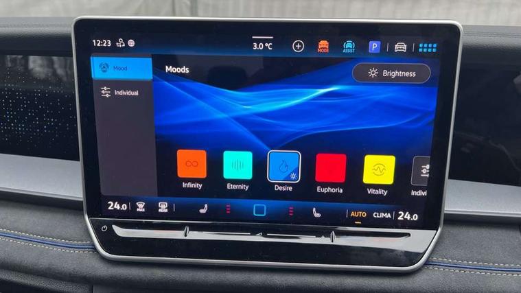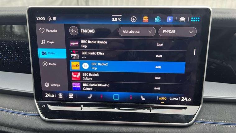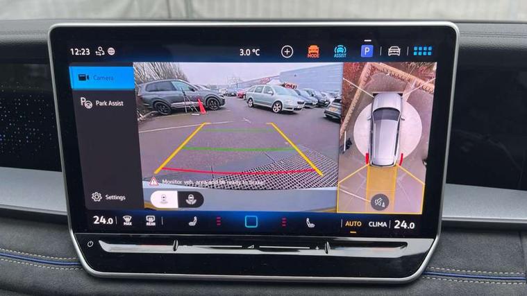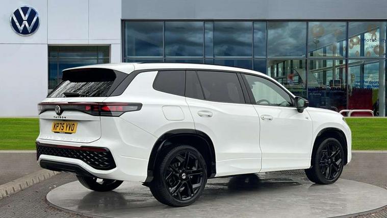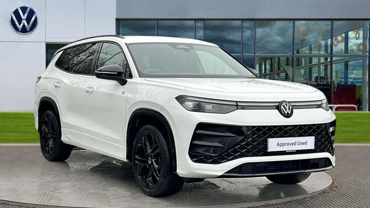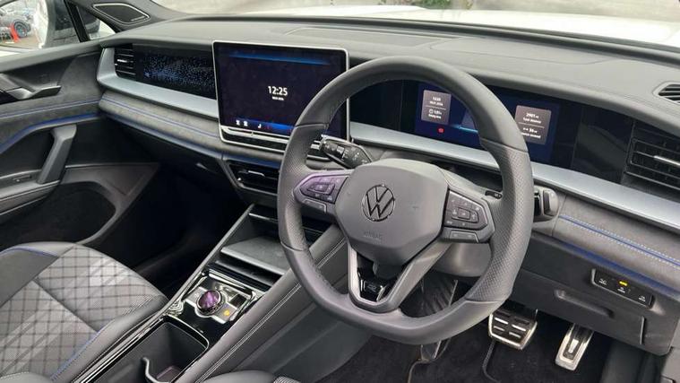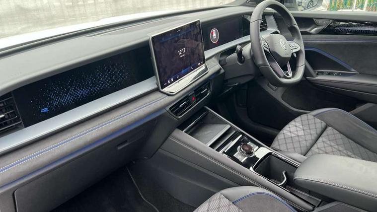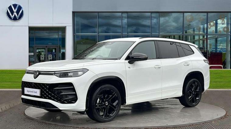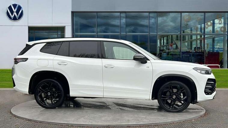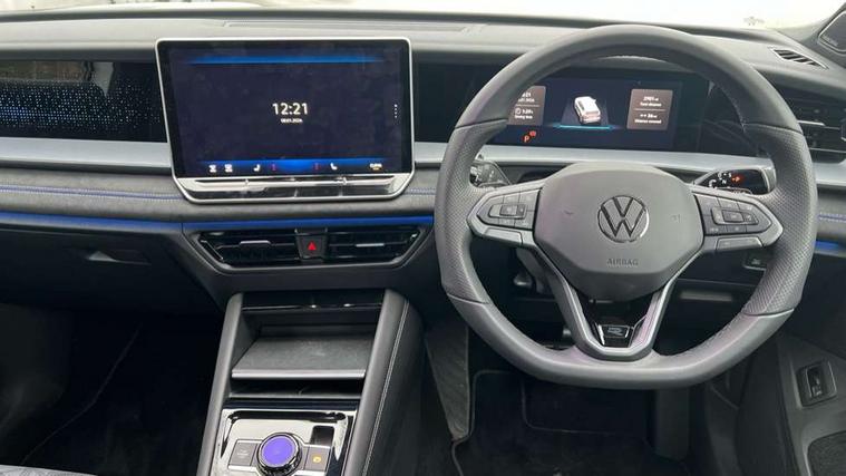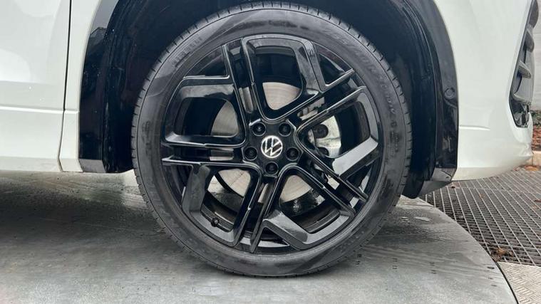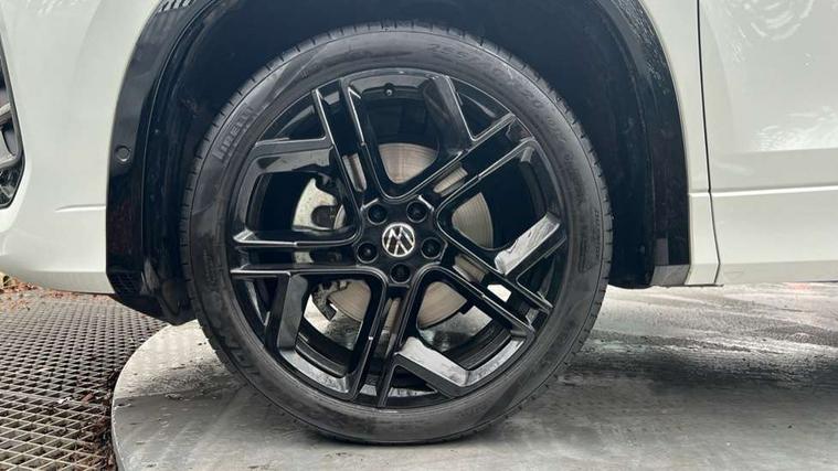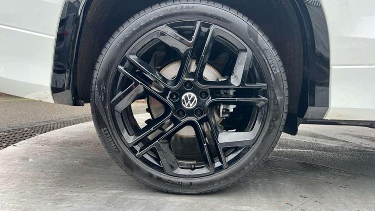 Adaptive cruise control (ACC), Digital Cockpit Pro - 10.25" high resolution dash display screen with customisable menus and information, Driver alert system, Driver attention monitoring system, Dynamic road sign display, E-Sim card for online connectivity, eCall emergency call system, Lane change system, Side assist, Rear traffic alert and Exit warning system, Multifunction front facing camera, Oncoming vehicle braking when turning including swerve support, Start/stop system with regenerative braking, Voice activation spoken voice commands for telephone and navigation system, Warning signal and warning light for front and rear seatbelts not fastened, Wireless App-Connect, Front wheel drive, Digital radio reception (DAB), Diversity antenna for FM reception, Air intake with Chrome trim, Auto dimming interior rear view mirror, Automatic headlight control system, Body colour door handles, Chrome moldings on the side windows, Coming/leaving home lighting function, Dynamic headlight range control with dynamic cornering light, Exterior mirrors convex on the left and aspherical on the right, Heat insulating glass in side and rear windows, Illuminated Volkswagen logo rear with animation, Laminated safety glass windshield, heat insulating, LED 3rd brake light, LED separate signature day time running light, Puddle lights, Rain sensor windscreen wipers, Rear fog light on one side, reversing light on both sides, Rear side wing doors, Rear wiper, Reverse activated passenger's door mirror, Surround lighting with welcome light, Volkswagen logo in front, illuminated lighting animation with wake up/goodbye scenario and illuminated door handles, 10 colour interior ambient lighting, 12V outlet in center console rear and in luggage compartment, 3 rear headrests, 3 rear seat bench in 2nd row, backrest split folding with centre armrest and 2 seats in 3rd row of seats, Black roof lining, Brushed stainless steel pedals, Carpet mats, front and rear, Centre console with illuminated storage compartment with sliding cover and two drinks holders, Chrome elements on the mirror switch and power window switches and door pulls, Door and side trim panel insert in Art velour, Flat luggage compartment floor, Front centre armrest, Front scuff plates in aluminium, ISOFIX anchors for child seats on outer rear seats and front passenger seat compatible with i-Size, Mechanical rear seat release, Power adjustable lumbar support in front, Single front passenger seat, Sports comfort seats in front, Sun visors with illuminated vanity mirrors, 3 Point seat belts in front with pretensioners, 3 point seatbelts in outer rear with ECE label, Autonomous emergency braking front assist with pedestrian and cyclist monitoring, Driver and front passenger airbag with front passenger airbag deactivation, Electronic parking brake with auto hold, First aid kit with warning triangle and safety vest, Front and rear curtain airbags, Front and rear side airbags, Front centre airbag, Front disc brakes, Hill start assist, Rear disc brakes, Two tone horn, Decorative material set R-Line, Interior door handle in matte chrome,
