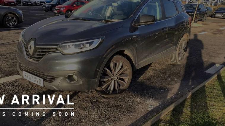 Bluetooth system, Cruise control + speed limiter, Door/boot open warning light, Eco mode, Exterior temperature gauge, Front and rear parking sensors, Low fuel level warning light, Oil level gauge, PAS, R-Link Multimedia system with 7" touch screen, satellite navigation and western European map, Rev counter, Traffic sign recognition, Trip computer, Visio system - lane departure and high beam assist, Diesel particulate filter, Bose Premium Audio system with 7 premium speakers + subwoofer, DAB Digital radio, Fingertip controls for audio system, USB connection, Automatic headlights and windscreen wipers, Body colour door handles, Body coloured bumpers, Body coloured door mirrors, Bodyside mouldings with chrome inserts, Chrome exterior trim, Chrome window surround, Cornering front fog lights, Electric adjustable/heated/folding door mirrors, Electrochrome rear view mirror, Extra tinted glass in rear windows and tailgate, Fixed panoramic glass sunroof, Front and rear electric windows, Front and rear towing rings, Front skid plate, Front wipers with variable intermittent facility, Heated rear windscreen, Integrated fuel filler cap, LED daytime running lights, LED Headlights, Rear skid plate, Rear wiper, Roof rails, Side protection mouldings, 12v power outlet - front, 3 height adjustable rear headrests, 3 seat rear bench, 60/40 split folding rear seat, Adjustable dashboard illumination, Air recirculation system, Centre rear armrest with cup holder, Driver's seat with lumbar adjustment, Driver/passenger reading lights, Dual zone automatic climate control, Front centre armrest, Front courtesy lights, Front footwell illumination, Glovebox with light, Height adjustable front headrests, Height/reach adjust steering wheel, Illuminated boot, Illuminated sun visor mirrors, Isofix system on outer rear seats, Nappa leather steering wheel, One touch easy folding rear seating system, Pollen filter, Rear courtesy lights, Rear passenger heating ducts, Variable boot floor, Leather pack - Kadjar, Parking pack premium - Kadjar, Techno pack premium - Kadjar, ABS/EBD, Brake assist function, Driver/passenger 2 stage auto adaptive airbags, Electronic parking brake, ESP with ASR and UCL (understeer control logical), Front and rear curtain airbags, Front lateral airbags, Front seat belts warning, Height adjustable front seatbelts + pretensioners, Hill start assist, Manual passenger airbag deactivation function, Rear seatbelt warning indicator, Three 3 point rear seatbelts, Traction control, Tyre pressure monitor, Anti-drill door locks/ignition barrel, Deadlocks, Hands free Renault card, Insurance approved Cat 1 alarm system, Insurance Approved Immobiliser, RAID (Renault Anti-Intruder Device) with automatic door locking, Remote central locking, 19'' Zeus diamond cut alloy wheels, Tyre inflation kit,