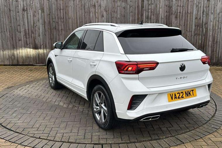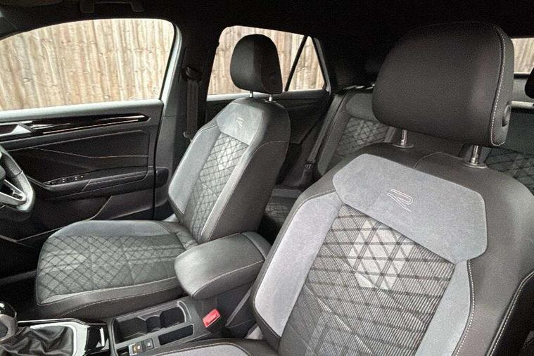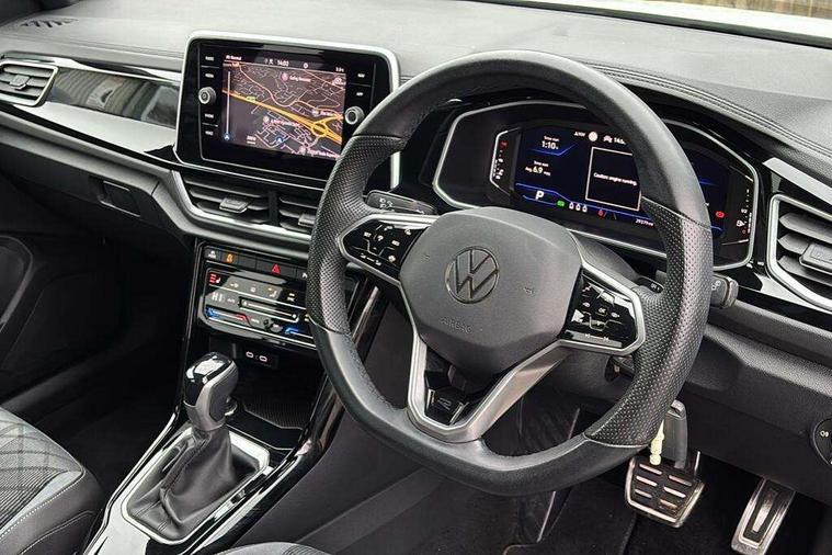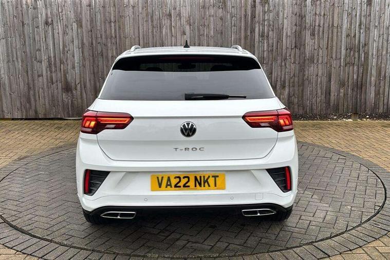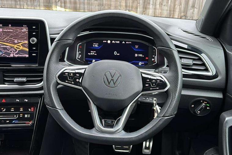 10.25" Digital cockpit pro, Bluetooth mobile phone interface, Driver alert system with fatigue detection, Driver tips and journey analysis, Emergency call service, Lane keeping system Lane Assist, Modified key software - reduce switch off time for key status change to Long no motion, Online services, Park assist including front and rear parking sensors, Service interval indicator, Tailgate/trunk lid release from outside, Think blue trainer driver tips and journey analysis, Warning sound and light for front seatbelts unfastened, Wireless app connect, Battery regeneration during braking, Start/stop function with battery regeneration, Diversity antenna for FM reception, Front and rear 6 speakers, Music playback - MP3, WMA and AAC files, Premium USB cable in choice of either Apple or Android smartphone compatibility, SD card slot, Simultaneous pairing of 2 compatible mobile devices, Title and cover art display, We Connect and We Connect Plus functionality, 3rd brake light, Auto dimming interior rear view mirror, Automatic hazard lights activation under emergency braking, Automatic headlight control with LED separate daytime running lights with coming/leaving home function, Extended roof spoiler, Exterior mirrors aspherical on driver side, convex on front passenger side, External USB type C socket and charging sockets, Front windscreen wiper with intermittent wipe and 4 position delay, Heated rear window, LED Plus headlamps, LED rear combination lamps, LED rear number plate lights, LED tail lamp rear comination lamps, Power windows with comfort operation and circuit breaker, R-Line design body coloured bumpers, Rain sensor, Rear exhaust tailpipe, Rear fog light on one side and reversing lights on both sides, Rear side wing doors, Rear wash/wipe with intermittent wipe setting, Remote electrically foldable door mirrors, puddle lights and reverse activated passenger's door mirror, 12V power socket in centre console, 3 rear head restraints, 3 seat bench in 2nd row, 4 load lashing points in luggage compartment, Air care climatronic air conditoning system with active combination filter and 2-zone temperature control, Black roof lining, Chrome plated radiator grille inserts, air vent surrounds and light switch surrounds, Door and side trim panel with leatherette insert, Drawer under drivers seat, Front + rear carpet mats, Front centre armrest, Front cupholders x 2, Front footwell illumination, Front reading light, Front scuff plates with R logo, Instrument lighting, white adjustable panel illumination, Interior ambient lighting and surround lighting, Interior light delay, Isofix child seat preparation, Leather gearshift handle, Load-through provision with cup holder when folded down ('Unsplit rear seat bench, split folding backrest, with centre armrest), Luggage compartment lighting, Single front passenger seat, Stainless steel pedals, Storage compartment in left and right luggage area, Storage compartment in rear doors, Storage compartments in driver and front passenger doors, Sunvisors with illuminated vanity mirrors, Variable boot floor, height adjustable and removable, Driver assistance pack without proactive passenger protection - T-Roc, 3 point height adj front seatbelts + pretensioners, 3 point seatbelts in outer rear with ECE label, ABS, Child locks on rear doors, Driver and front passenger airbag with front passenger airbag deactivation, Driver and front passenger safety-optimised head restraints, Drivers seatbelt reminder, Electronic parking brake, Electronic Stability Control (ESC) inc EDL (Electronic Differential Lock) and ASR (Traction Control), Front and rear passengers curtain airbag system including front side airbags, Front assist with city emergency braking and pedestrian monitoring, Front seat side impact airbags, Hill start assist, Predictive pedestrian protection, Rear disc brakes, Single tone horn, Tyre pressure loss indicator, Volkswagen roadside assistance, Alarm with interior protection, Anti-theft alarm system with interior monitoring, backup horn, and towing protection, Remote central locking with SAFELOCK, radio remote control with 2 remote control folding keys, Trims for alloy wheels,