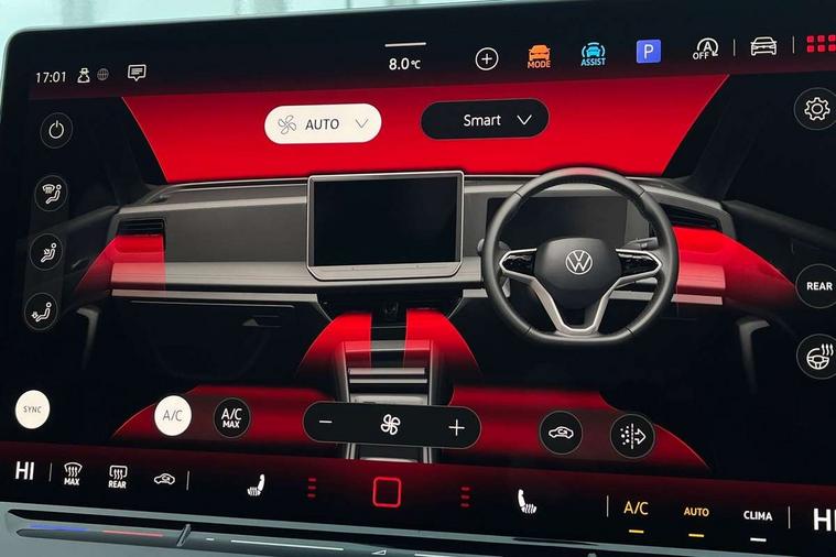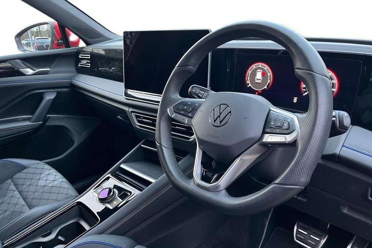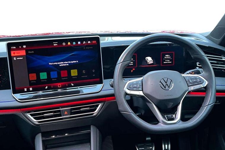 Adaptive cruise control ACC including speed limiter, Advanced driver attention and drowsiness monitor, App-Connect incl. App-Connect Wireless for Apple CarPlay and Android Auto, Area view camera [PAV], Bluetooth phone integration system, Comfort drive travel assist, Digital Cockpit Pro - 10.25" high resolution dash display screen with customisable menus and information, Dynamic road sign display, E-Sim card for online connectivity, eCall emergency call service, eCall emergency call system, Extended safety system (proactive passenger protection system), Full electric tailgate operation, Head up Display, Inductive smartphone charging without external antenna connection, Lane change system, Side assist, Rear traffic alert and Exit warning system, Lane keeping system Lane Assist, Multifunction front facing camera, Navigation system, Oncoming vehicle braking when turning including swerve support, Park assistance plus with front and rear parking sensors, Power assisted steering with speed sensitive, Rear view camera, Rev counter, Service interval indicator, Speed limit display, Start/stop system with regenerative braking, Trip computer, Voice control and enhancer, Warning signal and warning light for front and rear seatbelts not fastened, Wireless App-Connect, Front wheel drive, 15" Infotainment display, 8 speakers, DAB radio, Diversity antenna for FM reception, Ambient lighting with logo projection, Auto dimming interior rear view mirror, Automatic headlight control system, Body colour door handles, Body coloured door mirrors with integrated indicators, Chrome moldings on the side windows, Coming/leaving home lighting function, Dynamic headlight range control with dynamic cornering light, Exterior mirrors power folding, auto-dimming on drivers side with surround lighting and memory feature, Front and rear electric windows, Heat insulating darkened glass in side and rear windows, Heated windscreen washer jets, High Beam Assist, automatic sensing for switching between dipped and main beam, High level 3rd brake light, High-resolution matrix beam plus digital projection, Highway light, Illuminated door handle recesses, Illuminated lightline between headlamps and illuminated door handle recesses, IQ.Light - HD matrix headlamps with poor weather light, entry and exit lighting, Laminated safety glass windshield, heat and sound insulating, LED rear lights with welcome farewell lights with illuminated Volkswagen Logo, LED separate daytime running light, Rear fog light on one side, reversing light on both sides, Rear side wing doors, Rear wiper, Remote electrically foldable door mirrors, puddle lights and reverse activated passenger's door mirror, 12V outlet in center console rear and in luggage compartment, 12V socket in centre console, 2 USB-C ports in the front, 2 USB-C charging sockets on the centre console in rear, charging capacity up to 45 W, 3 bench rear seats in 2nd row, 3 rear headrests, 30 colours options interior ambient lighting, Air Care Climatronic 3 zone automatic climate control with enhanced air filter and controls in the rear, Black roof lining, Brushed stainless steel pedals, Carpet mats, front and rear, Centre console with illuminated storage compartment with sliding cover and two drinks holders, Door and side trim panel with leatherette insert, Door sill protectors, Drivers seat with manual adjustment of seat travel and height and backrest angle with thigh support longitudinally sliding, Front centre armrest, Front integrated head restraints, Front massage seats, Front sports comfort seats, Heated front seats, Heated steering wheel, Height adjustable front seats, ISOFIX anchors for child seats on outer rear seats and front passenger seat. Compatible with i-Size, Leather wrapped multifunction steering wheel with paddle shift, Mechanical rear seat release, Power adjustable lumbar support in front, Rear bench seat asymetrically split folding, longitudinally movable and folding with load-through hatch and center armrest, Single front passenger seat, Sun visors with illuminated vanity mirrors, Variable luggage compartment floor, 3 point seat belt for centre rear seats, 3 Point seat belts in front with pretensioners, 3 point seatbelts in outer rear with ECE label, Autonomous emergency braking front assist with pedestrian and cyclist monitoring, Driver/Front Passenger airbags, Electronic parking brake with auto hold, Front disc brakes, Front passenger airbag deactivation, Impact bar in doors, Manual rear child locks, Rear disc brakes, Two tone horn, Tyre pressure loss indicator, Warning triangle, Anti theft alarm system with interior monitoring, backup horn and towing protection, Anti theft wheel bolts, Central locking system keyless entry, Chrome elements on the mirror switch and power window switches, door pulls interior door handle in matte chrome, Decorative inserts, Tool kit for tyre mobility set,