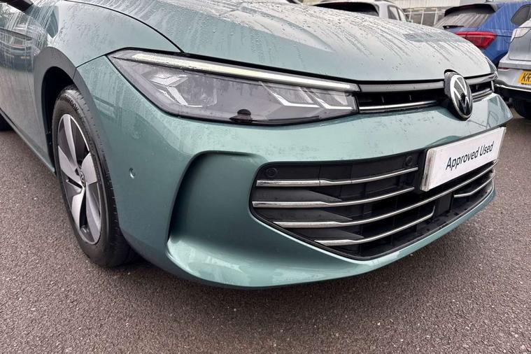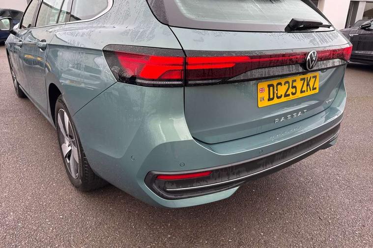 2 x Front USB-C ports, 2 x USB-C charging sockets on the centre console in the rear, charging capacity up to 45W, Adaptive cruise control, Advanced driver attention and drowsiness monitor, Chat GPT function for IDA voice assistant, Digital cockpit pro 10.25" high resolution, Discover media navigation system includes streaming and internet, Dynamic road sign display, E-Sim card for online connectivity, eCall emergency call service, Electronic engine sound, Full electric tailgate operation, Inductive smartphone charging without external antenna connection, Memory feature for park assist, Oncoming vehicle braking when turning including swerve support, Park assist with park distance control, Predictive speed limiter, Preparation for We connect and We connect plus, Wireless app connect, Battery 340 A (58 Ah), Front wheel drive, Petrol Particulate Filter, 8 Speakers, Auto dimming interior rear view mirror, Automatic headlights, Body colour bumpers, Body colour door handles, Heat insulating glass in side and rear windows, LED third brake light, Rain sensor, Rear side wing doors, Rear wiper, Welcome light with surround lighting, 3 seat bench in 2nd row, 3 zone air care climatronic with rear air conditioning control panel, Front + rear carpet mats, Front head restraints, Isofix child seat preparation, easy-fit (for two outer rear seats, and front passenger seat), compatible with I-size, Luggage compartment cover, power operated, Single front passenger seat, Standard pedal cluster, Sun visors with illuminated vanity mirrors for driver and front passenger, Sunblind for rear side windows, Three rear head restraints, Unsplit rear seat bench, split folding backrest, Infotainment package plus - Passat Estate, Park and comfort pack - Passat Estate, 3x3 point rear seat belts, ABS (Anti locking brake system) includes BAS (Brake assist) and EBD (Electronic brake pressure distribution), Autonomous emergency braking front assist with pedestrian and cyclist monitoring, Disc brakes in front, Driver/Front Passenger airbags, Drivers knee airbag, Electronic parking brake with auto hold, ESC (Electronic stability control) + EDL (Electronic Differential lock) and ASR (Traction control), EDTC (Engine drag torque control), Extended safety system with proactive passenger protection system, Front passenger airbag deactivation switch, Hill hold function, Tyre pressure loss indicator, Warning triangle and first aid kit, Alarm with interior protection, Electronic engine immobiliser, Keyless locking and starting system keyless access with safelock, Aluminium decorative inserts, Tool kit for tyre mobility set, Trims for alloy wheels,
