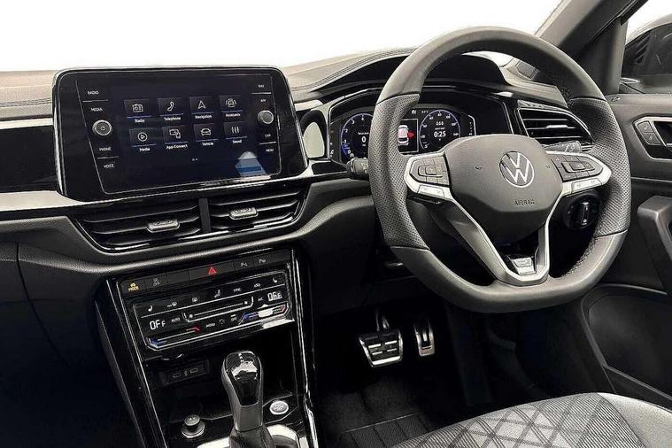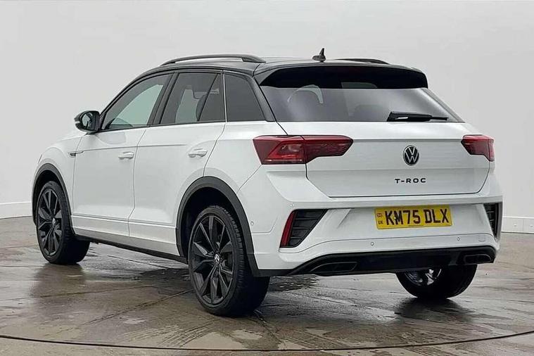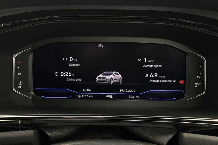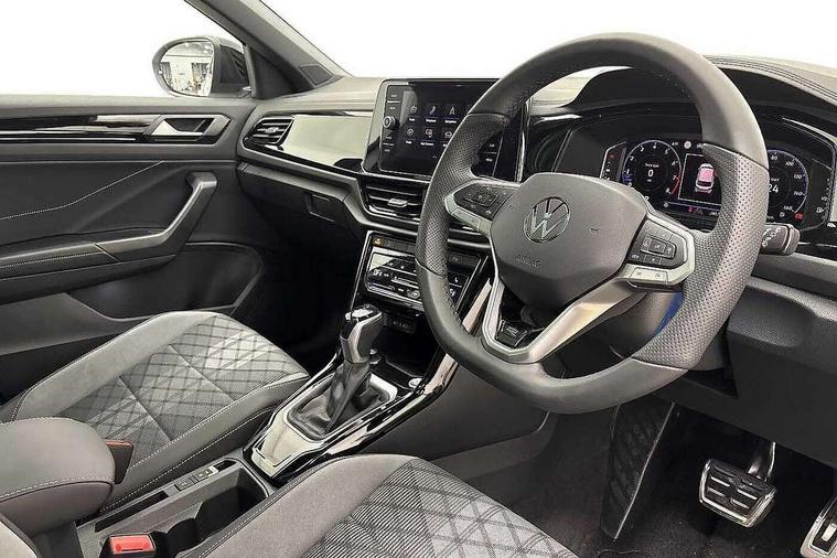 10.25" Digital cockpit pro, Advanced driver attention and drowsiness monitor, Emergency call service, Lane keeping system Lane Assist, Mobile phone interface, Modified key software - reduce switch off time for key status change to Long no motion, Online services, Park assist including front and rear parking sensors, Power assisted speed sensitive steering, Rear view camera, Service interval indicator, Tailgate/trunk lid release from outside, Think blue trainer driver tips and journey analysis, Warning sound and light for front seatbelts unfastened, Wireless app connect, Battery regeneration during braking, Rear shock absorption chassis with increased ride height, Start/stop function with battery regeneration, DAB Digital radio, Diversity antenna for FM reception, Music playback - MP3, WMA and AAC files, SD card slot, Simultaneous pairing of 2 compatible mobile devices, Title and cover art display, We Connect and We Connect Plus functionality, Advanced dynamic light assist for LED matrix headlights, Auto dimming interior rear view mirror, Automatic hazard lights activation under emergency braking, Black roof rails, Dynamic cornering light, Dynamic headlight range control with self adjusting whilst driving, Electrically adjustable and heated door mirrors, Extended roof spoiler, Exterior ambient lighting, Exterior mirrors aspherical on driver side, convex on front passenger side, External USB type C socket and charging sockets, Front windscreen wiper with intermittent wipe and 4 position delay, Heated rear window, Illuminated front grille, IQ LED matrix headlights, LED 3rd brake light, LED rear number plate lights, LED rear tail lights with dynamic turn signal, LED separate daytime running light, Light mode for poor weather, rain, fog or snow, Power windows with comfort operation and circuit breaker, Privacy glass for rear side windows and rear window, R-Line design body coloured bumpers, Rain sensor, Rear exhaust tailpipe, Rear fog light on one side and reversing lights on both sides, Rear side wing doors, Rear wash/wipe with intermittent wipe setting, Remote electrically foldable door mirrors, puddle lights and reverse activated passenger's door mirror, Tilting and sliding panoramic sunroof with rear panoramic sunroof, 12V power socket in centre console, 3 rear head restraints, 3 seat bench in 2nd row, 4 load lashing points in luggage compartment, Air care climatronic air conditoning system with active combination filter and 2-zone temperature control, Chrome plated radiator grille inserts, air vent surrounds and light switch surrounds, Door and side trim panel with leatherette insert, Drawer under drivers seat, Front + rear carpet mats, Front centre armrest, Front comfort sports seats, Front cupholders x 2, Front footwell illumination, Front reading light, Front scuff plates with R Line logo, Front seat back storage pockets, Glove compartment door with light, Instrument lighting, white adjustable panel illumination, Interior ambient lighting and surround lighting, Interior light delay, Isofix child seat preparation, Leather gearshift handle, Load-through provision with cup holder when folded down ('Unsplit rear seat bench, split folding backrest, with centre armrest), Luggage compartment lighting, Non-folding front passenger seat backrest, Single front passenger seat, Stainless steel pedals, Storage compartment in left and right luggage area, Storage compartment in rear doors, Storage compartments in driver and front passenger doors, Sunvisors with illuminated vanity mirrors, Variable boot floor, height adjustable and removable, Black design pack - T-Roc black edition plus, Easy open package with safelock - T-Roc, Sport pack with sports suspension - T-Roc, 3 point height adj front seatbelts + pretensioners, 3 point seatbelts in outer rear with ECE label, ABS, Child locks on rear doors, City emergency braking and pedestrian monitoring, Driver and front passenger airbag with front passenger airbag deactivation, Driver and front passenger safety-optimised head restraints, Drivers seatbelt reminder, Electronic parking brake, Electronic Stability Control (ESC) inc EDL (Electronic Differential Lock) and ASR (Traction Control), Front and rear passengers curtain airbag system including front side airbags, Front disc brakes, Hill start assist, Predictive pedestrian protection, Rear disc brakes, Two tone horn, Tyre pressure loss indicator, Volkswagen roadside assistance, Keyless locking and starting system keyless access with safelock, Gloss deep iron dash trim, 19" Misano black diamond turned alloy wheels with low rolling resistance and anti theft wheel bolts, Tool kit, Trims for alloy wheels, Tyre mobility kit including compressor and sealing foam,