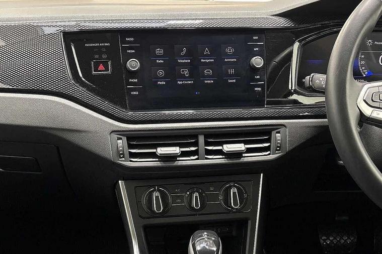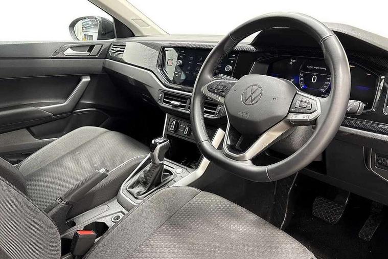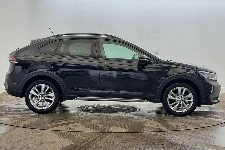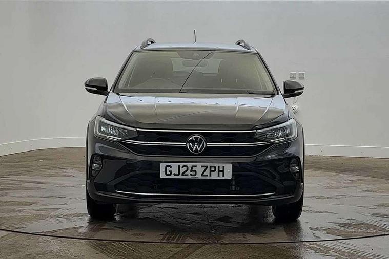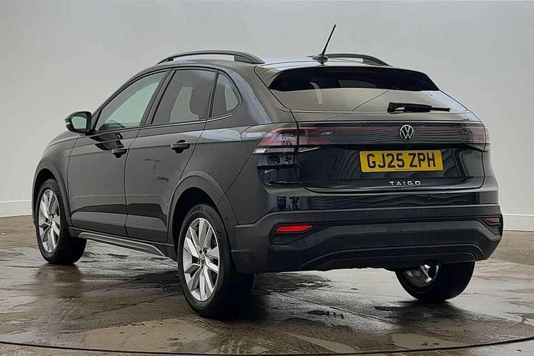 Adaptive cruise control, Advanced driver attention and drowsiness monitor, Dynamic road sign display, e-Call (emergency call), Power Steering, Rear view camera, Travel assist including emergency assist, Washer fluid level indicator, Wireless Charging including Bluetooth, Start-stop system with battery regeneration (recuperation - energy recovery during braking), WeConnect plus, Ambient lighting with logo projection, Aspherical driver's exterior mirror, Body coloured bumpers, Body coloured exterior mirror housings and door handles, Electric windows, External USB type C socket and charging sockets, Heat insulating glass windscreen, LED rear combination lamp, LED third brake light, Left convex exterior mirror, Power folding adjustable/heated exterior mirrors and front passenger exterior mirror lowering function, Rear fog light on one side, reversing light on both sides, Rear side wing doors, Rear wash/wipe with intermittent wipe setting, Side windows in heat-insulating glass, from B-pillar and rear window dark tinted, 'Slash/ Austin' Cloth upholstery, 12V socket in centre console, 2 front reading lights, 3 rear head restraints, 3 seat bench in 2nd row, Black carpets, Ceramique headliner, Child seat anchor for child seat system i-Size, 2x top tether and child seat anchor in front on front passenger side, Door and side trim panels in titan black, Driver and front passenger seat height adjustment, Front centre armrest, Handbrake lever handle in leather, Height and reach adjustable steering wheel, Leather trimmed gear knob, Leather wrapped multifunction steering wheel with paddle shift, Luggage compartment floor, Luggage compartment light, Lumbar support for driver's and front passengers seat, Seat covers in titanium black, Single front passenger seat, Split folding backrest with centre armrest and unsplit rear seat bench, Storage compartment under front seats, Sun visors with illuminated vanity mirrors, Titanium black instrument panel, Chrome Package - Taigo, Drivers assistance package - Taigo, Light and sight pack - Taigo, 2 x 3-point seatbelts/outer rear seats with ECE label, 3-point seat belts in front with pretensioner and height adjustment, 3-point seatbelt for centre rear seat, Driver and front passenger airbag with front passenger airbag deactivation, Driver and front passenger safety-optimised head restraints, Electronic stability control, Extended and predictive pedestrian/ cyclist protection, Front and rear disc brakes, Front curtain and side airbags with center airbag, Hill start assist, Manual rear child locks, Single tone horn, Tyre pressure loss indicator, Anti-theft alarm system with interior monitoring, backup horn, and towing protection, Keyless locking and starting system keyless access with safelock, Black (slush) Dashboard, Lava stone black gloss/matt decorative inserts in dash and front door panels, Low rolling resistance tyres,