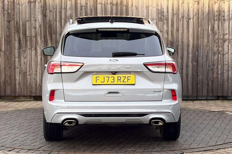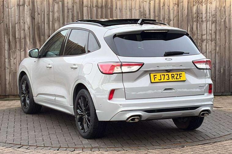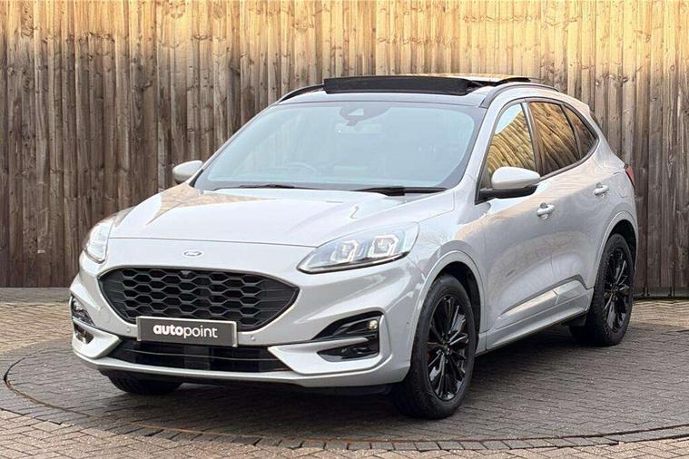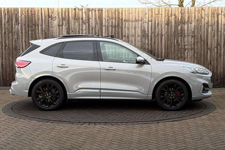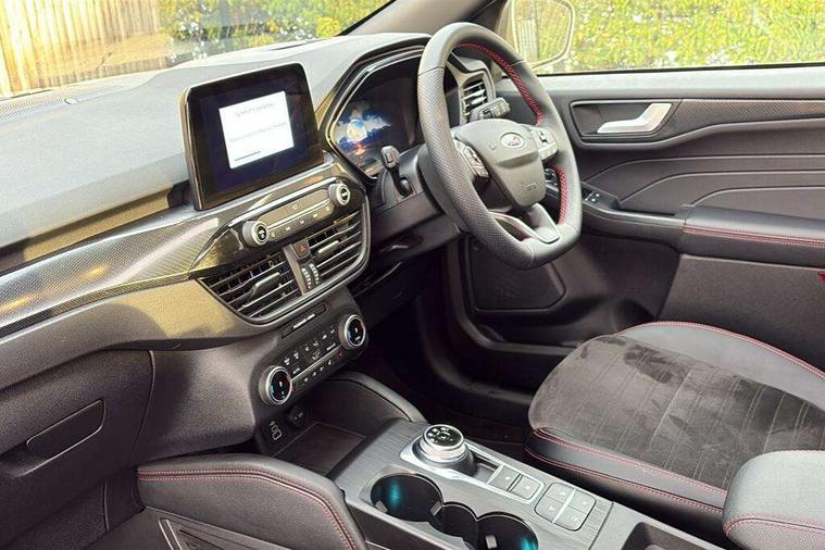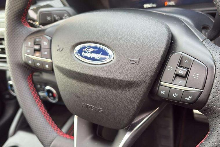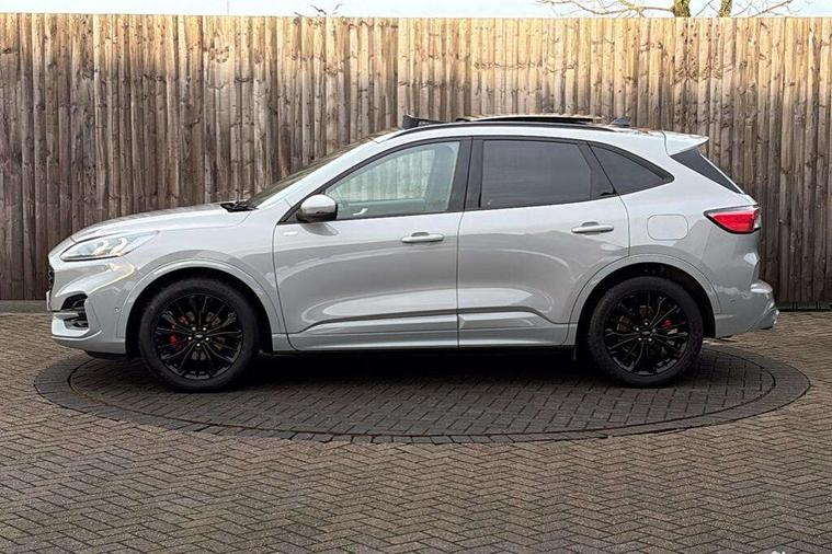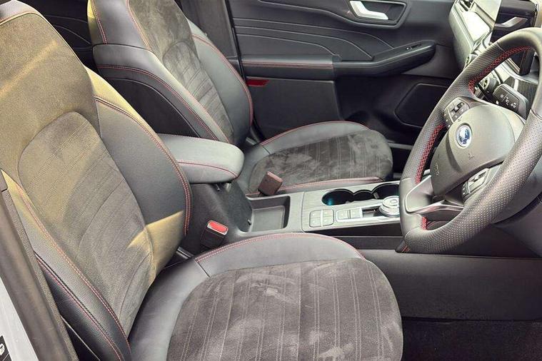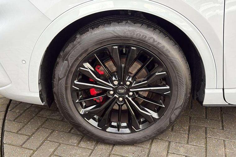 12.3" digital colour instrument cluster, Ford SYNC 3 with 8" TFT LCD touchscreen, App Link, andriod auto/apple carPlay, emergency assistance and navigation with Ford pass connect, Front and rear parking sensors, Hands free power tailgate, Lane keeping aid with lane departure warning, Power assist steering, Rear view camera, Selectable drive modes, Sports suspension, B&O premium audio system with 10 speakers and subwoofer, 2 USB ports, DAB radio/CD, Black roof rails, Exclusive paint, Large rear spoiler, LED daytime running lights, LED rear lights, Power folding heated door mirrors with puddle lights, Power front/rear windows with global close, Power opening panoramic roof, Quickclear heated windscreen, Rear privacy glass, Rear side wing doors, Rear wiper, Third brake light, 2nd row sliding seats with 60:40 split, Electronic automatic temperature control (EATC), Front and rear head restraints, Heated passenger and driver seats, Heated rear seats, Heated steering wheel, Partial premium touch Sensico with black cloth inserts and red stitching, Single front passenger seat, Driver assistance pack - Kuga with front camera system, Technology pack - Kuga with LED headlights, 3x3 point rear seatbelts, Electronic stability control (ESC) and ABS, Manual child proof rear door locks, Post collision braking, Pre collision assist with autonomous emergency braking, Red brake calipers, Keyless entry and Ford power start button (Keyless start),