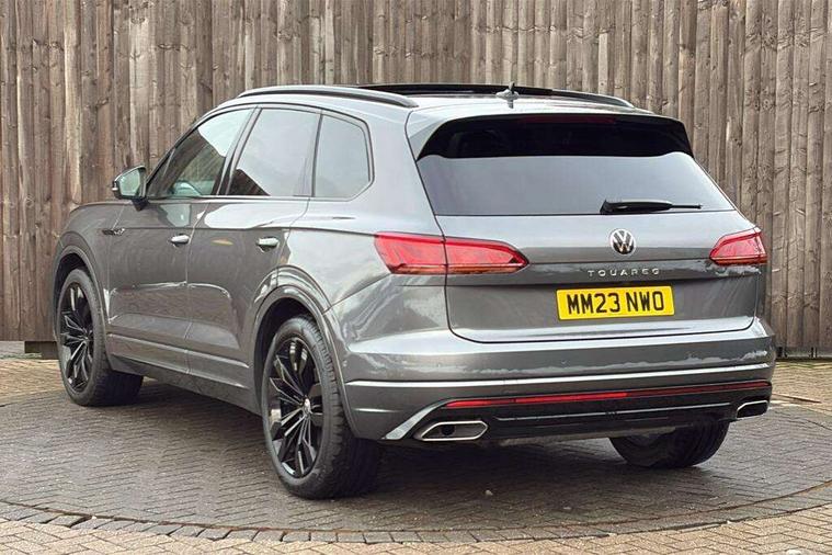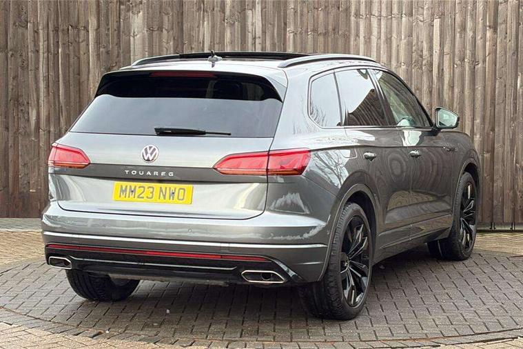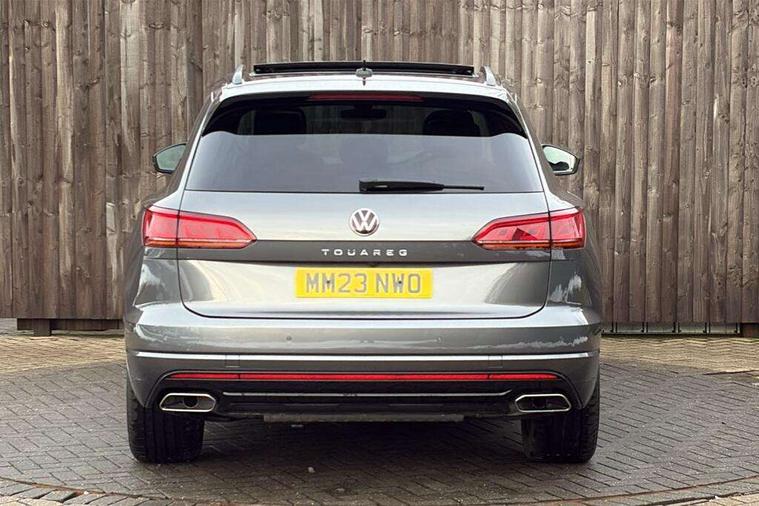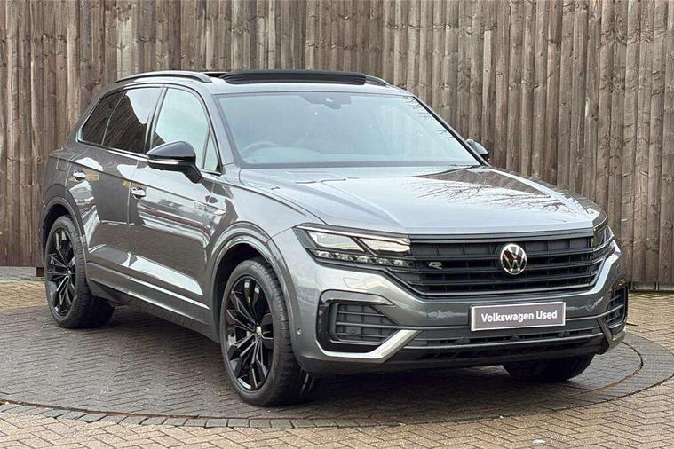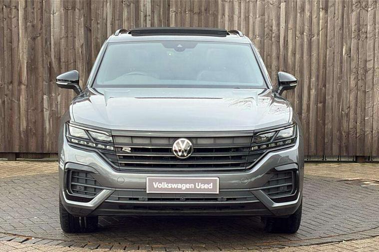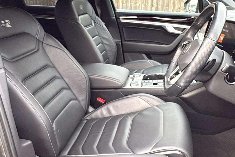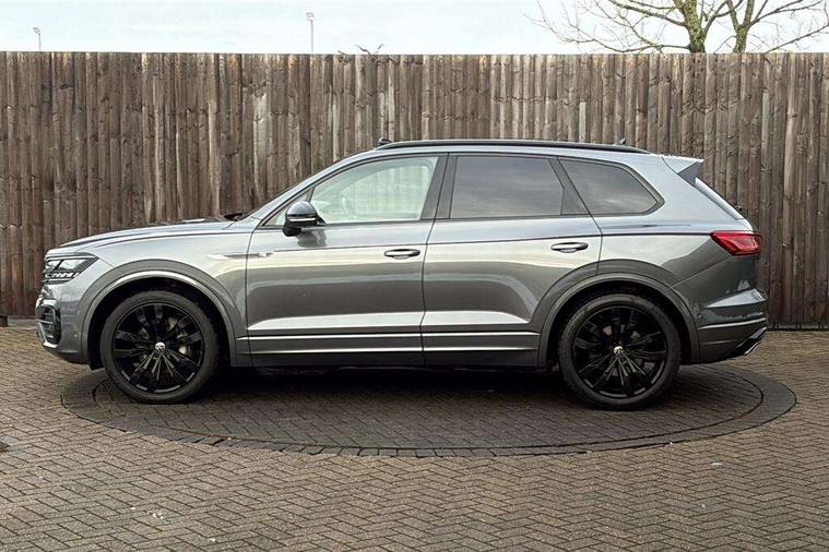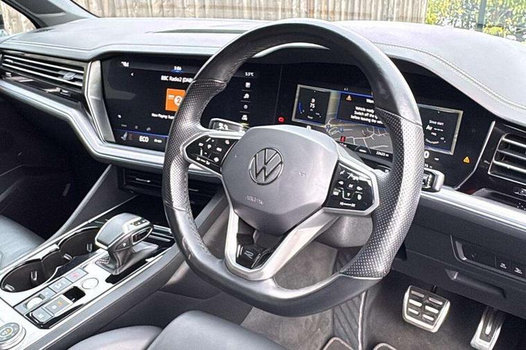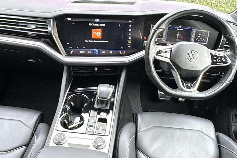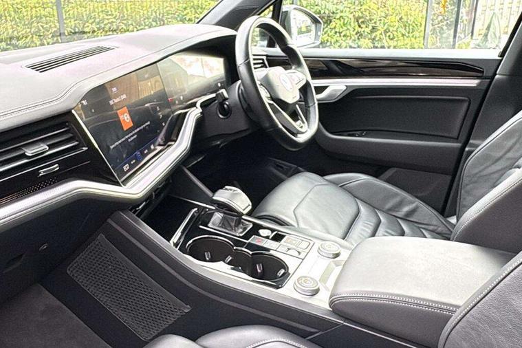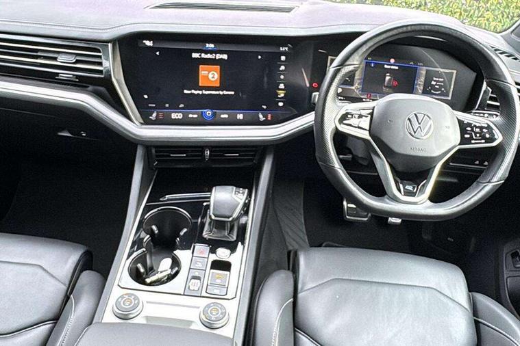 2D/3D map view, ACC - Adaptive cruise control with front assist, forward collision warning, distance monitoring, city emergency brake and speed limiter, Apple car play/Android Auto, Audible and visual fatigue detection system, Bluetooth hands free telephone connection, Car information display, Drive select with Damper control, Driver alert system, Driver profile selection, Dynamic road sign display camera controlled system with visual warning for traffic and road signs, eCall emergency system, Fully electric tailgate + keyless entry and start, Instrument cluster, MirrorLink, Multifunction camera, Multifunction computer premium with 7" colour display, One touch indicators with repeat function, Service interval indicator, Speed sensitive power steering, Start/stop system with regenerative braking, Tailgate power latch, Think blue trainer driver tips and journey analysis, Traffic sign recognition, Voice control system, Wireless Smartphone charger, 24 litre AdBlue tank, Torsen limited slip differential, DAB Digital radio, Dynamic navigation based on TMC+, Gesture control for infotainment system, Multi device interface (MDI) with illuminated USB-C connection, Music playback - MP3, WMA and AAC files, SD card slot, Simultaneous pairing of 2 compatible mobile devices, SMS functionality - read, compose and send SMS messages using touch-screen display, Title and cover art display, Volkswagen media control, Adaptive low beam for urban and motorway use, Auto dimming rear view mirror, Automatic coming/leaving home lighting function, Automatic headlights, Black anodised roof rails, Black door mirrors, Black rear diffuser, Black side window surrounds, Black upper and lower grille louvres extending into headlights and radiator grille, Body colour door handles, Body coloured wheel arches, C signature gloss black front air intake, Chromed tailpipe on the left and right integrated in the bumper with trapezoid design, Dusk sensor, Dynamic headlight range control, Electric front tilt/slide panoramic sunroof and fixed rear sunroof, Electrically power adjustable, heated, folding, auto dimming, front passenger exterior door mirror lowering function, Front and rear electric windows, Galvanised body, Gloss black finish B pillar, Gloss black rear diffuser, Headlight washers, Heat insulating darkened glass in side and rear windows, Heated windscreen washer jets, IQ.Light-LED matrix headlight, daytime running light with dynamic cornering light and indicator, LED 3rd brake light, LED rear fog light, LED rear number plate lights, Plastic scuff plates in door apertures, Poor weather light, Puddle lights, Rain sensor, Rear side wing doors, Rear wiper, 12V socket in front and rear centre console and boot, 2 Coat hooks on B pillar, 3 rear head restraints, 3 seat bench in 2nd row, 3 spoke sport heated leather multi-function sports steering wheel with gear shift paddles - generation 2, 4 way adjustable front head restraints, 4 way electric lumbar support for driver and front passenger, 4 zone climate control, 40:20:40 split folding slide/recline rear seat, B pillar vents, Black lower edge of door extending sills, Branded points of interest, Double sun visor for drivier and passenger with LED illuminated vanity mirrors, Electric luggage compartment cover, Folding rear centre armrest with 2 cupholders, Front + rear carpet mats, Front centre armrest with storage box, Gear shift indicator, Height/reach adjust steering wheel, Illuminated air conditioned glovebox, Isofix preparation for 2 rear child seats, Jack and tool kit, Leather trimmed gear knob with gloss black inlay/aluminum trim, Leatherette door trim, LED luggage compartment lighting, Load through provision, Luggage compartment with load lashing rings, Plastic loading edge protection, Rear seat remote release levers, Single front passenger seat, Soul black headlining, Stainless steel pedals, Innovision cockpit pack - Touareg, 3 point front seatbelts with pre-tensioners, ABS, Active bonnet, Automatic post collision braking system, Curtain airbags, Driver/Front Passenger airbags, EBD + Brake Assist, EDL, Electronic parking brake with auto hold, ESC with ASR, Front seat side impact airbags, Hill descent control, Hill start assist, Passenger airbag deactivate switch, Seatbelt warning lamp and buzzer, Three 3 point rear seatbelts, Two tone horn, Volkswagen roadside assistance, Warning triangle and first aid kit, Alarm with interior monitoring in cab, backup horn and towing protection, Child security locks for front and rear doors, Electronic engine immobiliser, Remote central locking, Black decorative trims on the side windows, High gloss black centre console,