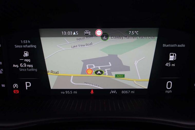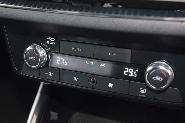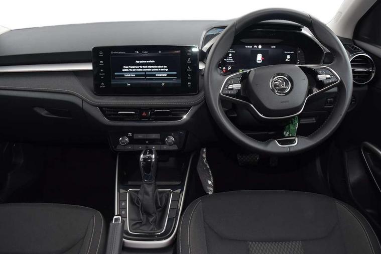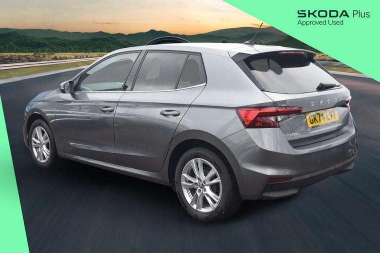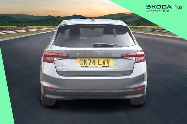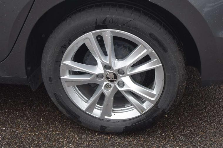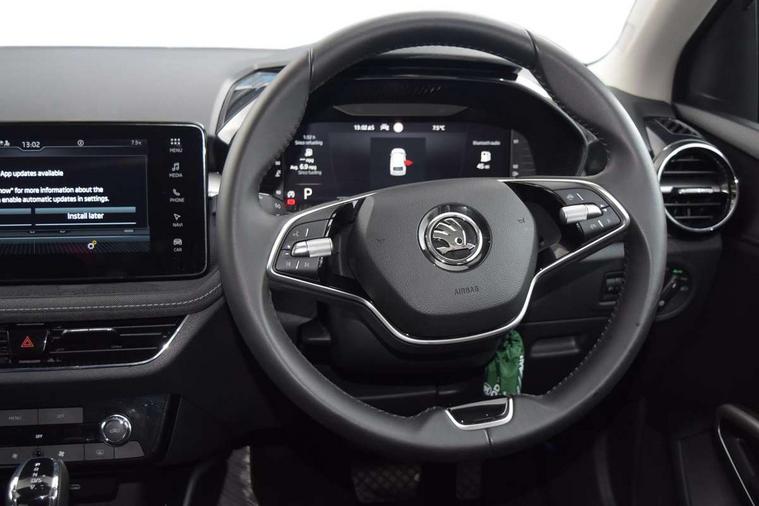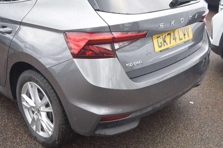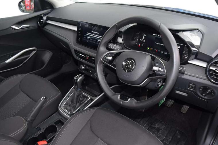Advanced driver attention and drowsiness monitor, Bluetooth connection, Electromechanical power steering, Exterior temperature gauge, Service interval indicator, Traffic sign recognition, Virtual cockpit with 10.25" colour display, Wireless SmartLink for Apple CarPlay and Android Auto, 6 Speakers (4 in front and 2 in rear), 9.2" colour display skoda navigation system with voice control and web radio, Auxiliary socket for external MP3 player, DAB digital radio reception, Auto dimming rear view mirror, Body colour door mirrors, Body coloured bumpers, Chrome window surround, Door mirror integrated indicators, Front and rear electric windows, Front window wiper intermittent control, Headlight range control - Automatic, Ice scraper in fuel cap, LED daytime running lights with coming and leaving home feature, LED rear lights, Privacy glass, Rear LED fog light, Rear side wing doors, Rear window wiper with washing nozzles, Roof mounted spoiler, SKODA tailgate lettering in chrome, Third brake light, 2 reading lights in front and 2 reading lights in rear, 3 rear headrests, Backrest split and folding, Central console with removable cup holder and storage box, Chrome handbrake release button, Comfort seats, Door sills with fabia badging, Dual zone air conditioning with climatronic electronic control, Fabric upholstery, Front centre armrest, Gearshift knob/handle in leather, Hand brake lever handle in leather, Height adjustable front headrests, Height adjustable front seats, Height adjustable steering wheel, ISOFIX and TopTether anchorage points to the outer rear seats, ISOFIX and TopTether on the front passenger seat, Luggage compartment lighting, Manually adjustable lumbar support in front seats, Metallic grey interior door handles, Pollen filter, Rear seat bench unsplit, Single front passenger seat, Storm grey headlining, Sun visors with mirror and airbag label on passenger side, Textile floor mats, Ticket holder, Umbrella in drivers door, 3-point height adjustable front seats belts with pretensioner and force limiter, Automatic warning lights in case of crash, Driver and passengers airbag with switch off function, e-Call+, ESC including ABS, MSR, ASR, EDS, HBA and XDS, Front and rear seat belt warning, FRONT ASSIST (AEB City and AEB Inter Urban), Front side airbags, Head airbags, Hill hold control, One tone horn, Pedestrian protection, Three rear 3-points safety seat belts with pretensioner and force limiter including stop function for outer rear seat belts, Tyre pressure monitoring system, Anti-theft alarm system including immobiliser, interior monitoring, backup horn, and towing protection, Central locking with radio remote control, interior controls, SAFE function and 2 foldable keys, Chrome edged air vents, Metallic grey central console cover, Metallic grey upper decorative trim, Satin black door and side trim panel in front, Textile microsuede grey lower decorative trim with art grey stitching, Anti-theft wheel bolts protection, Super-low rolling resistance tyres,