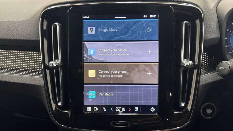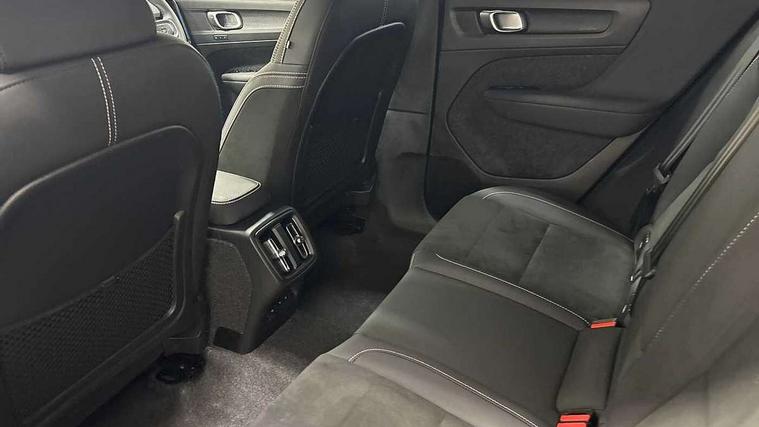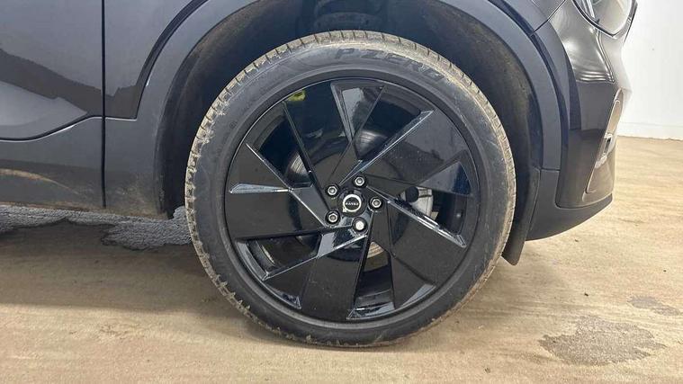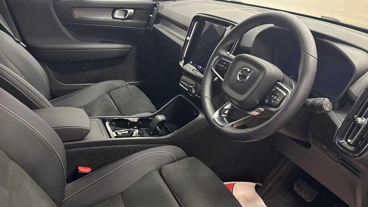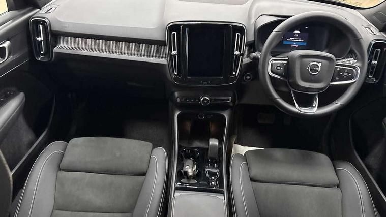 12.3" Progressive Driver Display, 9" centre console portrait touch screen, Adjustable steering wheel force, Android auto (Wired), Apple carplay (wired), Bluetooth handsfree system, Driver alert control, Driver assistance (pilot assist and adaptive cruise control), Driver awareness - Blind spot information system with steer assist, cross traffic alert with autobrake and rear collision warning and mitigation, E-call, Front park assist, Google automotive services - Enabled entertainment apps, navigation with google maps, voice recognition with google assistant, Hands free power tailgate, Intelligent speed assistance, Lane keeping aid, Oncoming Lane Mitigation, Rear park assist, Speed sensitive steering, Volvo cars services with app - Driving journal, emergency and breakdown call, engine remote start, remote door locking/unlocking and vehicle dashboard, Wireless/Inductive Mobile Phone Charging, Automatic transmission with start/stop and manual change functions, Dynamic chassis, DAB Digital radio, Steering wheel mounted remote controls, Adaptive brake lights with high level LED brake lights, Auto dimming feature for exterior door mirrors, Auto dimming interior mirror, Automatic headlamp levelling, Automatic LED Headlights + Active high beam incorporating daytime running lights, Colour coordinated auto folding and heated power door mirrors, Dark tinted windows - rear side windows and rear screen, Front aluminium tread plates, Front and rear electric windows, High gloss black front and rear skid plate, High gloss black front bumper deco, High gloss black front grille strikethrough and ironmark, High gloss black rear model, engine and volvo logo badges, High gloss black window trim, Home safe and approach lighting, Integrated roof rails in high gloss black, LED front fog lights, Puddle lights, Rain sensor with automatic windscreen wiper activation, Rear side wing doors, Rear wiper, Roof antenna, Roof spoiler, Visible VIN plate, 12V socket in front tunnel console and luggage compartment, 2-Zone electronic climate control with CleanZone air quality system and pollen filter, 3 seat bench in 2nd row, 3 Spoke tailored steering wheel with chrome trim, 60/40 versatile split folding rear seat, Centre console cupholders and storage, Charcoal headlining, Connect textile/microtech upholstery, Flexible load floor and grocery bag holder, Floor mats, Front cabin courtesy lights, Front door pocket, front cupholder, ambient front door, rear reading, rear courtesy, instrument panel and tailgate lighting, Front footwell illumination, Front headrests, Front reading lights, Front seat cushion extensions, Front side step illumination (under door), Glovebox bag hook, Heated front seats, Height adjustable passenger seat, Height/reach adjustable steering column, High gloss centre tunnel deco, Illuminated glovebox, Illuminated luggage compartment, Illuminated vanity mirrors + ticket holder, Integrated waste bin, Isofix attachments on outer rear seats, Load cover, Load protection net, Multi directional lumbar support for driver and passenger seat, Power driver seat with memory + exterior mirrors memory, Rear armrest with cupholders, Rear headrests, Single front passenger seat, Underfloor cargo storage, Climate pack without heated front seats - XC40, 3x3 point rear seatbelts, City safety with steering support with Pedestrian + cyclist + front collision warning with full auto brake and rear auto brake, Driver and passenger airbags, Drivers knee airbag, Electronic parking brake with auto hold, First aid kit, Front and outer rear seatbelt reminder and pretensioners, Front seats SIPS airbags, Hill descent control, Hill start assist, Inflatable curtain, Passenger airbag cut-off device, Power child locks on rear doors, Road sign information display, Run off Road Protection, SIPS (Side Impact Protection System), Slippery road and hazard light alert, Stability and Traction Control with Spin control, Engine Drag Control and Corner Traction Control, Tyre pressure monitoring system, Vehicle deceleration control with Anti-lock Brake System, Electronic Brake Distribution and Emergency Brake Assist, Warning triangle, WHIPS whiplash protection system - front, 2 x Key integrated remote control central locking including with deadlocking system and auto open/close windows, Anti-theft alarm including immobiliser/volume sensor + level sensor, Keyless drive includes keyless entry and keyless start, Locking wheel nuts, 20" 5 spoke high gloss black alloy wheels,