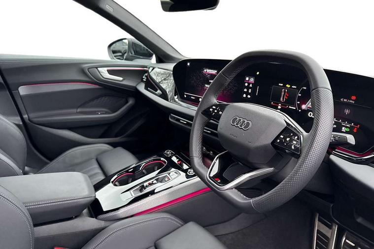 Adaptive cruise control, Advanced driver attention and fatigue montior, Audi application store, Audi assistant, Audi connect emergency call and service, Audi drive select, Audi smartphone interface, Audi virtual cockpit plus with 11.9" OLED colour display, Automatic start/stop system with coasting functionality, Camera based traffic sign recognition, Intersection assist, Lane departure warning, MMI navigation plus with high resolution 14.5" OLED touchscreen colour display, Park assist plus, Parking system plus with 360 display, Progressive steering with servotronic, Rear view camera, Swerve assist and turn assist, Traffic sign based speed limiter, Sports suspension lowered by 20mm, 2 USB-C ports in both the front and rear, Audi sound system impressive sound with 10 loudspeakers including centre speaker and subwoofer, 6-channel amplifier with a total output of 180 watts, DAB digital radio reception, Smartphone compartment with wireless charging, Aluminium window trims, Auto dimming rear view mirror, Body colour door mirrors, Door mirrors - electrically adjustable, heated, folding and auto dimming on both sides, Front and rear electric windows, Front door sill trims with aluminium inlays, illuminated with 'S' logo, High beam assist, LED headlights Plus incl. digital daytime running lights, turning light, all-weather light, motorway light, manouevring light and intersection light, LED rear lights pro incl. dynamic rear indicators and illuminated light strip with animated coming and leaving home function, LED third brake light, Privacy glass, Rear and side windows with heat insulating glass, Rear boot, Rear side wing doors, S Line badges on the front wings, S line bumpers, radiator grille and diffuser in phantom black and diffuser insert in matt anthracite, White rhombus logo projection light in exterior mirrors, Windscreen with acoustic glazing, 3 rear headrests, 3 seat rear bench, 3 spoke leather steering wheel with multi-function buttons with touch control, flattened on top and bottom, with S badging and contrast stitching, 3-zone automatic climate control, 40:20:40 split folding rear seat bench with centre armrest and cup holders, Comfort front centre armrest, Front and rear floor mats, Front seats with manual adjustment for position and 4-way electric lumbar support, Front sport seats with integrated headrest and S embossed logo, Headlining in black cloth, Heated front seats, i-Size child seat mounting on the front passenger side and outer rear seats, i-Size and top tether on the outer rear seats, Luggage compartment lid, electrically opening and closing, Manual steering column height and depth adjustment, Single front passenger seat, Stainless steel pedals and footrest, Steering wheel grips in perforated leather and shift paddles, Ambient lighting package plus - A5, 3x3 point rear seat belts, Driver airbag, Electric child safety locks, First aid kit with warning triangle and vests, Front emergency brake assist, Front passenger airbag, Front passenger airbag deactivation, Front side airbags with head airbag system and front interaction airbag, Hill hold assist, Seat belt monitoring with rear seat occupant reminder, Tyre pressure loss indicator, Anti theft alarm, Anti-theft wheel bolts, Keyless Go, Accent surfaces and control buttons in gloss black, Black dashboard with contrast stitching, Inlays in matt brushed aluminium with linear embossing, anthracite, Softwrap in leatherette with contrast stitching, Upper and lower interior elements in leatherette, Tyre repair kit,