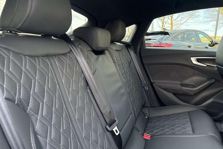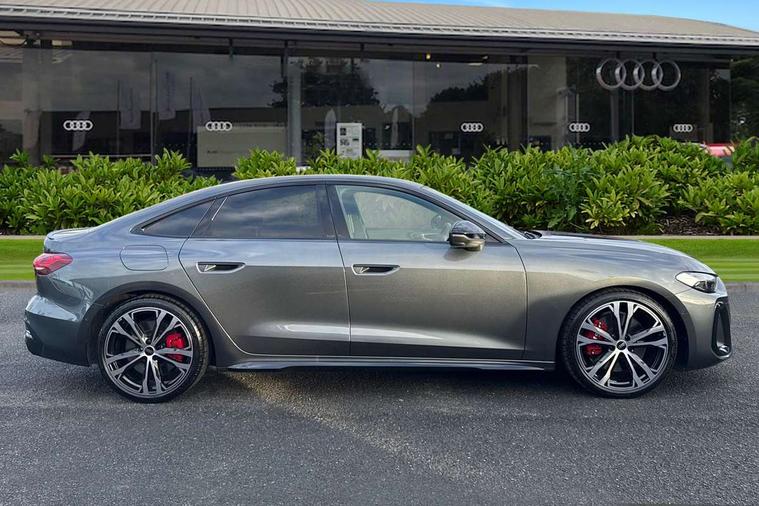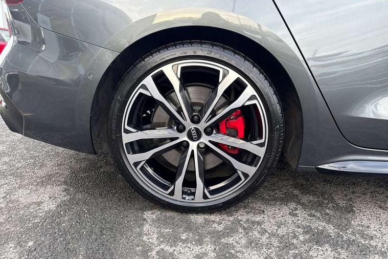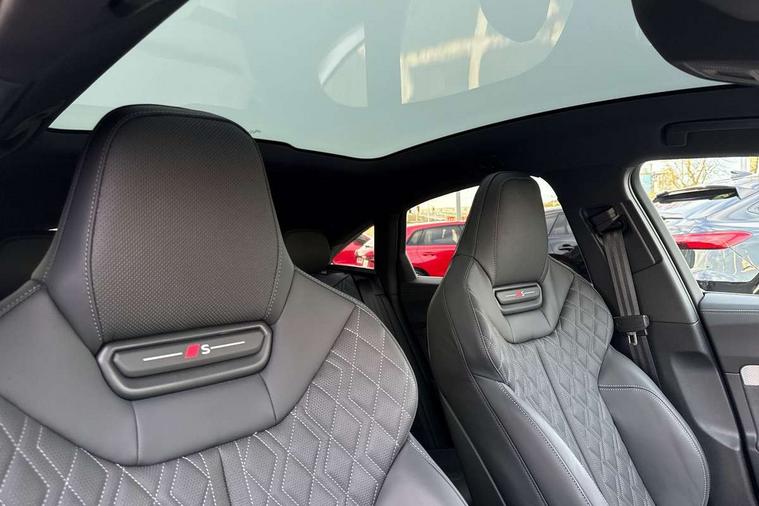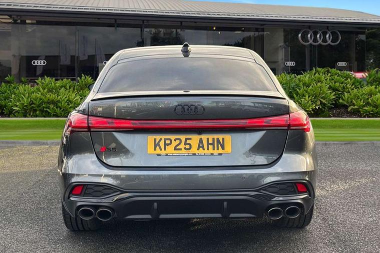 Adaptive cruise assist plus with steering intervention, Advanced driver attention and fatigue montior, Audi application store, Audi assistant, Audi connect emergency call and service, Audi drive select, Audi smartphone interface, Audi virtual cockpit plus with 11.9" OLED colour display, Automatic start/stop system with coasting functionality, Camera based traffic sign recognition, Garage door opener, Intersection assist, Lane change assistant with exit warning system, rear cross traffic alert and rear turn assist, Lane departure warning with emergency assist, MMI 10.9" front passenger touch display, MMI navigation plus with high resolution 14.5" OLED touchscreen colour display, Park assist plus, Parking system plus with 360 display, Progressive steering with servotronic, Swerve assist and turn assist, Top view camera, Traffic sign based speed limiter, Quattro with sport differential, S sports suspension with damper control lowered by 20mm, 2 USB-C ports in both the front and rear, DAB digital radio reception, Smartphone compartment with wireless charging, Aluminium window trims, Auto dimming rear view mirror, Black door handles, Black roof rails, Dark chrome-plated tailpipe trims, Digital OLED tail lights including communication light, Door mirrors - electrically adjustable, heated, folding and auto dimming on both sides, Front and rear electric windows, Front door sill trims with aluminium inlays, illuminated with 'S' logo, Headlight cleaning system, High beam assist, LED daytime running lights, LED third brake light, Matrix LED headlights with eight light signatures selectable via the MMI or the myAudi app, Panoramic glass roof with switchable transparency, Privacy glass, Rear and side windows with heat insulating glass, Rear side wing doors, Rear wash/wipe, Red S rhombus badging with S lettering on rear, S bumpers, radiator grille and diffuser in titanium matt black and diffuser insert in matt silver, White rhombus logo projection light in exterior mirrors, Windscreen with acoustic glazing, 3 rear headrests, 3 seat rear bench, 3 spoke leather steering wheel with multi-function buttons with touch control, flattened on top and bottom, with S badging and contrast stitching, 3-zone automatic climate control, 40:20:40 split folding rear seat bench with centre armrest and cup holders, Comfort front centre armrest, Electric steering wheel adjustment, Electrically adjustable front seats, Front and rear floor mats, Front sport seats plus with integrated headrest and S embossed logo, Headlining in black cloth, Heated front and outer rear seats, Heated steering wheel, i-Size child seat mounting on the front passenger side and outer rear seats, i-Size and top tether on the outer rear seats, Luggage compartment lid, electrically opening and closing, Memory function for driver seat, Pearl Nappa leather upholstery, Pneumatically adjustable lumbar support, Single front passenger seat, Stainless steel pedals and footrest, Steering wheel grips in perforated leather and shift paddles, Ventilation seat and massage function for the driver and front passenger, Black styling package plus - A5, Sound and vision pack - A5, 3x3 point rear seat belts, Acoustic vehicle alerting system, Convenience key with safelock, Driver airbag, Electric child safety locks, First aid kit with warning triangle and vests, Front emergency brake assist, Front passenger airbag, Front passenger airbag deactivation, Hill hold assist, Occupant detection in rear seat area, Proactive passenger protection system for front, sides and rear, Red brake calipers, Seat belt monitoring with rear seat occupant reminder, Side airbags in front and rear with head airbag system and front interaction airbag, Tyre pressure loss indicator, Anti theft alarm, Anti-theft wheel bolts, Keyless Go, Accent surfaces and control buttons in gloss black, Black dashboard with contrast stitching, Softwrap in Dinamica with contrast stitching, Upper and lower interior elements in dinamica microfiber, 20" 5 twin spoke design Audi Sport alloy wheels in metallic black and gloss turned finish, Tyre repair kit,