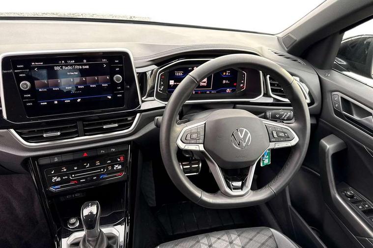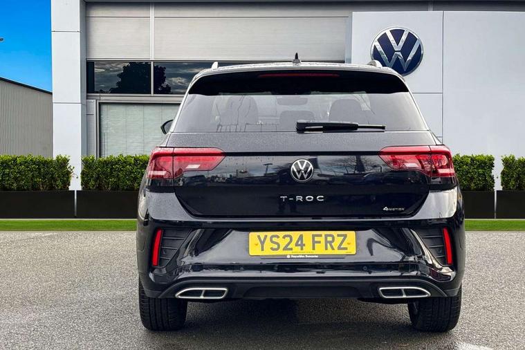 10.25" Digital cockpit pro, Advanced driver attention and drowsiness monitor, Bluetooth mobile phone interface, Emergency call service, Lane keeping system Lane Assist, Modified key software - reduce switch off time for key status change to Long no motion, Online services, Park assist including front and rear parking sensors, Service interval indicator, Tailgate/trunk lid release from outside, Think blue trainer driver tips and journey analysis, Warning sound and light for front seatbelts unfastened, Wireless app connect, Battery regeneration during braking, Four wheel drive, Start/stop function with battery regeneration, Diversity antenna for FM reception, Music playback - MP3, WMA and AAC files, Premium USB cable in choice of either Apple or Android smartphone compatibility, SD card slot, Simultaneous pairing of 2 compatible mobile devices, Title and cover art display, We Connect and We Connect Plus functionality, 3rd brake light, Auto dimming interior rear view mirror, Automatic hazard lights activation under emergency braking, Automatic headlight control with LED separate daytime running lights with coming/leaving home function, Electrically adjustable and heated door mirrors, Extended roof spoiler, Exterior mirrors aspherical on driver side, convex on front passenger side, External USB type C socket and charging sockets, Front windscreen wiper with intermittent wipe and 4 position delay, Heated rear window, LED rear combination lamps, LED rear number plate lights, Power windows with comfort operation and circuit breaker, R-Line design body coloured bumpers, Rain sensor, Rear exhaust tailpipe, Rear fog light on one side and reversing lights on both sides, Rear side wing doors, Rear wash/wipe with intermittent wipe setting, Remote electrically foldable door mirrors, puddle lights and reverse activated passenger's door mirror, 12V power socket in centre console, 3 rear head restraints, 3 seat bench in 2nd row, 4 load lashing points in luggage compartment, Air care climatronic air conditoning system with active combination filter and 2-zone temperature control, Black roof lining, Chrome plated radiator grille inserts, air vent surrounds and light switch surrounds, Door and side trim panel with leatherette insert, Front + rear carpet mats, Front centre armrest, Front cupholders x 2, Front footwell illumination, Front reading light, Front scuff plates with R Line logo, Front seat back storage pockets, Glove compartment door with light, Instrument lighting, white adjustable panel illumination, Interior ambient lighting and surround lighting, Interior light delay, Isofix child seat preparation, Leather gearshift handle, Load-through provision with cup holder when folded down ('Unsplit rear seat bench, split folding backrest, with centre armrest), Luggage compartment lighting, Single front passenger seat, Stainless steel pedals, Storage compartment in left and right luggage area, Storage compartment in rear doors, Storage compartments in driver and front passenger doors, Sunvisors with illuminated vanity mirrors, Variable boot floor, height adjustable and removable, Driver assistance pack without proactive passenger protection - T-Roc, 3 point height adj front seatbelts + pretensioners, 3 point seatbelts in outer rear with ECE label, ABS, Child locks on rear doors, City emergency braking and pedestrian monitoring, Driver and front passenger airbag with front passenger airbag deactivation, Driver and front passenger safety-optimised head restraints, Drivers seatbelt reminder, Electronic parking brake, Electronic Stability Control (ESC) inc EDL (Electronic Differential Lock) and ASR (Traction Control), Front and rear passengers curtain airbag system including front side airbags, Hill start assist, Predictive pedestrian protection, Rear disc brakes, Two tone horn, Tyre pressure loss indicator, Volkswagen roadside assistance, Anti-theft alarm system with interior monitoring, backup horn, and towing protection, Remote central locking with SAFELOCK, radio remote control with 2 remote control folding keys, Trims for alloy wheels,