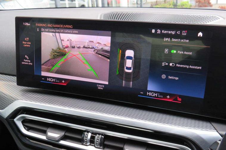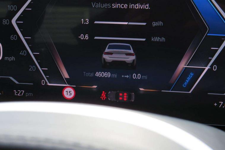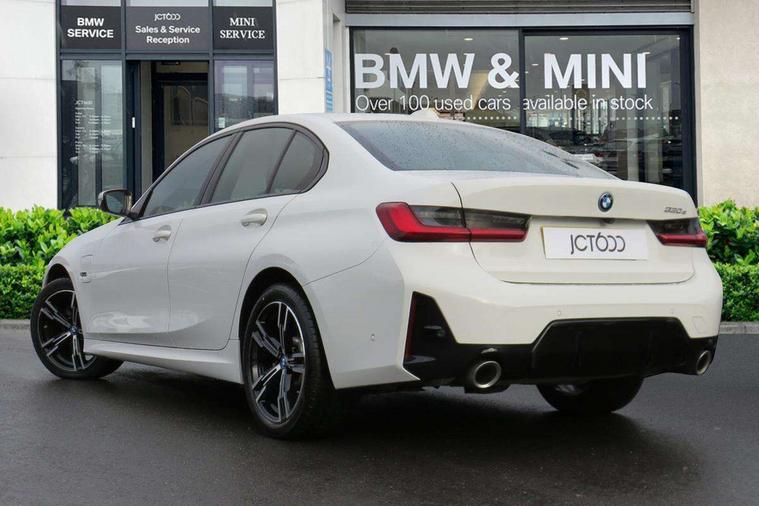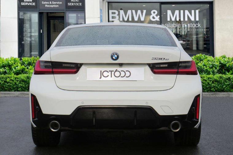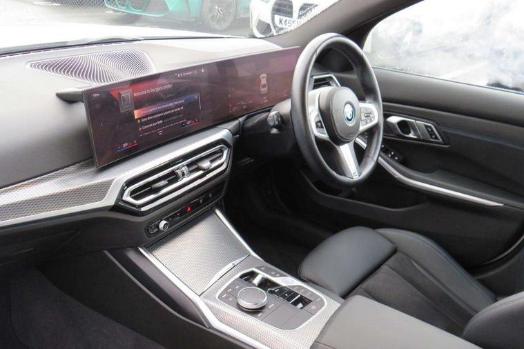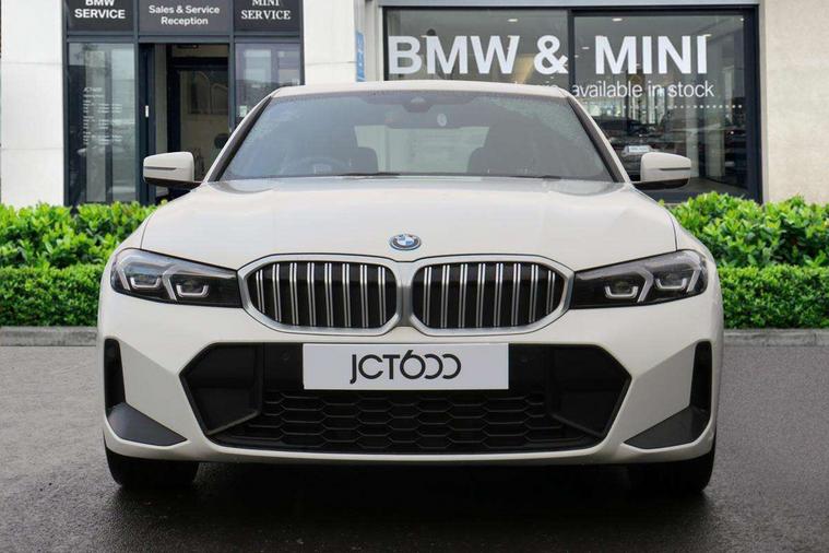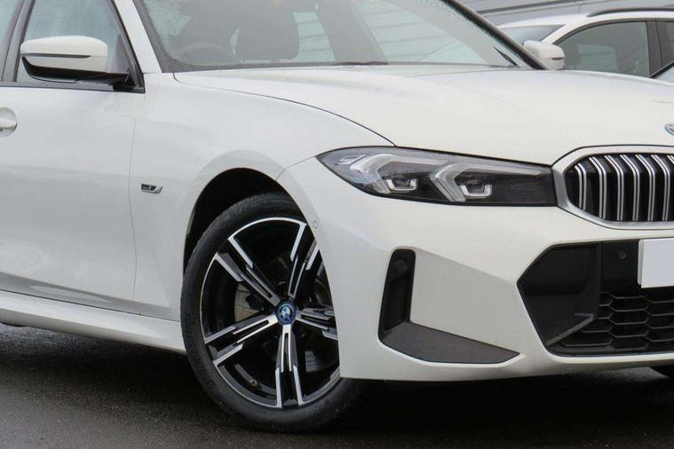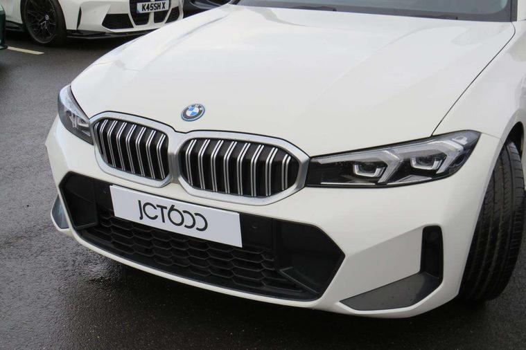 Active guard plus, Attentiveness assist, Automatic Start/stop button, BMW iDrive, BMW Teleservices, Condition based service, ConnectedDrive Services, Driving experience switch, Live cockpit plus with Navigation + 12.3" instrument display + 14.9" display, Intelligent voice assist, 2 USB, 4G LTE connect, Oil sensor for level and grade, PAS, Preparation for driver assistance, Shifting point display, Smartphone integration, Charging cable - Mode 2, Double joint spring strut front axle, Fuel tank breather system, Sport automatic transmission with steering-wheel mounted gearshift paddles and launch control, Standard suspension, DAB tuner, "Electrified by i" exterior badging on charging flap, 3rd brake light, Acoustic glazing, Auto dimming rear view mirror, Automatic headlight beam throw control with load dependent regulating reaction, dynamic compensation of braking dive and acceleration squat, BMW emblem, engine compartment lid and tailgate, Body colour roof fin, Door sill strips, Electric windows - front and rear, with open/close fingertip control, anti-trap facility and comfort closing, Follow me home headlight function, Front and rear bumper system with replaceable deformation elements, Front apron plastic in body colour, Fuel filler flap - right rear in body colour, Heated washer jets, Illuminated bow type door handles in body colour drivers side with door lock, Interior rear view electrochromatic mirror with automatic anti dazzle function, LED headlights with LED daytime running lights and LED turn indicator, LED rear lights, Licence plate panel integrated into front bumper and tailgate, Matt black B-pillar finsher, Matt black window recess cover, Model designation on right side of tailgate, One piece front bumper cover including towing eye cover in body colour, Rain sensor with automatic headlight activation, Rear boot, Rear side wing doors, Reversing lights, Side frame decorative moulding black matt, Visible exhaust tailpipe finisher, Welcome lights in interior and door handle area, 12V power socket in front storage compartment, 2 front cupholder in centre console with clamping elements and matt black inlay, 3 seat bench in 2nd row, 3 zone automatic air conditioning, 40:20:40 split folding rear seat with loading system, Anthracite headlining, Armrest integrated in front and rear door trim + front centre console armrest, Battery in luggage compartment, BMW ID, Cruise control operation in steering wheel, Driver backrest width adjustment, Folding rear centre armrest with 2 cupholders, Front and rear door exit lighting (left / right), Front and rear footwell lighting, Front and rear headrests, Front and rear reading lights, Front and rear velour floor mats, Front sport seats, Heated front seats, Height adjustable mechanically and infinitely variable steering column, Illuminated armrest storage compartment, Illuminated glove compartment, Illuminated luggage compartment, Lashing eyelets in luggage compartment, LED ambient lighting with welcome carpet light, M Sport multifunction leather steering wheel, Make-up mirror lights, Single front passenger seat, Standard seat for driver and passenger with manual adjustment, Sunvisors with vanity mirrors and ticket pocket, Toolkit located in luggage compartment, Connected pack professional - 3 Series Saloon/Touring, Interior and exterior mirror pack - 3 Series Touring/Saloon, M Aerodynamics package - 3 Series Saloon/Touring, M sport exterior styling pack - 3 Series Saloon/Touring, Storage compartment pack - 3 Series Saloon/Touring, 3x3 point rear seatbelts, BMW emergency call, Child locks on rear doors, Crash sensor activating of airbags, Unlocking doors, hazard warning lights, interior light, safety battery terminal, Driver and front passenger with seat occupancy detection for driver's and passenger side, Driver and passenger side airbags, body protection at side and airbags deploy from seat backrests, Dynamic brake control, Dynamic stability control + (DSC+) - Anti-lock Braking System (ABS) with brake assist and cornering brake control + Automatic Stability Control (ASC), Dynamic Traction Control - DTC, Electric parking brake including automatic hold function and automatic release of the parking brake when driving off, Electronic differential lock control (EDLC), Head airbags in 1st and 2nd row, head protection at side, curtain airbags open from headliner above 1st and 2nd row, Side impact protection, Tyre pressure monitoring with three level warning strategy, Ventilated front and rear disc brakes, Warning triangle and first aid kit, Alarm system, Centre lock switch, Closing system with central locking, Electronic vehicle immobiliser,
