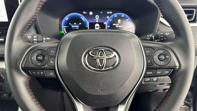 12.3" Digital Combimeter, Analog tachometer, Android Auto, Bluetooth system, Cyclist Detection, Digital speedometer, Drive mode selector, Driver attention alert system, eCall emergency call system, ECO-driving indicator, Electric power steering, EV audible alert, Front parking sensors, Full range intelligent adaptive cruise control, Hybrid system indicator, Lane departure alert with steering control, Lane trace assist, Lights on warning, Memory on adjustable speed limiter, MirrorLink, My T Connected services, Night Time Pedestrian Detection, Power boot opening and closing, Rear parking camera, Rear parking sensors, Remote boot door release in cabin, Remote boot door release in key, Road sign assist - RSA, Smart entry and push button start, Smartphone hazard lights notification, Tailgate, Toyota smart connect navigation, Traffic sign recognition, Trip computer, Voice control system, 6.6 kw fast charger, 7.5m cable with home charging plug, Vehicle Stability Control (VSC), 10.5" Toyota smart connect multimedia with wireless smartphone integration incl apple car play, 6 speakers, Auxiliary socket for external MP3 player, Digital audio broadcast (DAB)+, Gloss black surround on multimedia display, Multimedia Road Events, Rear USB connection, Toyota touch media system, USB in front armrest, Adaptive automatic high beam, Anti-jam protection on power windows, Auto dimming interior rear view mirror, Auto up and down function on power windows, Automatic headlights, Automatic wipers, Automatically retractable door mirrors, Black door moulding, Black front bumper, Black painted upper front grille, Black rear bumper, Black rear under-run, Black roof rails, Body colour door handles, Body colour rear roof spoiler, Body coloured door mirrors, Body coloured Shark-fin antenna, Chrome window surround, Dual exhaust pipes, Electric adjustable door mirrors, Electric heated door mirrors, Emergency brake-light signal (EBS), Follow me home headlights, Front wipers with variable intermittent facility, Honeycomb upper front grille, LED daytime running lights, LED dual beam projector headlights, LED front fog lights, LED front light guide, LED High mounted stop lamp, LED Indicators, LED rear brake lights, LED rear combination lights, PHEV badge in rear, Power front windows, Power rear windows, Privacy glass, Rear side wing doors, Rear windscreen defogger, Rear wiper, Silver front under-run, Smartphone remote power window operation, Trailer sway control, Turning signal integrated indicators in door mirrors, 1.5L front and rear bottle holder, 12 volt front socket, 12V power outlet - Boot, 220v power socket in boot, 2x Rear coat hooks, 3 rear headrests, 3 seat bench in 2nd row, 60/40 split fold rear seat back, Adjustable speed limiter switch on steering wheel, Array microphone, Black roof lining, Clean air filter, Cloth upholstery, Driver and front passenger personal light, Driver and front passenger Whiplash Injury Lessening seats, Driver and passenger seatback pockets, Driver and passenger sunvisors with illuminated vanity mirrors, Dual sided deck board in boot, Dynamic sports seats, Energy saving heat pump, Folding rear centre armrest, Front and rear cup holders, Front centre armrest, Front headrests, Front leather armrest, Front/rear roof mounted assist grips, Gloss black surround on centre console, Heated driver and front passenger seats, Heated rear seats, Illuminated entry system, Isofix child seat preparation, Leather gear shift with chrome surround, LED boot light, LED centre room light, Lockable glovebox, Manual telescopic and tilt 3-spoke nappa leather steering wheel, Manually reclining and sliding front passenger seat, Multimedia switches on steering wheel, Pollen filter, Power height-adjustable sliding reclining and lumbar support for driver seat, Rear console box, Rear door armrests, Rear passenger air vents, Rear view display in display audio screen with dynamic guide lines, Reclining rear seats, Remote dual zone automatic air conditioning, Retractable tonneau cover, Satin chrome interior door handles, Single front passenger seat, Sunglasses holder, Telephone and voice recognition switches on steering wheel, White ambient lighting in footwell, White ambient lighting on front cup holders, White ambient lighting on open tray, 3x3 point rear seatbelts, ABS/EBD, Acoustic vehicle alerting system, Adjustable front driver and passenger seat belt extender, Brake assist function, Brake hold function, Child proof door locks, Collision mitigation braking system, Driver/Front Passenger airbags, Driver/front passenger side airbags, Drivers knee airbag, Electronic parking brake, Electronic Stability Programme (ESP), Front and rear curtain airbags, Front and rear seatbelt reminder, Front passenger airbag detector, Hill start assist, Passenger airbag cut-off device, Pedestrian detection, Pre collision system, Seatbelt pretensioners with load limiters, Supplemental restraint system (SRS) airbags, Toyota safety sense 2, Traction control, Tyre pressure warning, Glass-breaking alarm sensors, Immobiliser, Intrusion alarm, Light - on and Key in reminder, Motion sensor alarm, Power door locks, Remote central locking, Smartphone remote door lock, Speed sensitive auto door locking, Tilt detection sensors, Black centre air vent surround, Gloss black centre console, Open tray on passenger dashboard, Soft-touch black upper dashboard with silver insert, Soft-touch texture on lower dashboard, 18" 5 spoke grey machined face alloy wheels, Full size spare wheel,