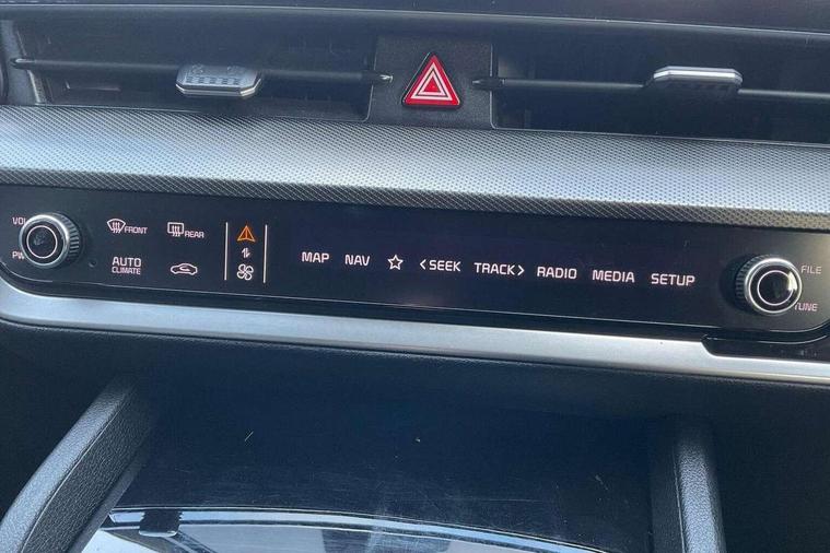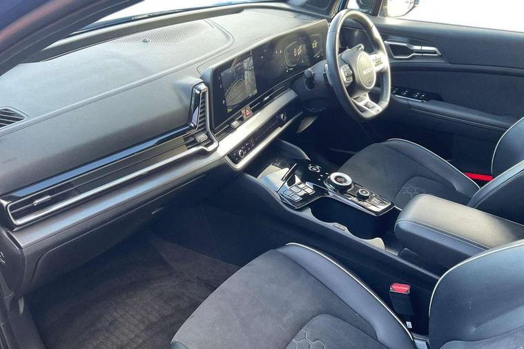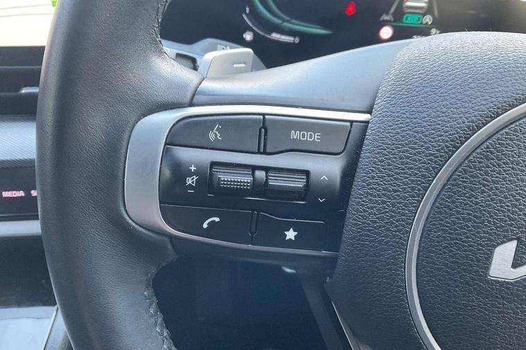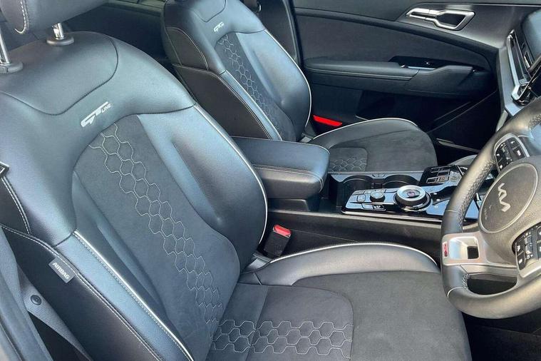 12.3" Display with navigation, 4.2" supervision colour cluster display, Apple car play/Android Auto with voice control, Drive mode selector, E-call, Forward collision avoidance assist (FCA) - city/pedestrian/cyclist/junction covering, Front and rear parking sensors, Highway Driving Assist (HDA), Intelligent speed limit assist, Kia Connect (UVO), Lane Following Assist (LFA), Lane keep assist, Low washer fluid warning, Rear view monitor, Reversing camera system integrated into centre fascia screen, Smart cruise control with stop and go functionality, Speed sensitive power steering, Trip computer, Windscreen washer level indicator, Intelligent Stop and Go, 6 speaker audio system, Bluetooth audio streaming, DAB Radio with MP3, Rear USB port, Steering wheel mounted audio controls, USB C type charging ports on centre console, USB C type charging ports on side of front seats, USB port for connection of a media device, All round electric windows with drivers and front passenger auto up/down function, Automatic headlight control system, Automatic window defogger, Backlite glass heated with timer, Body colour and black bumper with silver accents, Body colour exterior door handles, Body colour radiator upper garnish and door garnish, Electrically adjustable/heated/folding door mirrors with LED indicators, Front and rear chrome skid plates, Gloss black door mirrors, Gloss black radiator grille, Gloss black side sill and wheel arch body mouldings, Glossy black roof rack, High beam assist, Interior electrochromic mirror, LED daytime running lights, LED front fog lamps, LED headlamps (low and high beam - MFR type), LED High mounted stop light, LED rear combination lamp, Rain sensing wipers with aero blades, Rear fog lamp, Rear privacy glass, Rear side wing doors, Rear spoiler, Rear wiper, Satin finished beltline, Trailer stability assist, 12V power socket in front centre fascia and luggage compartment, 2nd row personal lamps, 3 seat bench in 2nd row, 3 x passenger assist grips, 40/20/40 split folding rear seat, All-round height adjustable headrests, Black headlining, Centre console storage box, Cupholders in rear armrest, D-Shaped sports leather steering wheel and perforated inserts with GT-Line logo, Door courtesy lamps, Drink holder at centre armrest, Driver and front passenger side sunvisors with illuminated vanity mirrors, Driver's seat manual height adjust, Drivers seat power lumbar support, Front and rear door storage, Front seat and rear pockets, Front/rear centre armrests, Gear shift indicator, Glovebox illumination, Interior door lock/unlock function, ISOFIX Child seat top tethers and anchor fixings outer rear seats, Luggage area light, Luggage area load cover, Luggage net with hooks, Metal paint interior door handles, Overhead console lamp, Paddle shift controls, Rear coat hooks, Single front passenger seat, Sports pedals, Suede leather upholstery, Three zone climate control, Tilt/telescopic adjustable steering wheel, Ventilation ducts to rear compartment, Active front headrests, All round 3-point seatbelts, Anti-lock braking system (ABS), Dual front side airbags, Dual horn, Electronic parking brake, Electronic stability control with downhill brake control, Front passenger airbag cut-off switch, Front seatbelt pretensioners + load limiters, Height adjustable front seatbelts, Hill start assist control (HAC), Impact sensing auto door unlocking, Multi collision brake assist, Rear door child safety locks, Rear seat alert system, Traction control, Twin curtain airbags, Twin front airbags, Tyre pressure monitoring system, Advanced anti-theft system including immobiliser and alarm, Door deadlocks, Engine Start/Stop Button with Smart Entry System, Locking wheel nuts, Speed sensitive auto door locking, Visible vehicle identification number, Aluminium pattern finish centre fascia and door garnish, 19" Alloy wheels, Tyre mobility kit,
