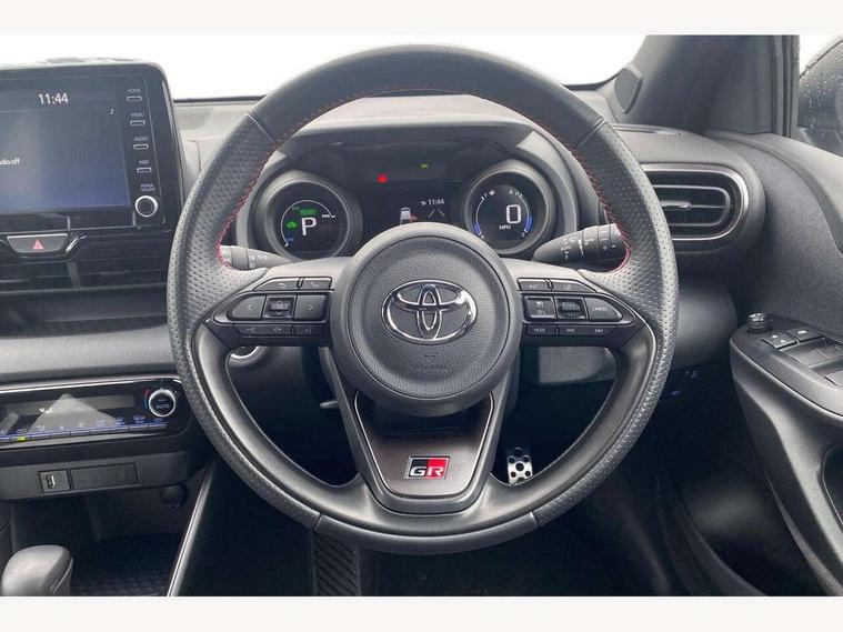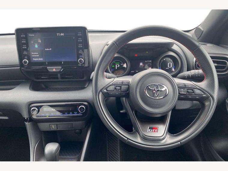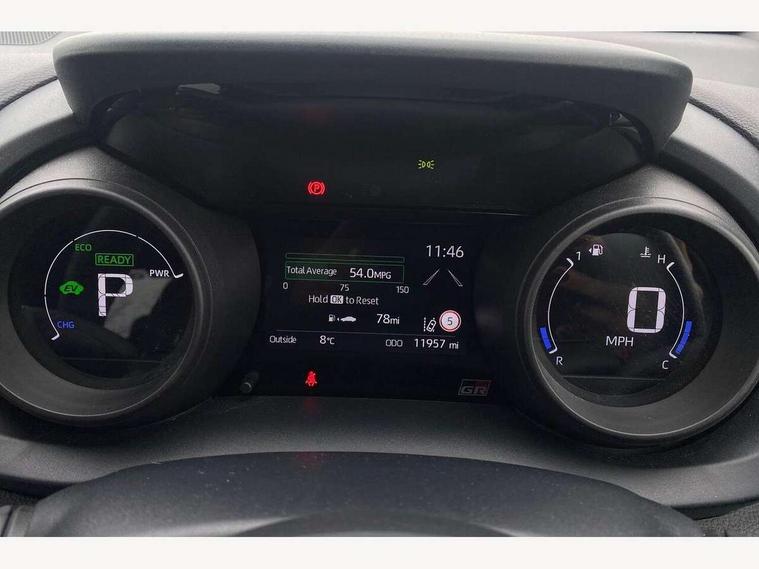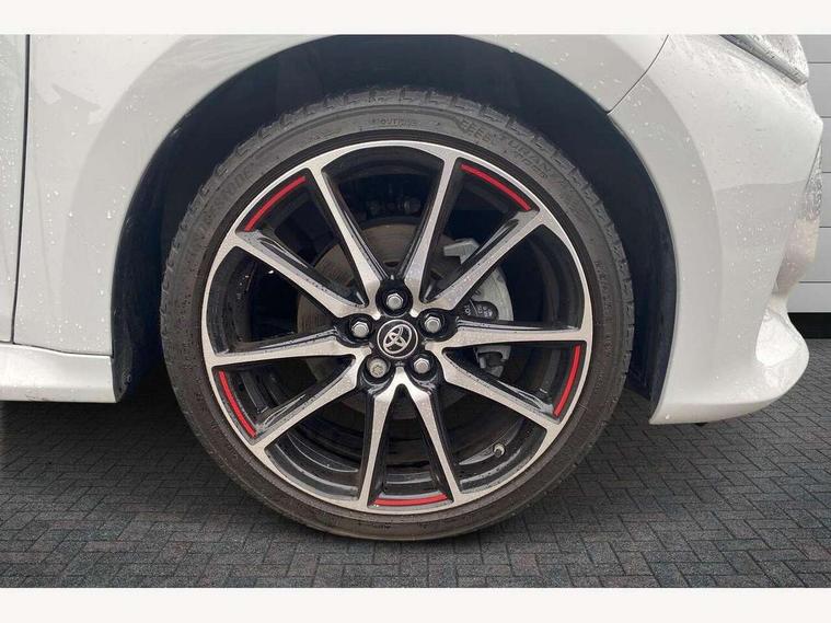 Adaptive cruise control, Adjustable speed limit with speed warning, Bluetooth connectivity, Colour binocular inspired displays with digital speedometer, E-call, Electric power steering, Hybrid energy display, Multi information display switches on steering wheel, Reversing camera, Smartphone integration with Apple CarPlay and Android auto, Tailgate, Voice recognition, Vehicle Stability Control (VSC), 6 speakers, 8" Multimedia display touch screen, Toyota Touch 2 with DAB, USB connection, Acoustic windscreen glass, Auto windscreen wipers, Automatic headlights, Body coloured door mirrors, Dark chrome lower front grille, Electric adjustable heated door mirrors, Follow me home headlights, Front auto power windows with anti jam protection, Full LED rear lights, LED daytime running lights, LED front fog lights, LED front light guide, LED Headlights, LED High mounted stop lamp, LED Indicators, LED rear light guide, Manual headlight levelling, Painted chequered front grille with hot stamp in mesh design, Rain sensor, Rear auto power windows with anti jam protection, Rear privacy glass, Rear side wing doors, Rear spoiler, Rear wiper, Shark fin antenna, Turning signal integrated indicators in door mirrors, Variable front intermittent wipers, 3 adjustable rear headrests, 3 seat bench in 2nd row, 3 spoke leather steering wheel, 60/40 split folding rear seat, Active headrests, Adjustable boot height, Black roof lining, Coat hooks in rear grab handles, Cup holders (2 front & door), Data Communication Module (DCM) connected services, Dual zone automatic air conditioning, Fabric upholstery with red stitching, Front armrest, Front sport seats, Glovebox, Height adjustable driver's seat, Height adjustable passenger seat, Isofix seat fixing, Leather gearshift, Map pockets on the backs of the front seats, Pollen filter, Shopping bag hooks, Single front passenger seat, Tilt/telescopic steering column, 3 point seatbelts on all rear seats, ABS+EBD+Brake assist, Electronic parking brake, Emergency brake light system (EBS), Front passenger airbag on/off switch, Front seatbelt reminder, Hill start assist control (HAC), Rear child proof door locks, Rear seat belt reminder, Supplemental Restraint System (SRS) 8 airbags: Driver & passenger's airbags, dual side curtain airbags, side impact airbags, front centre airbag, Toyota Safety Sense 2, Precollison + Night time Pedestrian & Cyclist Detection, Lane Trace Assist, Auto High Beam, Intelligent ACC & Road Sign Assist, Tyre pressure warning system, 2x Master key, Alarm/immobiliser, Keyless smart entry with push button start, Remote AC via MyT, Remote locking via MyT, Remote powered central double locking doors, GR Sport interior styling with accents and exterior styling, Piano black interior trim, Soft touch instrument panel, 18" machined face alloy wheels with GR Sport red deco lines, Space saver spare wheel,